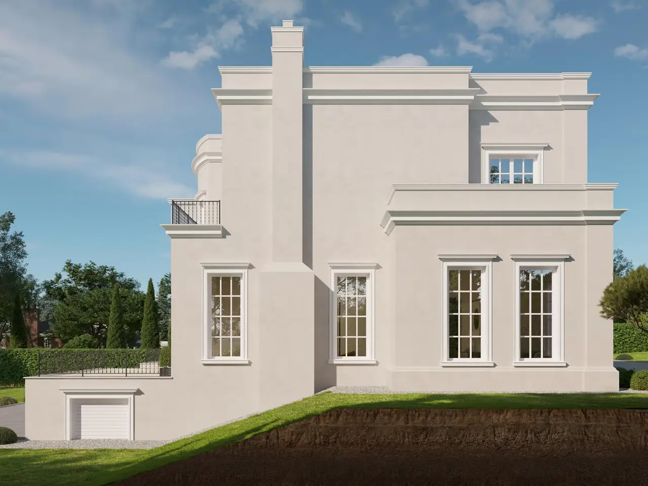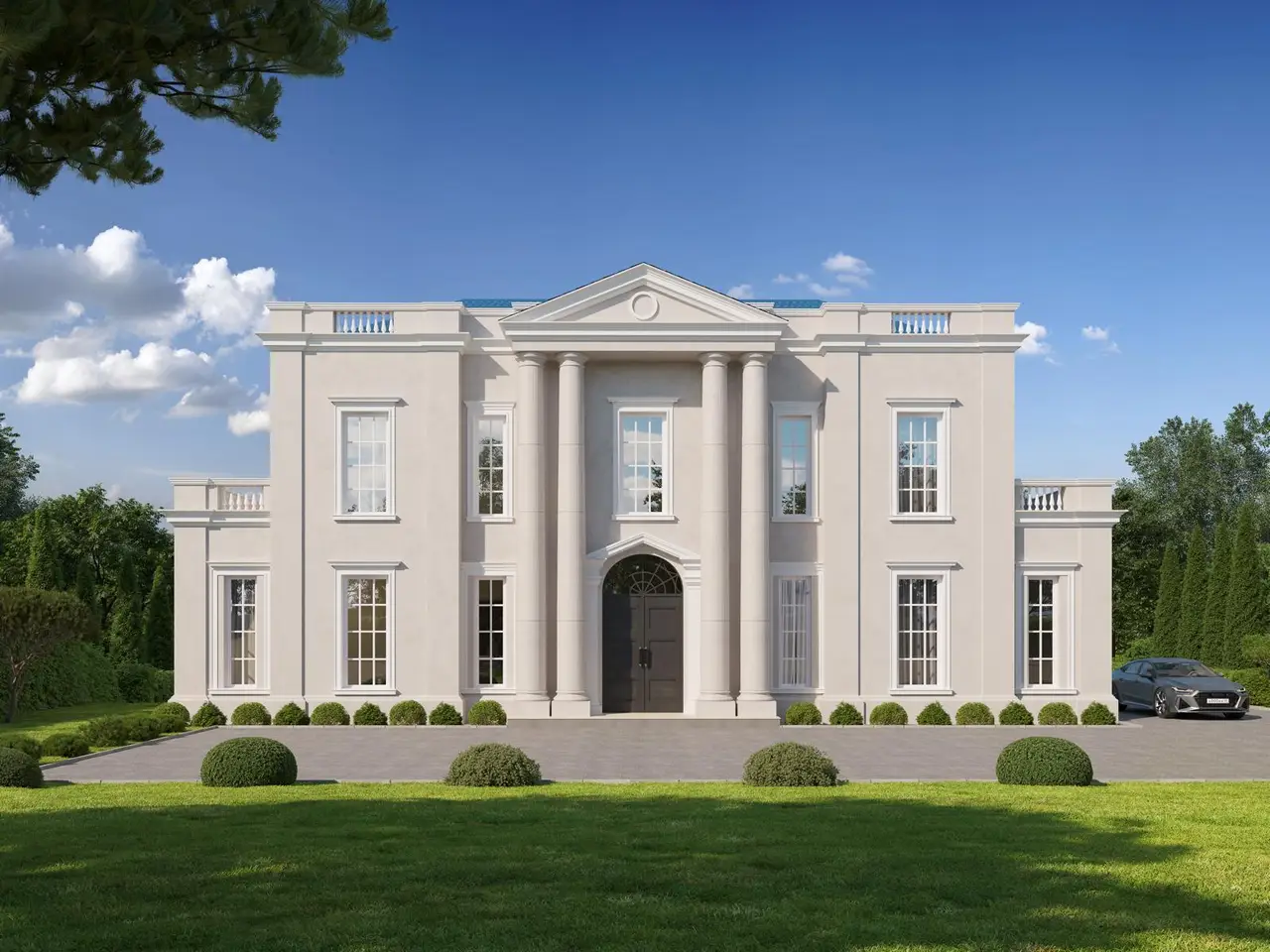 An Exquisite Private Residence in a Class of Its Own Nestled in a tranquil, prestigious enclave, this stately mansion represents a rare opportunity to acquire a timeless architectural gem. Spanning over 4,000 square feet of thoughtfully curated living space, the home masterfully combines neoclassical elegance with contemporary sophistication. From its commanding white-columned façade to its bespoke interiors and expansive landscaped grounds, every element reflects timeless design, refined taste, and a sense of enduring privacy and prestige. Currently under construction with delivery expected in November 2025, this villa is the latest addition to the distinguished landscape of St. George’s Hill, a name synonymous with privacy, prestige, and architectural excellence.