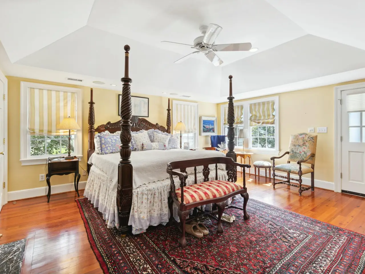 Private primary suite with rear stair