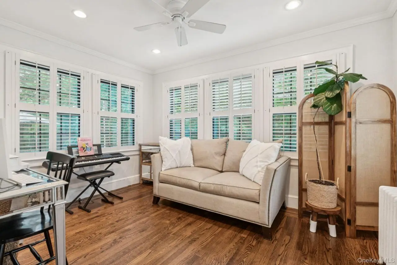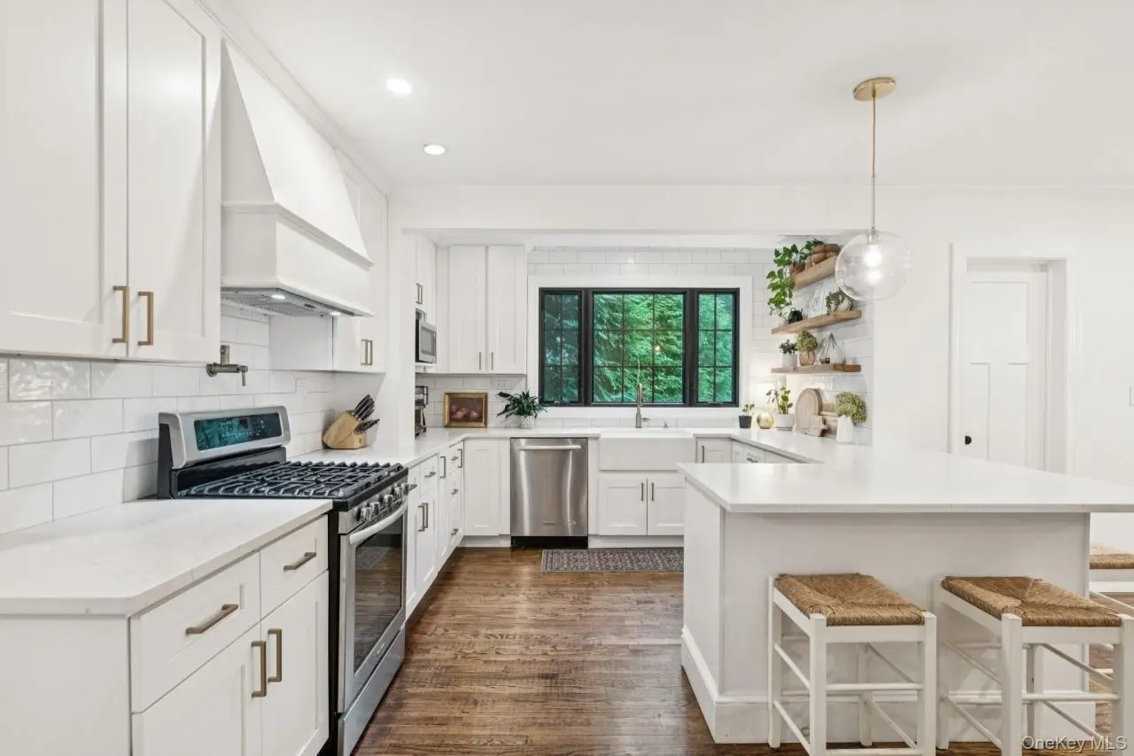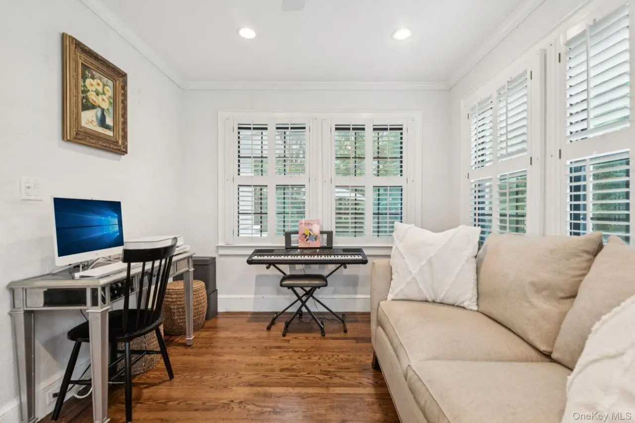 Welcome to this charming Tudor style home, in the heart of East Williston, offering 3 bedrooms and 1.5 baths in pristine, move in ready condition. The inviting living room features a cozy fireplace and sun-filled sunroom, while the beautiful kitchen with breakfast bar flows seamlessly into a dining and living spaces. Hardwood floors run throughout the home, adding warmth and elegance. Upstairs you'll find three generously sized bedrooms and a full bath. Outdoor entertaining is a breeze with a private cozy patio-perfect for relaxing or hosting.