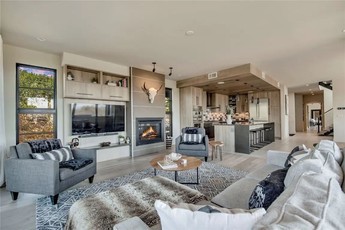 Mountain-modern luxury meets Yampa Valley beauty at 45233 Four Seasons Way. Completed in 2020, this exceptional residence rests on nearly 36 acres in the coveted Giant Sky Ranch community, where sweeping views of the Flat Tops Wilderness and breathtaking sunsets over Sleeping Giant set the stage for everyday living. Spanning 3,550 sq. ft., the home offers 4 bedrooms, 3.5 bathrooms, and a spacious 3-car garage—blending refined design with mountain functionality. The open-concept main level is perfect for entertaining, featuring a light-filled great room with a cozy fireplace and seamless access to two stamped-concrete patios. The gourmet kitchen is a chef’s dream, boasting Thermador appliances, sleek European-style cabinetry, and bold designer tile accents. The main-level primary suite creates a private sanctuary with a spa-inspired bath, walk-in closet, and direct patio access—all designed for single-level living. A floating staircase leads upstairs to three additional bedrooms, including a private guest suite and a versatile room pre-wired for use as an entertainment or media retreat. As part of Giant Sky Ranch, residents enjoy more than 420 acres of shared open space with trails, ponds, and gathering areas that invite year-round adventure. Whether hiking, biking, paddle boarding, or simply soaking in the tranquility of this private, gated community, outdoor recreation is always at your doorstep. And with downtown Steamboat Springs just 8 miles away, convenience pairs effortlessly with seclusion. With unmatched privacy, panoramic views, and direct access to Colorado’s most inspiring landscapes, this Four Seasons property delivers the ultimate balance of modern comfort and natural beauty.