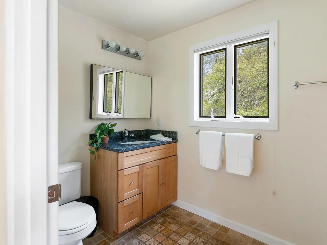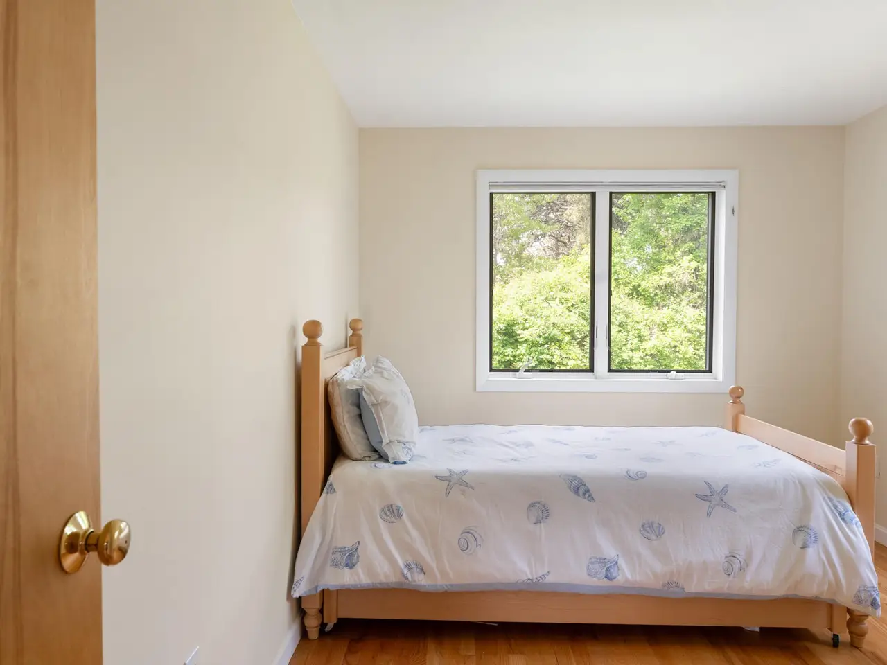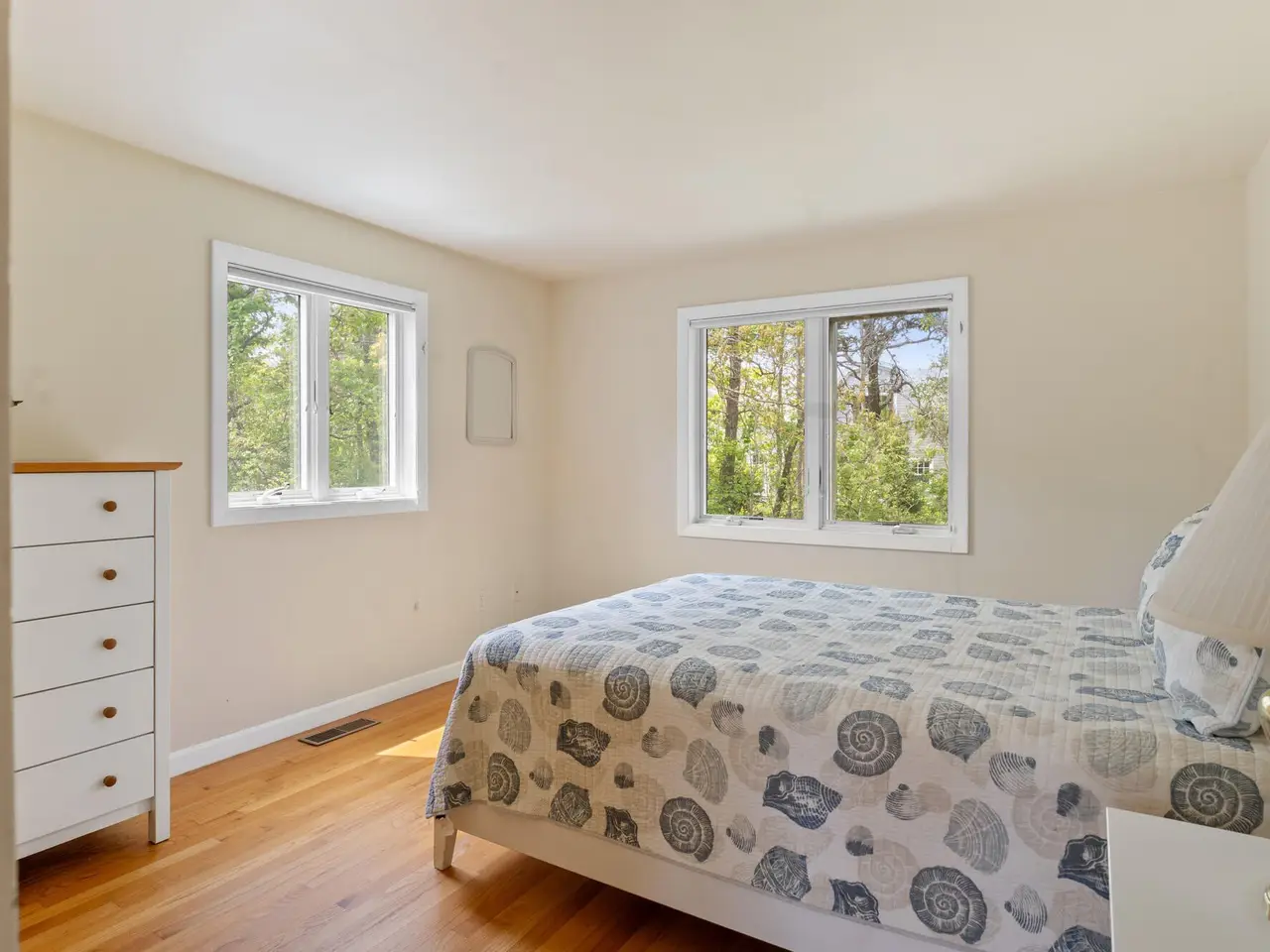 Vacation Getaway in Edgartown Estates - This sunny and welcoming contemporary home could be yours this summer! With an open layout, vaulted ceilings and lots of windows and glass doors, the home feels bright and airy. Step outside to a spacious wrap-around deck-great for relaxing or entertaining. Inside, the living, dining and kitchen areas flow nicely and are just the right size for gathering. The first floor has three guest bedrooms, while upstairs you'll find a loft, the primary bedroom suite, and a private balcony. Other features include hardwood floors, air conditioning, a full basement, and an outdoor shower-perfect after a day at the beach. The half-acre lot offers a nice lawn with mature trees and plantings that provide privacy from the road and neighbors. Edgartown Estates is an excellent location, just off the bike path to South Beach and into Edgartown Village. Come take a look!