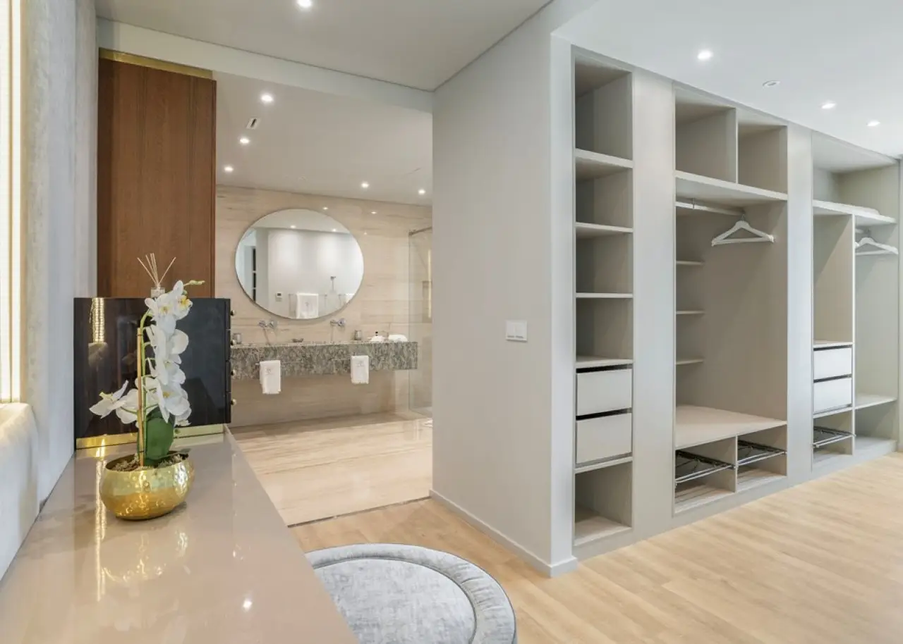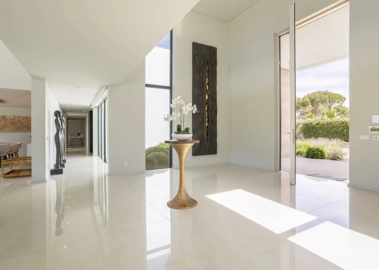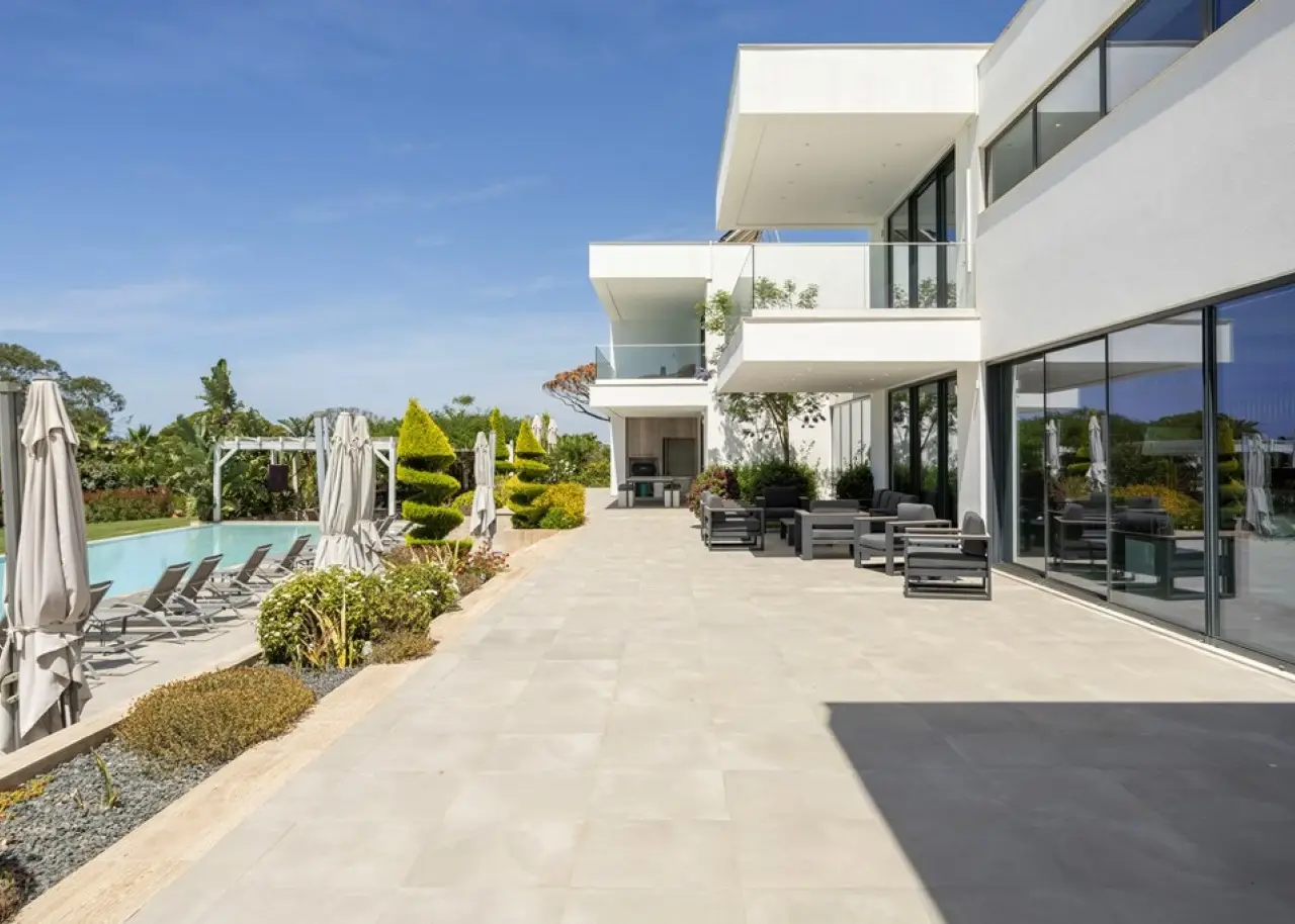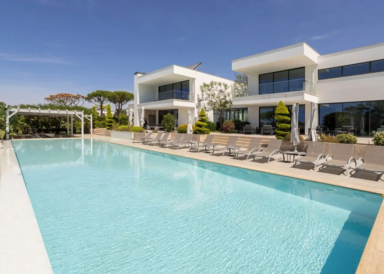 Located in one of Vilamoura 's most prestigious areas - Pinhal Velho, in the Algarve 's Golden Triangle - this 8-suite villa stands out for its balanced combination of comfort, discretion and build quality. The first floor is marked by a large, bright room, with living and dining areas in harmony with the exterior surroundings. The modern , fully-equipped kitchen is open-plan and extends to the outdoor area, creating a fluid connection between the spaces. This floor also includes three suites and a laundry room. On the second floor, the master suite stands out for its comfort and privacy, with a walk-in closet, generous bathroom and terrace overlooking the garden. Two other suites, both with private terraces, complete this area. In the basement, the villa offers several additional features: a games room, bar, wine cellar, gym with Turkish bath, two suites, a large storage area and a garage with capacity for several vehicles. With its contemporary architecture and clean lines, it was built with quality materials and attention to detail. It has central air conditioning, solar panels for water heating and a central vacuum system. Surrounded by an extensive, mature and well-kept garden, the property offers several outdoor areas designed for peaceful enjoyment: a swimming pool, outdoor dining area, barbecue area, children's playground and garden nooks ideal for relaxing or socializing. Set in a calm and private environment, this house combines functionality with elegance. It is located a short distance from Vilamoura Marina, the beaches of the Golden Triangle, leading golf courses and the International College of Vilamoura. CHARACTERISTICS: Plot Area: 6 859 m2 | 73 830 sq ft Useful area: 957 m2 | 10 296 sq ft Deployment Area: 463 m2 | 4 978 sq ft Building Area: 1 168 m2 | 12 577 sq ft Bedrooms: 8 Bathrooms: 10 Garage: 4 Energy efficiency: A FEATURES: Luxurious Villa 8 suites Vilamoura Golden Triangle Laundry room Games room Bar Wine cellar Gym Private terraces Comfort Privacy Contemporary architecture Garden Swimming pool Children's playground