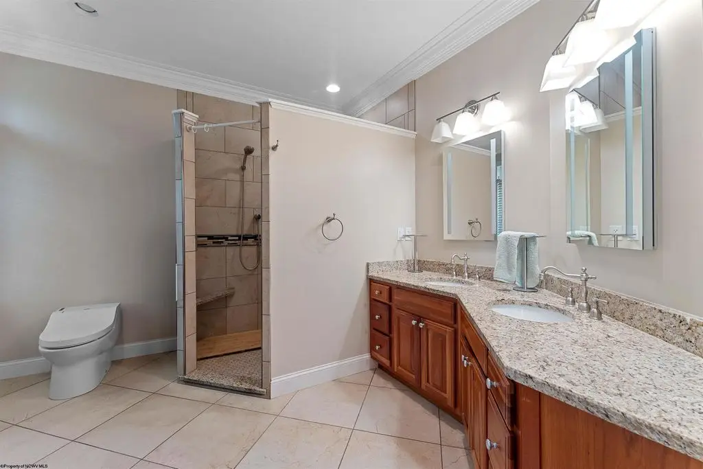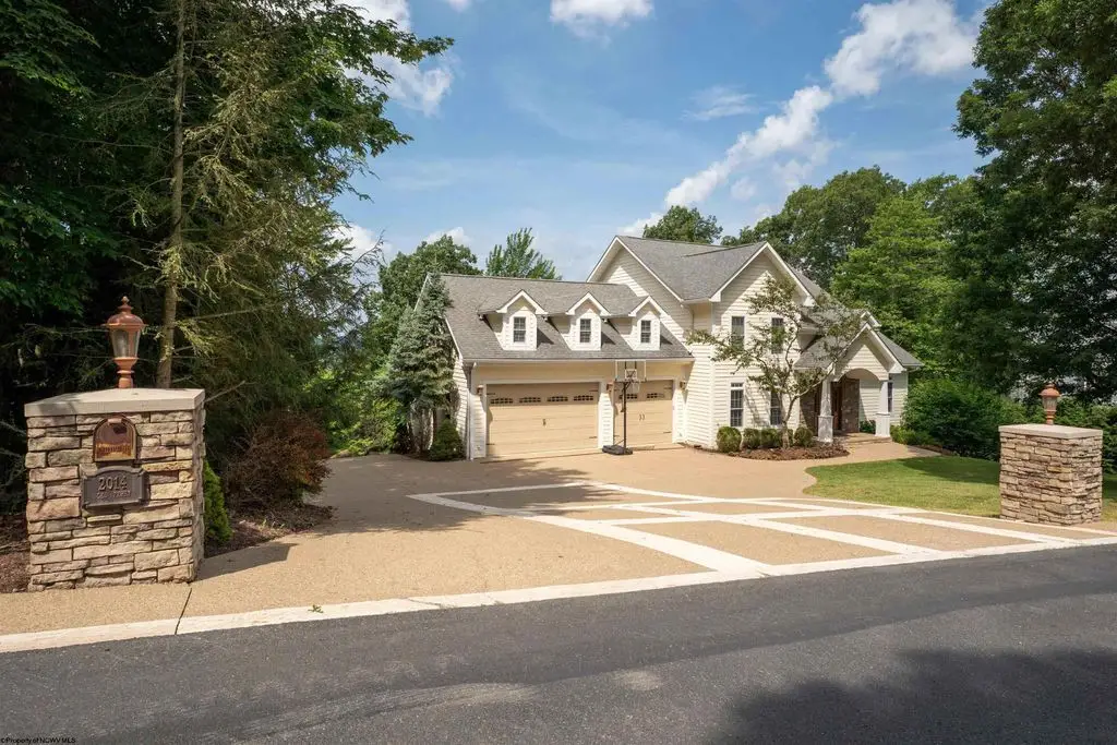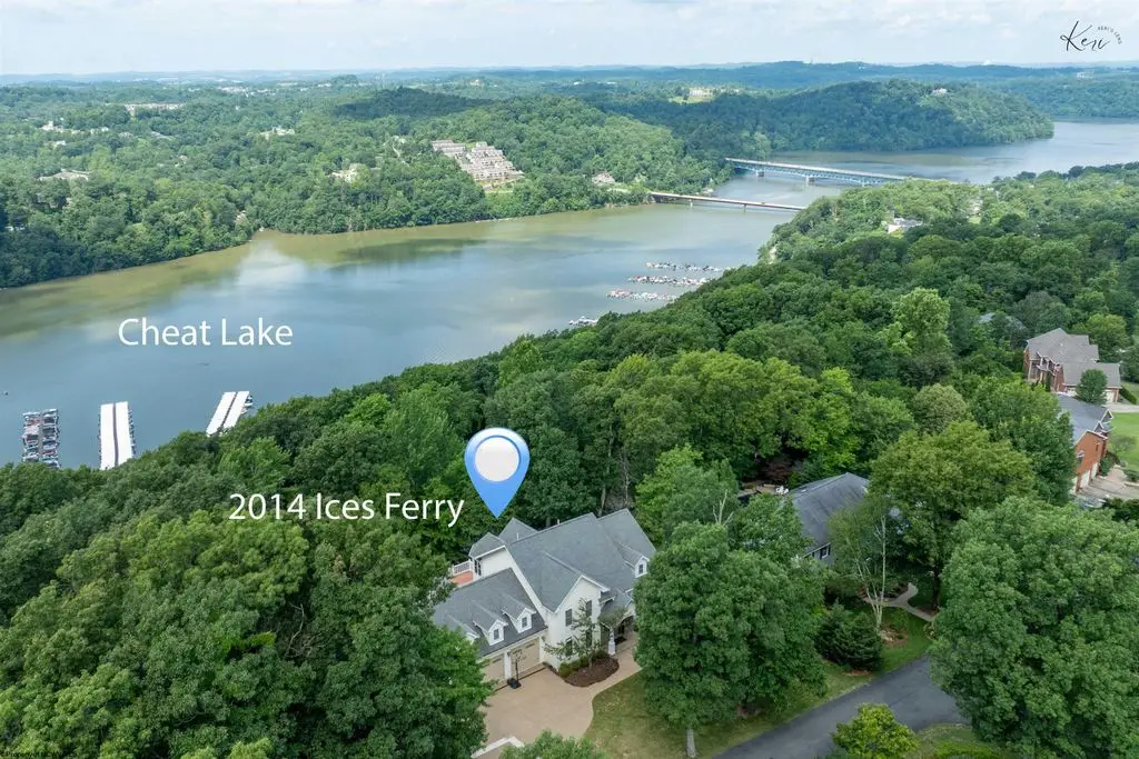 **Timeless Elegance Awaits** Nestled on a serene, wooded lot within the gated community of Ices Ferry, this custom retreat offers breathtaking seasonal views of Cheat Lake from two expansive decks. The property features spacious rooms adorned with exquisite finishes, four fireplaces, and the potential for a fifth bedroom, making it a remarkable opportunity for discerning buyers. The main floor provides a luxurious primary suite, which includes a beautifully renovated bathroom and a convenient coffee bar, as well as a generously sized tiled shower and closet. The second floor presents three to four additional bedrooms and a versatile bonus room, perfect for various uses. The lower level is designed for entertainment and relaxation, featuring a two-sided fireplace, a game room, an expansive bar, and a dedicated exercise room. This exceptional property is a rare opportunity to own a piece of the picturesque Ices Ferry community. Don't miss your chance to experience the perfect blend of luxury and nature.