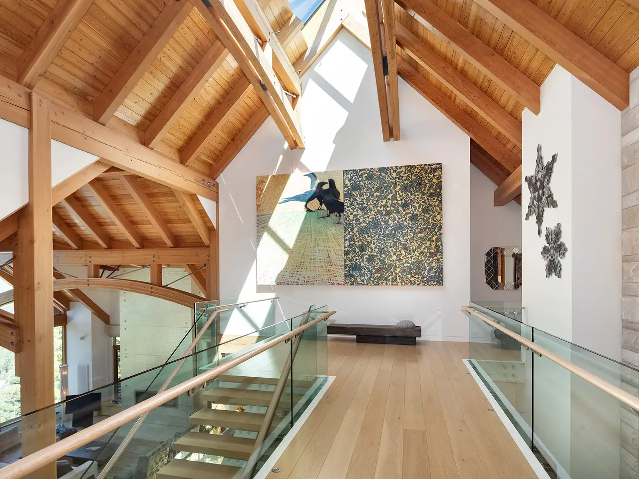 Expansive, sophisticated spaces unfold seamlessly under timber frames, with artistic finishes and natural aesthetics from this ski-access residence. Masterfully executed by an extraordinary team of designers and craftsmen, the residence embraces the mountain landscape and is designed to host; gather in front of the gold leaf surrounded contemporary fireplace, entertain in the ski lodge inspired family room or unwind on the grand patio by the pool & hot tub while taking in mountain and lake views. Located in the exclusive Kadenwood neighbourhood, this residence offers the convenience of a private gondola, biking, hiking and ski access trails, and all within close proximity of Creekside and Whistler Village.
