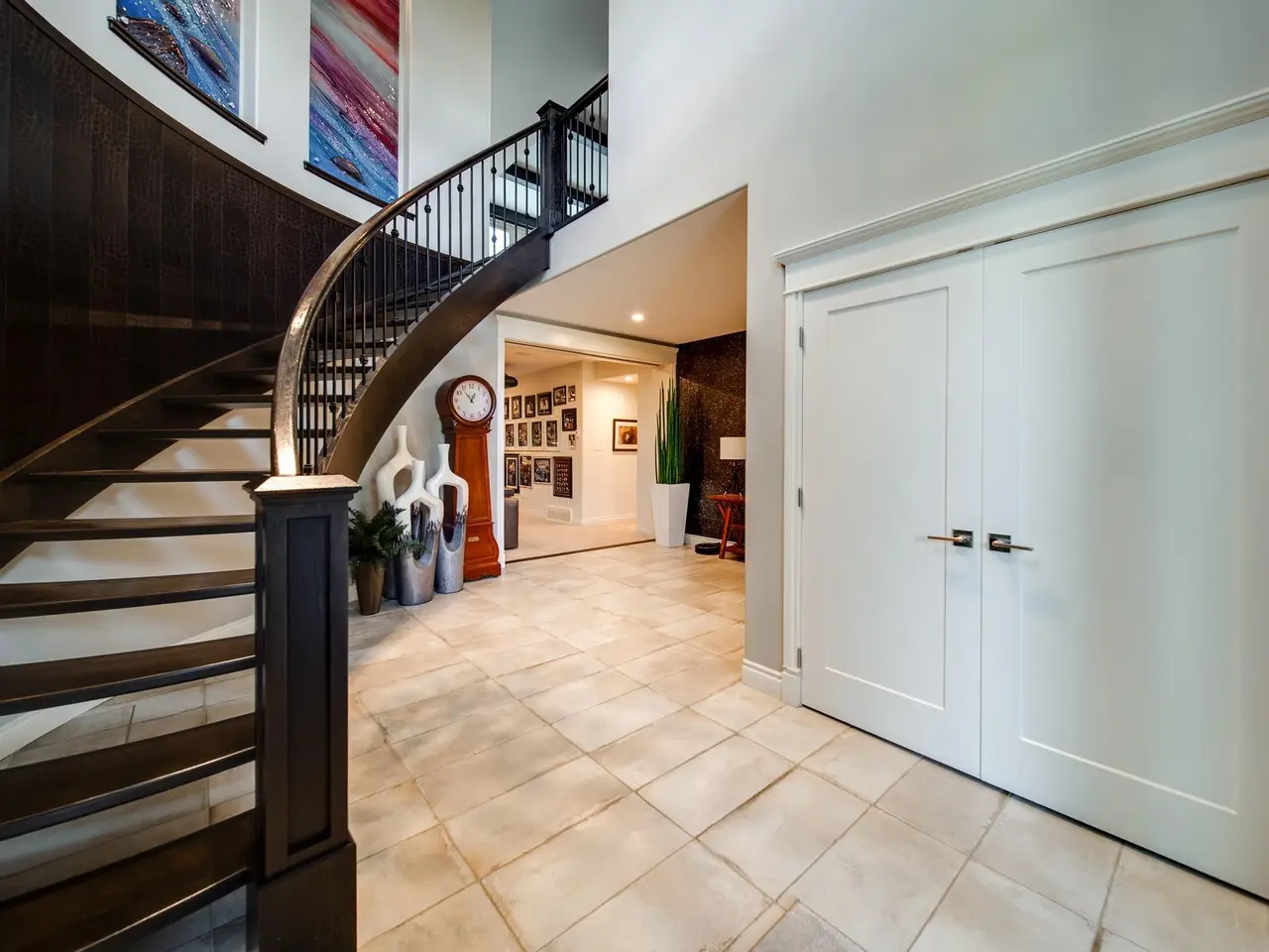 Perched high above the Saskatchewan River, this hand-crafted masterpiece blends luxury, comfort, and effortless entertaining. The rare reverse walk-out basement sets the stage with a private theatre, wet bar, fitness room, and two spacious bedrooms. A striking leather-textured feature wall and whimsical staircase guide you to the main floor, where a timeless palette evokes sophistication and serenity. The chef-inspired kitchen shines with two-toned cabinetry, quartz counters, professional-grade appliances, and statement lighting—seamlessly flowing into the dining space and out to a private deck. Designed for unforgettable gatherings, the outdoor retreat offers a pergola, hot tub, built-in BBQ, and fire pit. The stylish primary suite redefines luxury living with a glamorous wardrobe room, spa-inspired steam ensuite, and a private balcony overlooking the ravine. A home that is as magnificent as it is unforgettable. Unobstructed views of the river, triple car garage with in floor heat, plus irrigation!