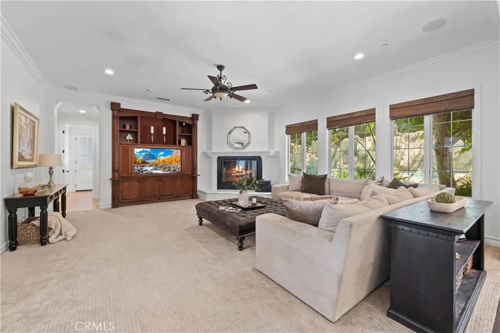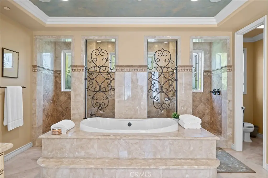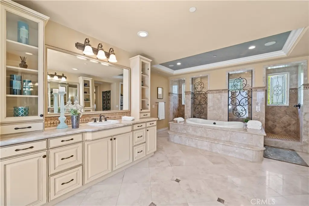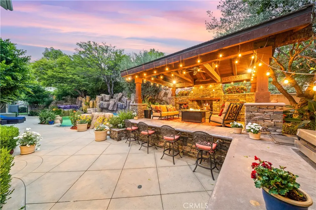 Nestled within the prestigious equestrian community of Nellie Gail Ranch, this meticulously upgraded residence is situated at the heart of a quiet, tranquil, pride of ownership interior cul-de-sac. Spanning nearly 6,000 square feet, this traditional estate offers five bedrooms, five and one-half baths, a dedicated bonus room, billiard parlor, and upper library, providing an exceptional breadth of living spaces for distinguished residents and their guests. The already expansive interior is complemented by a magnificent exterior designed for opulent entertaining and recreation. A private lanai, adorned with sophisticated stone accents and a charming fireplace, sets the stage for al fresco dining and relaxed evenings. Beyond the lanai, a resort-style rock pool captivates with cascading waterfalls, a thrilling 35-foot slide, and a walk-in kiddie pool, ensuring endless hours of enjoyment. French doors invite a seamless transition to private interior courtyards, creating an elegant flow ideal for both intimate gatherings and grand celebrations. The billiard parlor provides a setting for engaging games, while the upper bonus room offers a secluded space for cinematic indulgence. Culinary artistry flourishes in the gourmet kitchen, equipped with a custom mastery stove hood, a spacious seating island, stainless steel appliances, abundant granite countertops, a convenient butler's pantry, and an integrated desk. The lavish primary suite serves as a serene retreat, featuring a romantic fireplace and a spa-inspired primary ensuite with its own private deck, perfect for peaceful morning escapes. Throughout the residence, exquisite interiors are a testament to superior design, showcasing coffered ceilings with custom details, Venetian plastered walls, elegant crown molding, designer paint, bespoke built-ins, sophisticated custom lighting, and stunning wood flooring, among numerous other refined elements. Beyond the boundaries of this exceptional property, residents of Nellie Gail Ranch enjoy an unparalleled lifestyle enriched by world-class amenities. The community boasts access to 25 miles of equestrian trails, a community clubhouse, tennis center with 12 championship courts, a swimming pool, and numerous parks and green spaces perfect for picnics and relaxation. Nellie Gail Ranch's convenient Laguna Hills location provides the tranquility of a semi-rural setting with easy access to the various vibrant attractions beloved by Orange County residents. Welcome home!