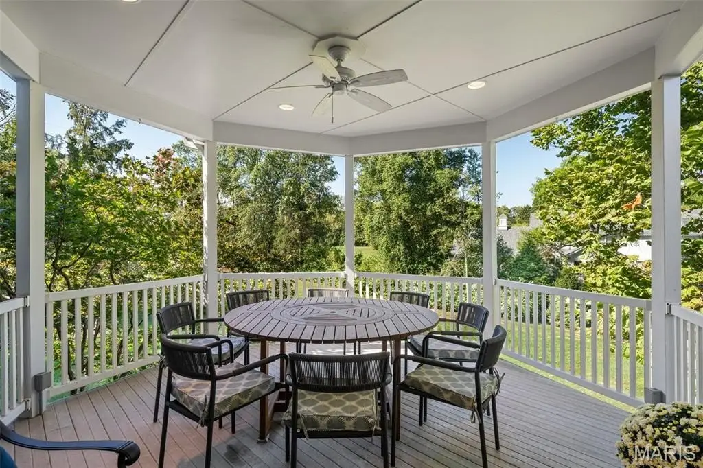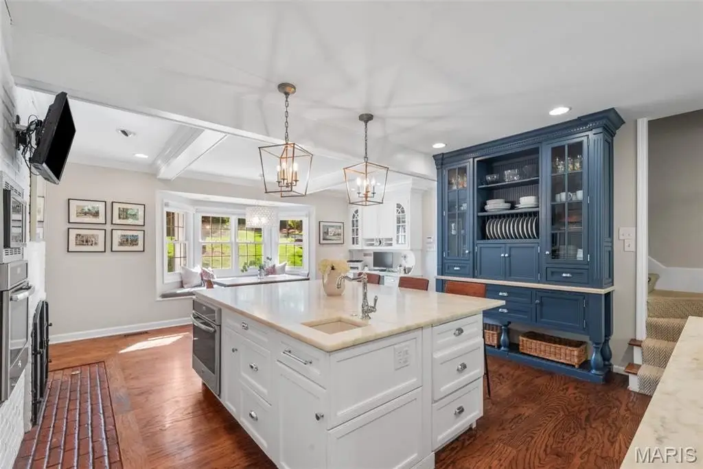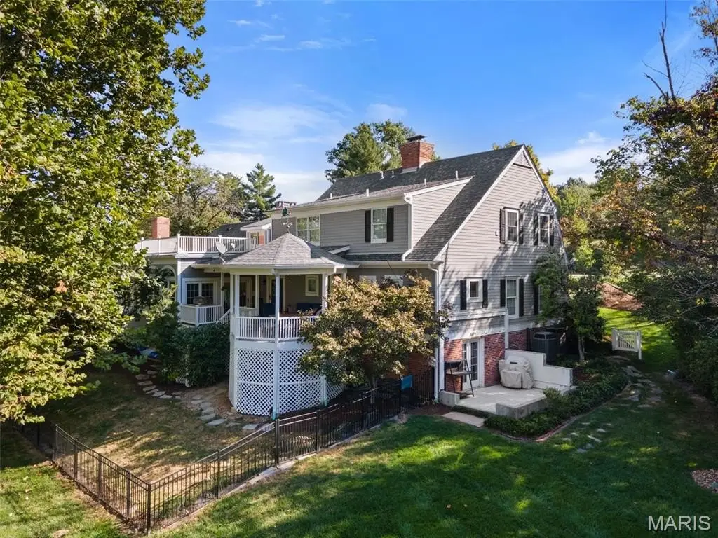 This New England inspired beauty is sure to win your heart! Nestled on a private 1.24 acre lot, this 4345 sq ft, 5 bedroom home is unique in its understated elegance. The showpiece of the home is the lovely sun drenched great room with a wall of Palladian windows overlooking the graceful yard. Architectural features abound, and blend with the dazzling open kitchen with Danby marble countertops, stainless appliances, outstanding built ins, and cozy hearth; all reminiscent of a country inn. Enter the multi use open living room where one can enjoy a reading nook , visiting area, or elegant dining. Adjoining the living room is a lovely half bath, and entry to the covered deck. The convenient first floor primary bedroom has a walk in closet, ensuite luxurious bath with marble countertops, soaking tub, separate shower, and a laundry room. There are 2 staircases to the second floor, which contains 4 ample bedrooms, some with walk in closets, and 2 full updated baths. The lower level with half bath has walk out access and boasts abundant uses for gatherings, hobbies, and recreation. Enjoy entertaining on the delightful covered deck with charming gazebo area and newer built in gas grill overlooking the lovely landscaped yard. There is a 2 car garage, mud room, sprinkler system, and alarm system. What a great location in Parkway West schools, convenient to Town and Country "Town Square" with a variety of shops, restaurants, walking paths and "meet and greet" venues! Don't miss this fantastic home!