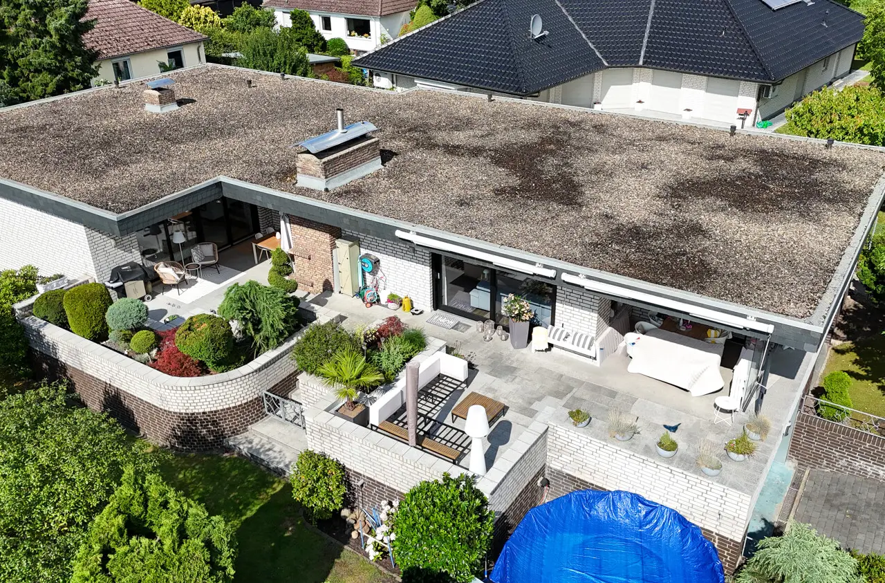 For sale is a spacious two-generation house with a living space of approx. 220 m², nestled on a plot of approx. 817 m². Built in 1980, the property was last extensively modernized in 2011 and impresses with its modern furnishings and high quality. The house is located in a quiet cul-de-sac, providing seclusion and relaxation. With a total of 6 rooms on the mezzanine floor, it offers enough space for a family (multi-generational). There are also two open-plan kitchens, which flow seamlessly into the living area and are ideal for sociable evenings with family and friends. Two fireplaces not only provide pleasant warmth, but also a cozy atmosphere in the cooler months. The basement of the house offers additional rooms that can be used in a variety of ways. There are further bedrooms and two bathrooms here, as well as an office that offers ideal conditions for working from home. This level is perfect for accommodating guests or as a separate living area for family members. A highlight of the property is the spacious terrace, which is both covered and sheltered from the wind. Here you can spend relaxing evenings or simply enjoy the fresh air. There is also an outdoor seating area, which is ideal for barbecues or sunbathing. There are outdoor parking spaces and a double garage with plenty of space for your vehicles. The central heating ensures efficient heat distribution throughout the house. With its well thought-out room layout and high-quality fittings, this multi-generational home offers both comfort and functionality. It is an ideal home for families who value spacious living areas and a quiet location. Its proximity to all necessary amenities such as schools, shopping facilities and public transport makes it particularly attractive. If you are looking for a home that offers both a cozy living ambience and enough space for all family members, then this house could be just right for you. Arrange a viewing today to get a first-hand impression of this property. We look forward to presenting this attractive property to you.