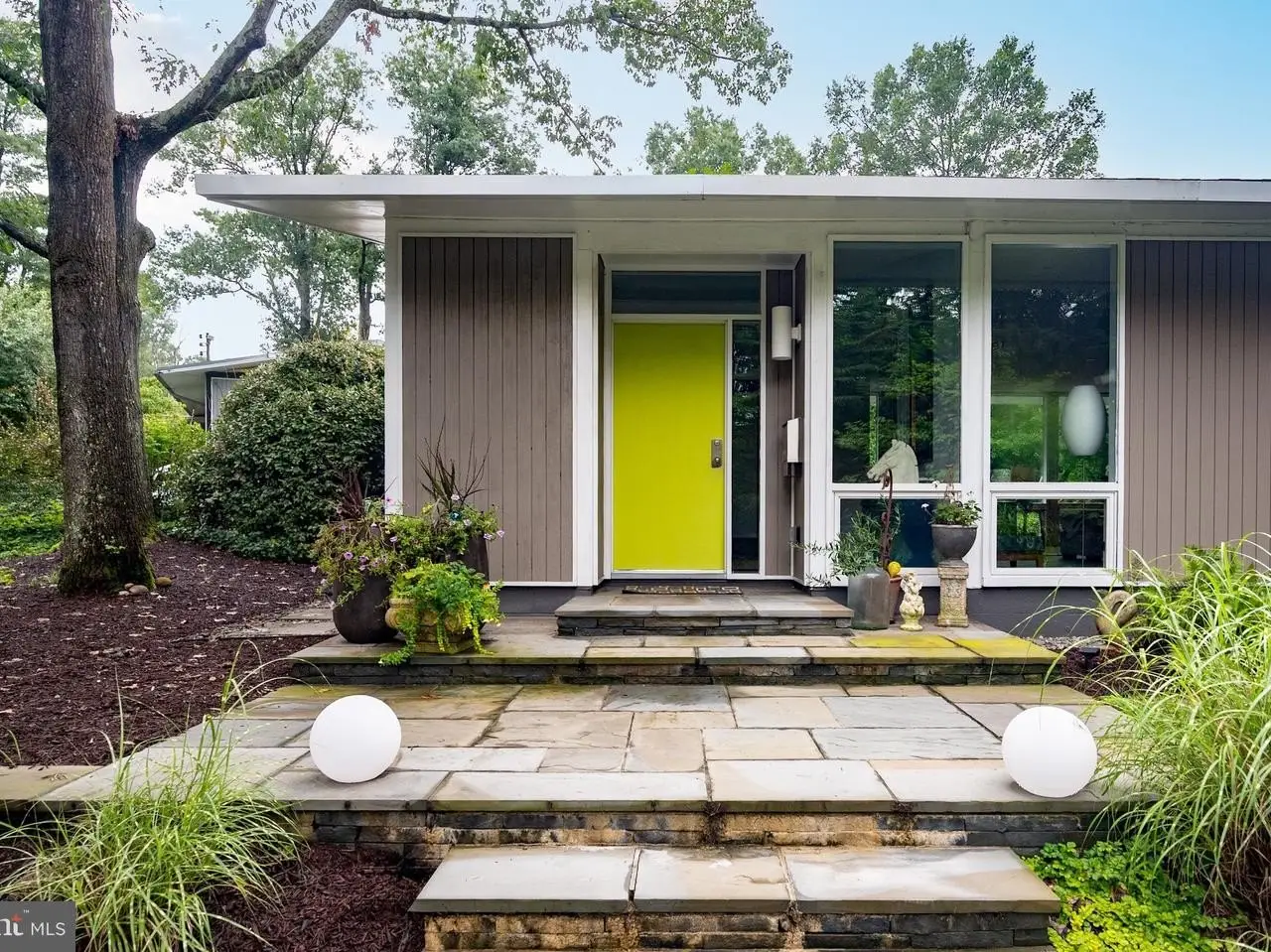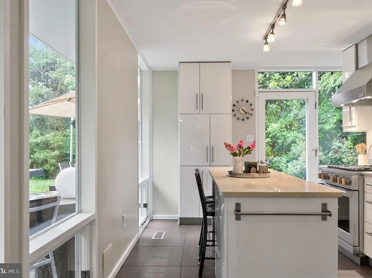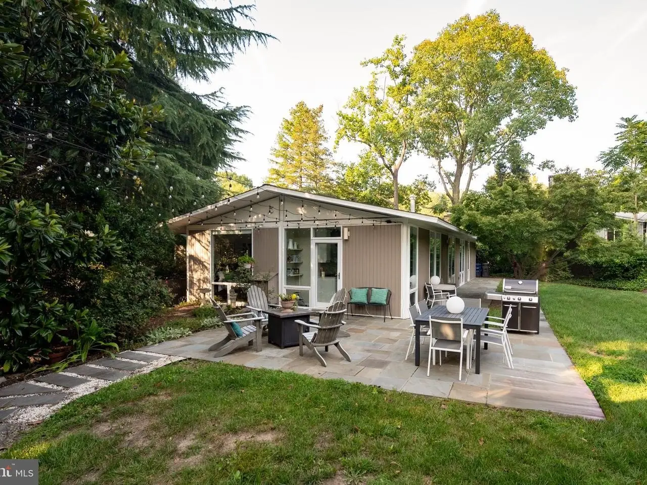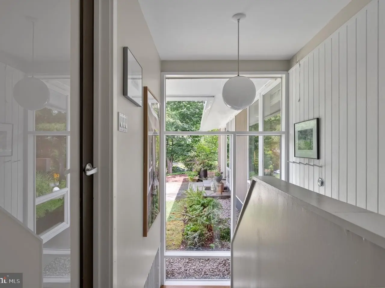 This extraordinary Mid-Century Modern home designed by Architect Charles Goodman is located in the highly sought-after Hollin Hills community. Home has been thoughtfully expanded to over 2,300 square feet with additions by renowned architects Casper Neer and Eason Cross. Extensively remodeled while preserving its iconic MCM charm, the home welcomes you with an impressive entry foyer featuring soaring ceilings, a coat closet, and a striking bubble chandelier. A private home office boasts a brick wall with built-in shelving, ideal for work or study. The open-concept living spaces include a welcoming living room and cozy family room with a wood-burning fireplace and custom built-in bookshelves, as well as a separate dining room perfect for entertaining. The custom kitchen features a large center island with seating, granite countertops, stainless steel appliances, and direct access to the patio, making it a true centerpiece of the home. The main level includes a spacious primary suite with a built-in dresser, a large custom closet, and a beautifully remodeled en-suite bathroom showcasing a walk-in shower with custom marble tile. A second main-level bedroom offers a custom closet organizer and light filled windows. There is another remodeled full bathroom, complete with a skylight. A convenient main-level laundry closet adds to the home's functionality. Upstairs, two additional bedrooms offer access to a Juliet balcony, with one bedroom featuring a walk-in closet. The large, sunlit lower-level recreation room provides additional living space, ideal for relaxing or entertaining as well as additional storage. Outdoor features include extensive hardscaping with a concrete driveway, slate patios and walkways that wrap around the home. The private, flat backyard is surrounded by mature landscaping and offers an ideal setting for outdoor gatherings. Additional storage is provided by both a detached outdoor shed and an attached exterior shed. With double-pane windows throughout and exceptional attention to detail, this home is filled with character and timeless style. Hollin Hills offers membership to 2 community pools as well as membership to a tennis and pickleball club. The scenic neighborhood boasts 7 parks, trails, an active Civic Association with seasonal celebrations, delicious super society and a friendly, close-knit environment. A commuter's dream location minutes from GW Parkway and trails, DC & the Pentagon; and south to Fort Belvoir, or north to Andrews AFB & Tysons Corner via I-495. This special address is an idyllic sanctuary to call home!