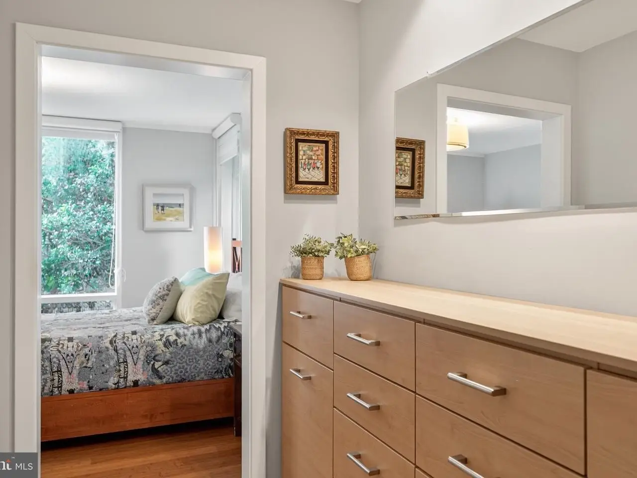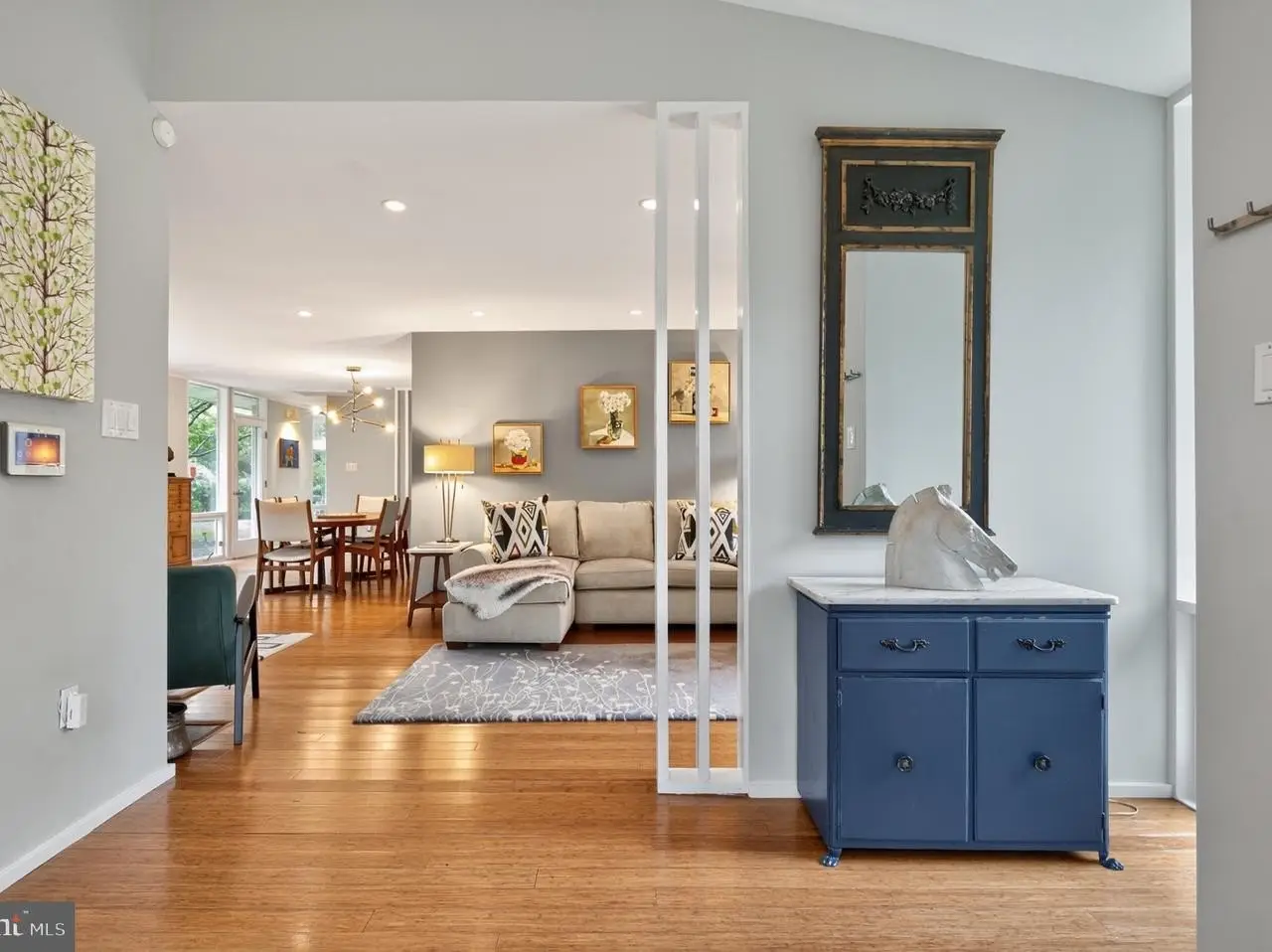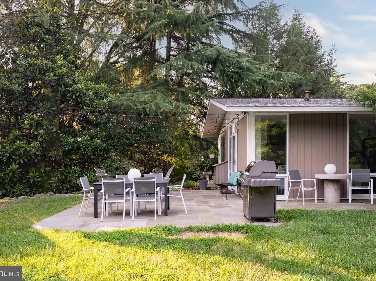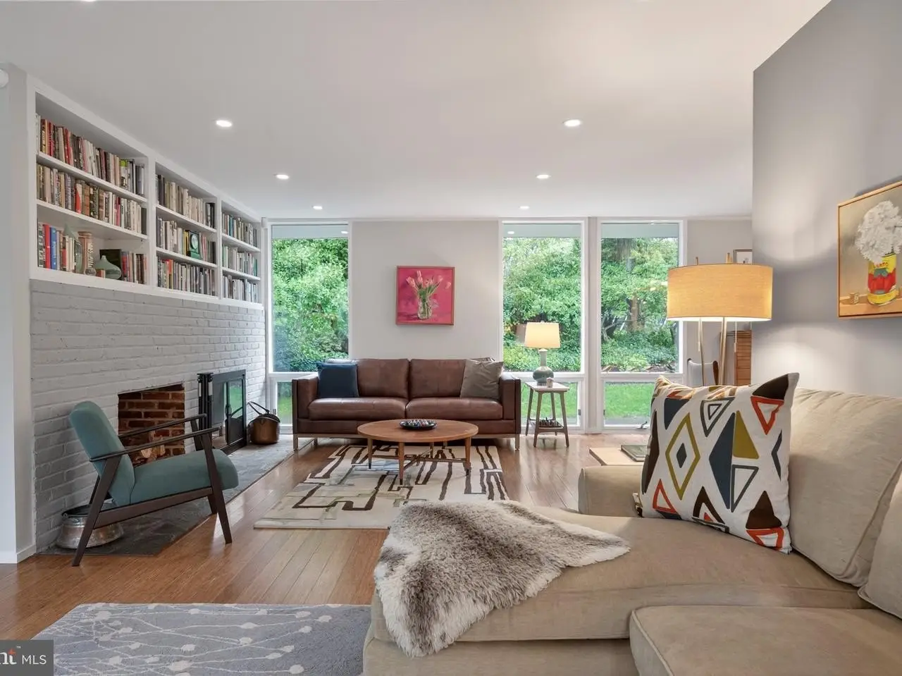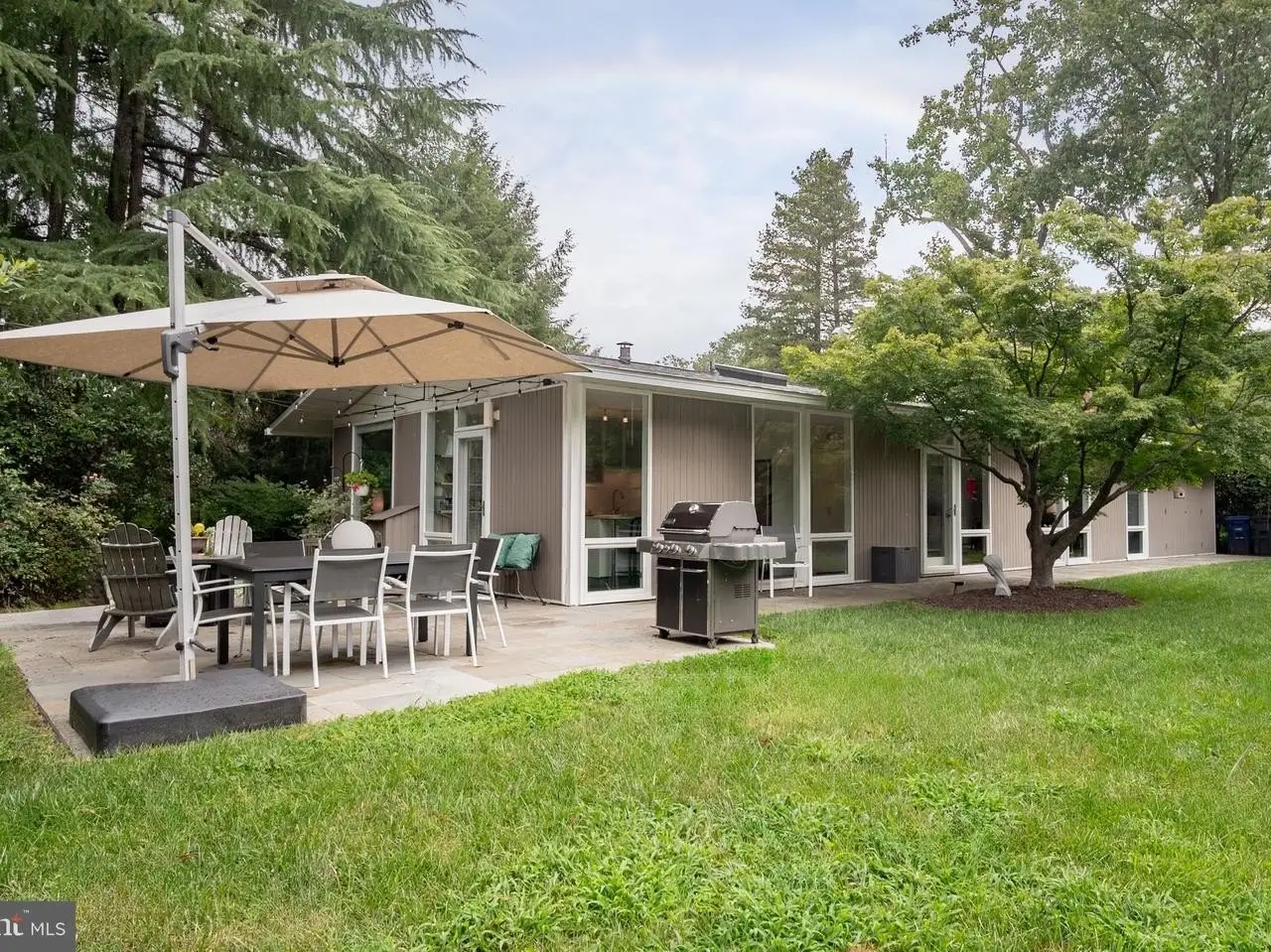 This extraordinary Mid-Century Modern home designed by Architect Charles Goodman is located in the highly sought-after Hollin Hills community. Home has been thoughtfully expanded to over 2,300 square feet with additions by renowned architects Casper Neer and Eason Cross. Extensively remodeled while preserving its iconic MCM charm, the home welcomes you with an impressive entry foyer featuring soaring ceilings, a coat closet, and a striking bubble chandelier. A private home office boasts a brick wall with built-in shelving, ideal for work or study. The open-concept living spaces include a welcoming living room and cozy family room with a wood-burning fireplace and custom built-in bookshelves, as well as a separate dining room perfect for entertaining. The custom kitchen features a large center island with seating, granite countertops, stainless steel appliances, and direct access to the patio, making it a true centerpiece of the home. The main level includes a spacious primary suite with a built-in dresser, a large custom closet, and a beautifully remodeled en-suite bathroom showcasing a walk-in shower with custom marble tile. A second main-level bedroom offers a custom closet organizer and light filled windows. There is another remodeled full bathroom, complete with a skylight. A convenient main-level laundry closet adds to the home's functionality. Upstairs, two additional bedrooms offer access to a Juliet balcony, with one bedroom featuring a walk-in closet. The large, sunlit lower-level recreation room provides additional living space, ideal for relaxing or entertaining as well as additional storage. Outdoor features include extensive hardscaping with a concrete driveway, slate patios and walkways that wrap around the home. The private, flat backyard is surrounded by mature landscaping and offers an ideal setting for outdoor gatherings. Additional storage is provided by both a detached outdoor shed and an attached exterior shed. With double-pane windows throughout and exceptional attention to detail, this home is filled with character and timeless style. Hollin Hills offers membership to 2 community pools as well as membership to a tennis and pickleball club. The scenic neighborhood boasts 7 parks, trails, an active Civic Association with seasonal celebrations, delicious super society and a friendly, close-knit environment. A commuter's dream location minutes from GW Parkway and trails, DC & the Pentagon; and south to Fort Belvoir, or north to Andrews AFB & Tysons Corner via I-495. This special address is an idyllic sanctuary to call home!