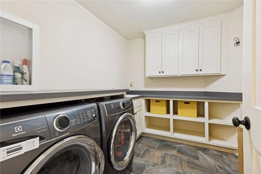 Beautifully finished 2-story home set on a quiet cul-de-sac with a private, fenced backyard overlooking serene nature views. Rich architectural details, wood floors, and sun-filled spaces create a warm, move-in-ready setting. The main level features a grand 2-story Great Room with a full wall of windows and a 2-sided fireplace shared with the inviting Sunroom. The large Kitchen impresses with an enameled island with breakfast bar, walk-in pantry, double wall ovens, and furniture-style cabinetry for the cooktop. Formal and Informal Dining spaces offer flexibility for everyday living and gatherings. A spacious Mud Room provides built-in seating, open locker-style storage, and its own walk-in closet, plus a convenient half Bath. Upstairs, the Primary Suite feels luxurious with a fireplace-accented seating area and an inset ceiling for added definition. The private spa-like Bath includes dual vanities, soaking tub, separate shower, and private water closet plus a large closet with an organized closet system. Bedroom 2 has a full en-suite Bath with tub, while Bedrooms 3 and 4 share a Jack & Jill Bath. The large upper-level Laundry features upper cabinets and open shelving under the counter for easy organization. The walkout lower level adds exceptional versatility - ideal for multi-generational living or effortless entertaining. Highlights include a 5th Bedroom, 3/4 Bath, Wet Bar with fridge & seating, media-ready Family Room, Recreation Room, Flex/Storage Room, and built-in cabinetry. Step out to the expansive Patio or enjoy the newer Deck above. Neighborhood amenities just steps away include an outdoor pool, clubhouse, walking trails, and an outdoor sports court. A welcoming covered front porch completes this exceptional home!