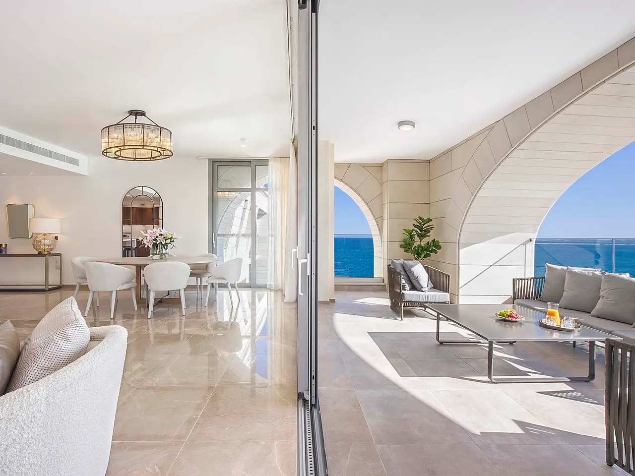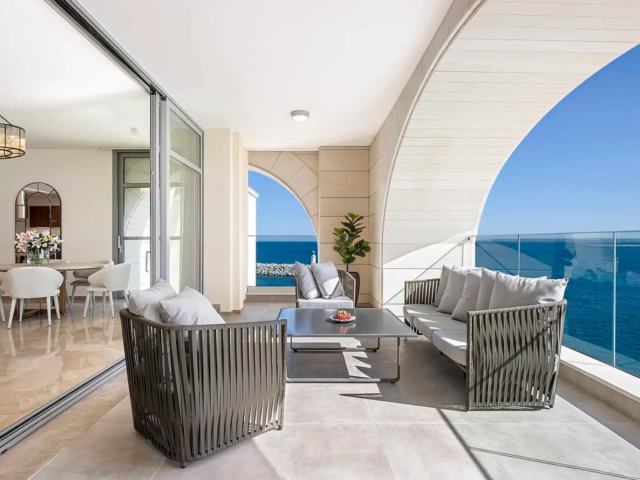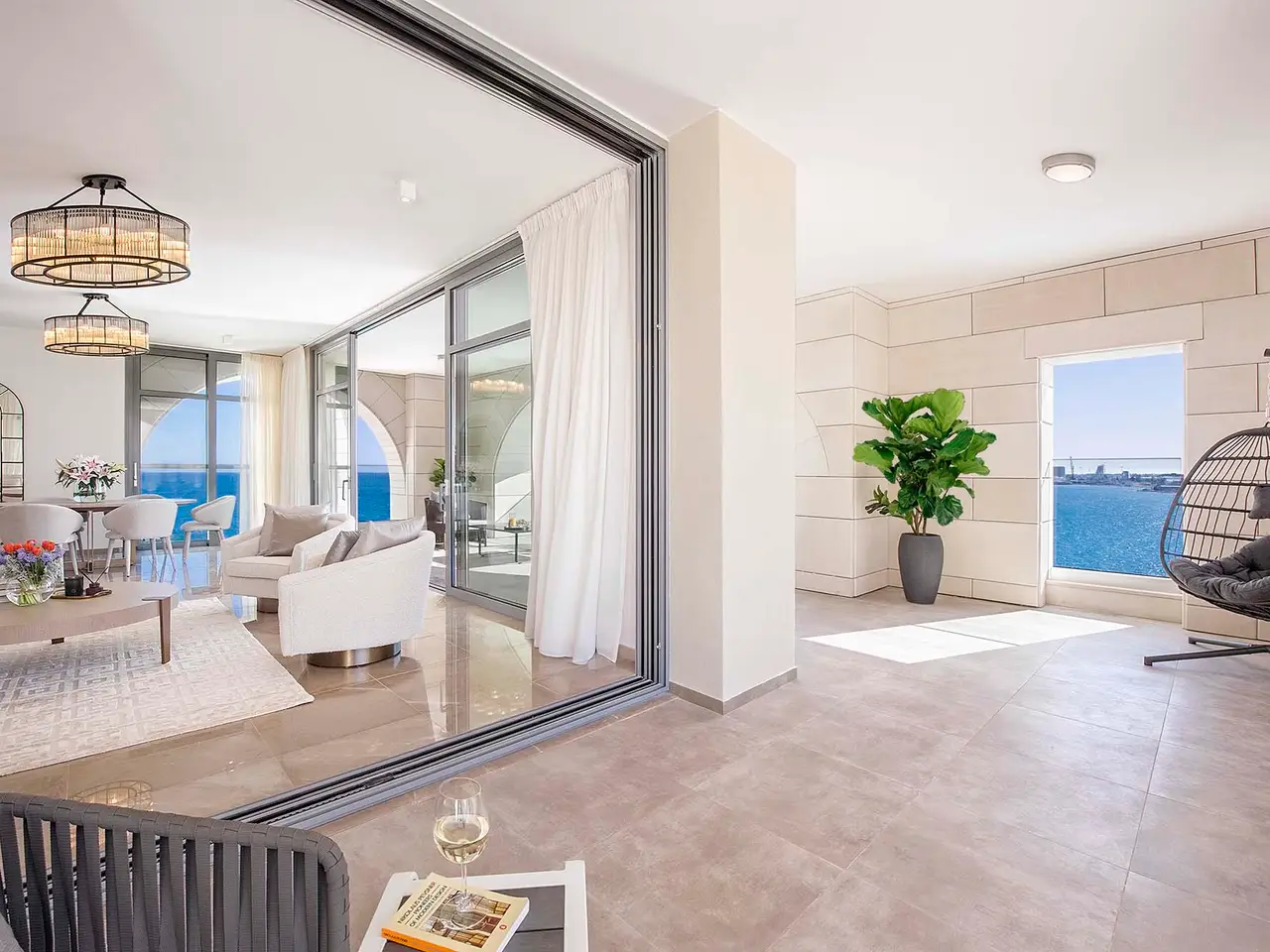 This amazing duplex seafront apartment of the 2nd and 3rd floors, is the absolute epitome of luxurious island life. Part of an extravagant residential project, it gives the privacy , the comfort and the relaxation that everybody would ever dream of. Located so close to the city's amenities and vibrant life, but on the other hand.., so far away from the hectic reality of the every day life. A private heaven, that not everybody has the privilege to be part of.