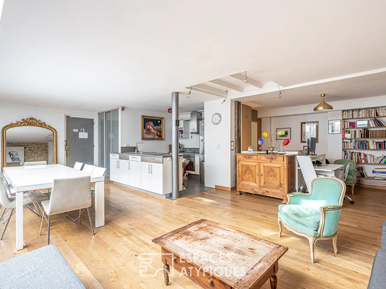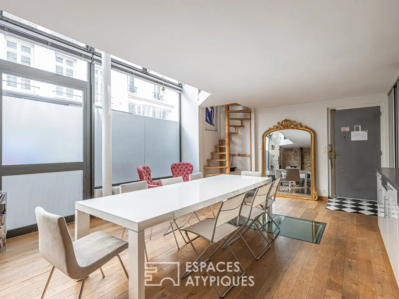 In the heart of the sought-after 2nd arrondissement, this 158 sqm (124.75 sqm Carrez law) triplex loft is located in a well-maintained, characterful building. This rare location, enhanced by beautiful natural light, offers a warm and contemporary atmosphere. A ground-level entrance from the building's lobby opens onto the vast 65 sqm living room. This space offers various spaces dedicated to conviviality, relaxation, and creativity. Its open layout, incorporating a large, functional kitchen, makes it an ideal living space for entertaining. Everything is illuminated by the large, full-height glass roof.A bathroom with a walk-in shower and a separate toilet complete this level. The ingenious layout also includes three comfortable bedrooms, one of which has an en-suite bathroom. The finished basement adds a real plus with a cozy home theater and a functional laundry room, perfectly complementing this living space. Located near Montorgueil and the Grands Boulevards, the loft benefits from a lively and creative environment. Additional information * 5 rooms * 3 bedrooms * 1 bathroom * 1 bathroom * 4 floors in the building * 21 co-ownership lots * Annual co-ownership fees : 4 564 € * Property tax : 2 288 €