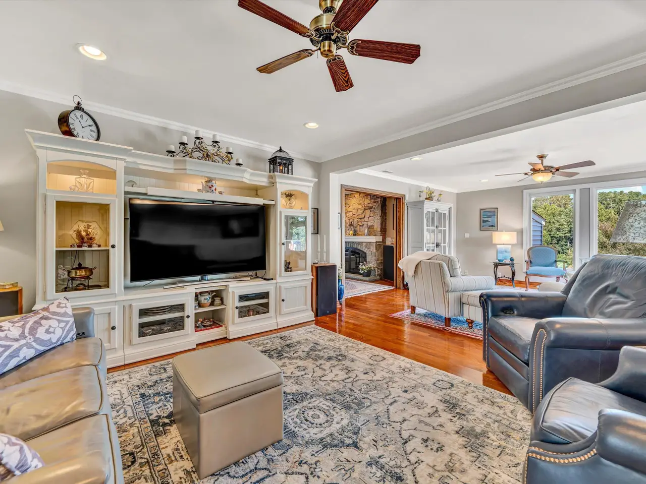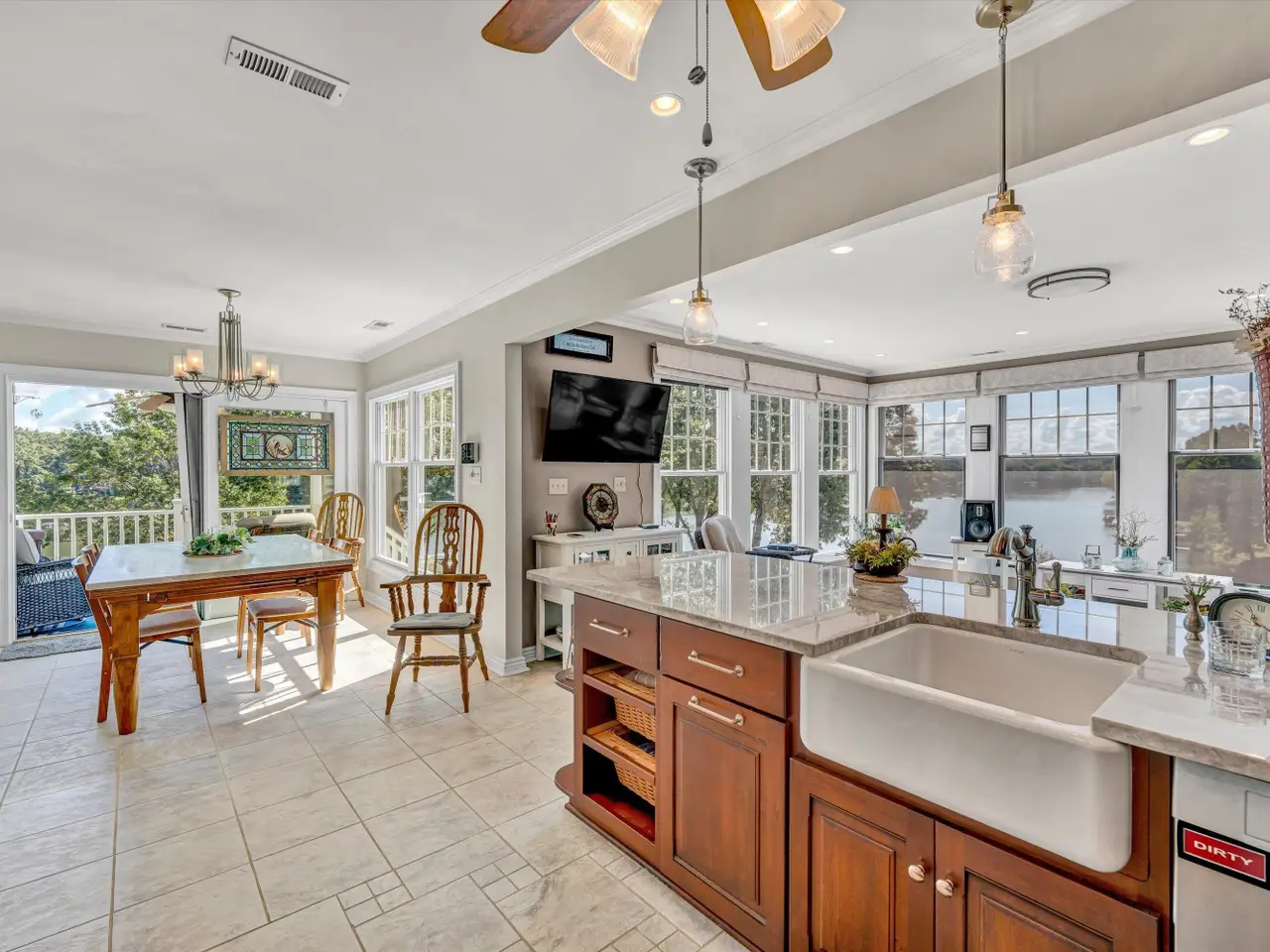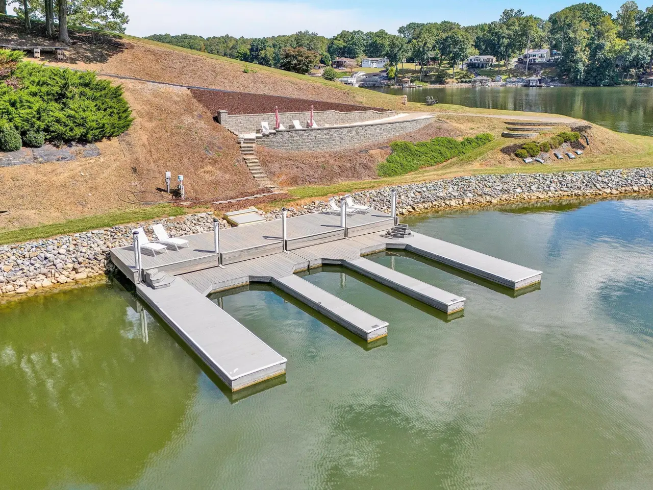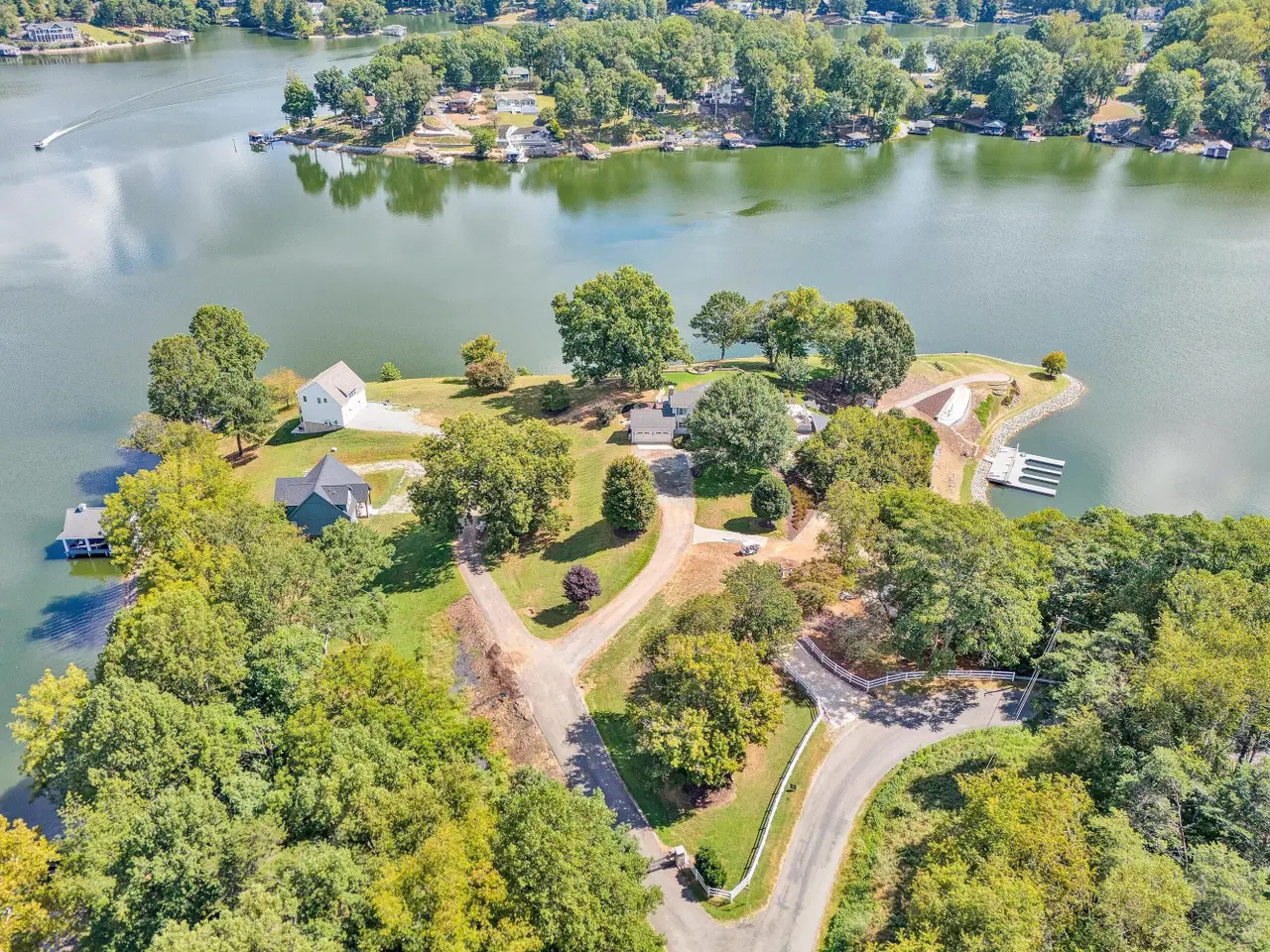 Lakefront Estate with Gorgeous Modern Farmhouse, Renovated in 2006. Beautiful Point with 700 ft of Shoreline, 3 Boatslips, Gourmet Kitchen with Luxury Ss Appliances including Subzero and Viking Gas Cooktop .Great Room w/ Wraparound glass overlooking the Lake. Wine & Coffee Bar, Bob Timberlake Stone Gas Fireplace, Entry Level Primary Ensuite w/Electric FP, Tiled Walkin Shower, Pella Windows & Doors, Incredibile Views, Multiple outdoor entertainment space including Cabana, Trex decks and patios including outdoor kitchen, hot tub and fire pit. Gated Entry.