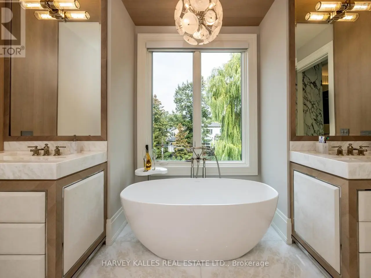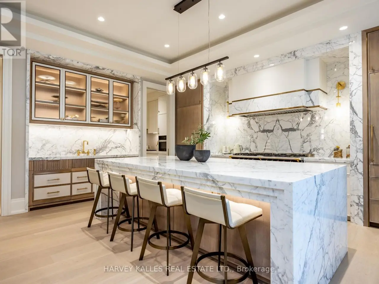 Without exaggeration--this is one of Bedford Park’s most remarkable homes. 508 St. Germain Avenue delivers over 6,000 Sq. Ft. of total living space across four levels with 4+2 bedrooms and 11 bathrooms, crafted for both refined entertaining and everyday ease. Timeless curb appeal is achieved with an Indiana limestone façade, high-grade aluminum windows, and a faux slate roof, while the interior showcases designer finishes, extensive custom millwork, and stone fabrication throughout. Every faucet, fixture, and hardware detail has been carefully selected for both quality and style. An elevator connects all levels, from the show-stopping kitchen with Lacanche range plus a hidden catering kitchen, to elegant principal rooms, and a lower level designed for entertaining. A rare sub-basement adds even more versatility with gym/media room, guest suite, cold storage, and state-of-the-art mechanicals. The private primary retreat features dual dressing rooms hers with centre island and vanity, his with custom built-ins--and an opulent spa-inspired ensuite with radiant-heated marble, freestanding soaker tub, curbless steam shower with rain head and multiple sprays, and dual water closets with integrated bidets. Each secondary bedroom enjoys its own heated ensuite bath. The lower-level recreation room and card lounge feature a wet bar, built-in speakers, fireplace, and direct walk-out to the landscaped yard with resort-inspired zero-edge mosaic pool, cabana with garden suite and basement, and covered terrace. Indoors, all tiled floors are heated with hydronic radiant heat; outdoors, an extensive snow melt system ensures effortless maintenance through the winter months. Additional highlights include a 3-car heated garage with hydraulic bollards on the driveway, Control4 home automation, integrated audio/security, and security roller shades. This is not just a home, but a lifestyle statement in one of Toronto's most sought-after neighbourhoods.