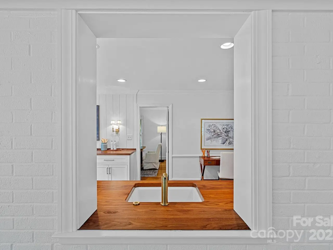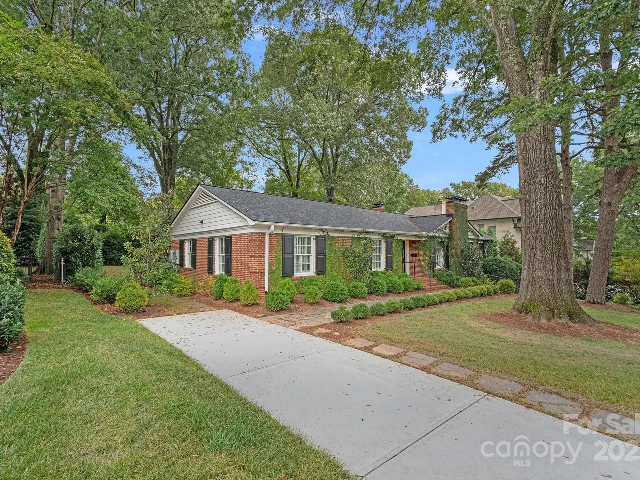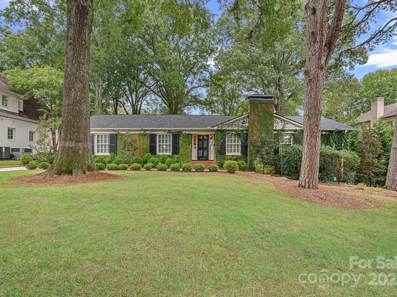 Timeless elegance and classic charm define this beautifully updated 1954 ranch nestled in the heart of Old Cotswold neighborhood. Thoughtfully designed for both comfort and style, this three-bedroom, two-full-bath home was redesigned by the renowned architect Don Duffy and features a tastefully renovated kitchen with warm butcher block counters, custom cabinetry and elegant fixtures. The charming sunroom offers additional custom cabinetry for extra storage needs and an abundance of windows, flooding the room with natural light. The living room exudes sophistication with custom built-ins accented by soft recessed lighting and a cozy gas fireplace, while a second fireplace in the den adds additional warmth and character. Beautifully updated baths complement the home's enduring style, while the very private, landscaped backyard provides an ideal retreat for outdoor enjoyment. The covered rear porch, formerly a two-car carport, along with the beautiful stone patio is a wonderful area for outdoor living. Additional highlights include a whole-house gas generator that offers peace of mind and everyday convenience. Perfectly situated near premier dining, shopping, and Uptown Charlotte, this quintessential home blends classic design with timeless modern comforts in a most sought-after neighborhoods.