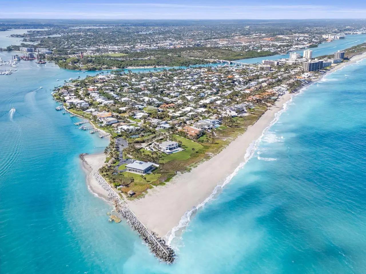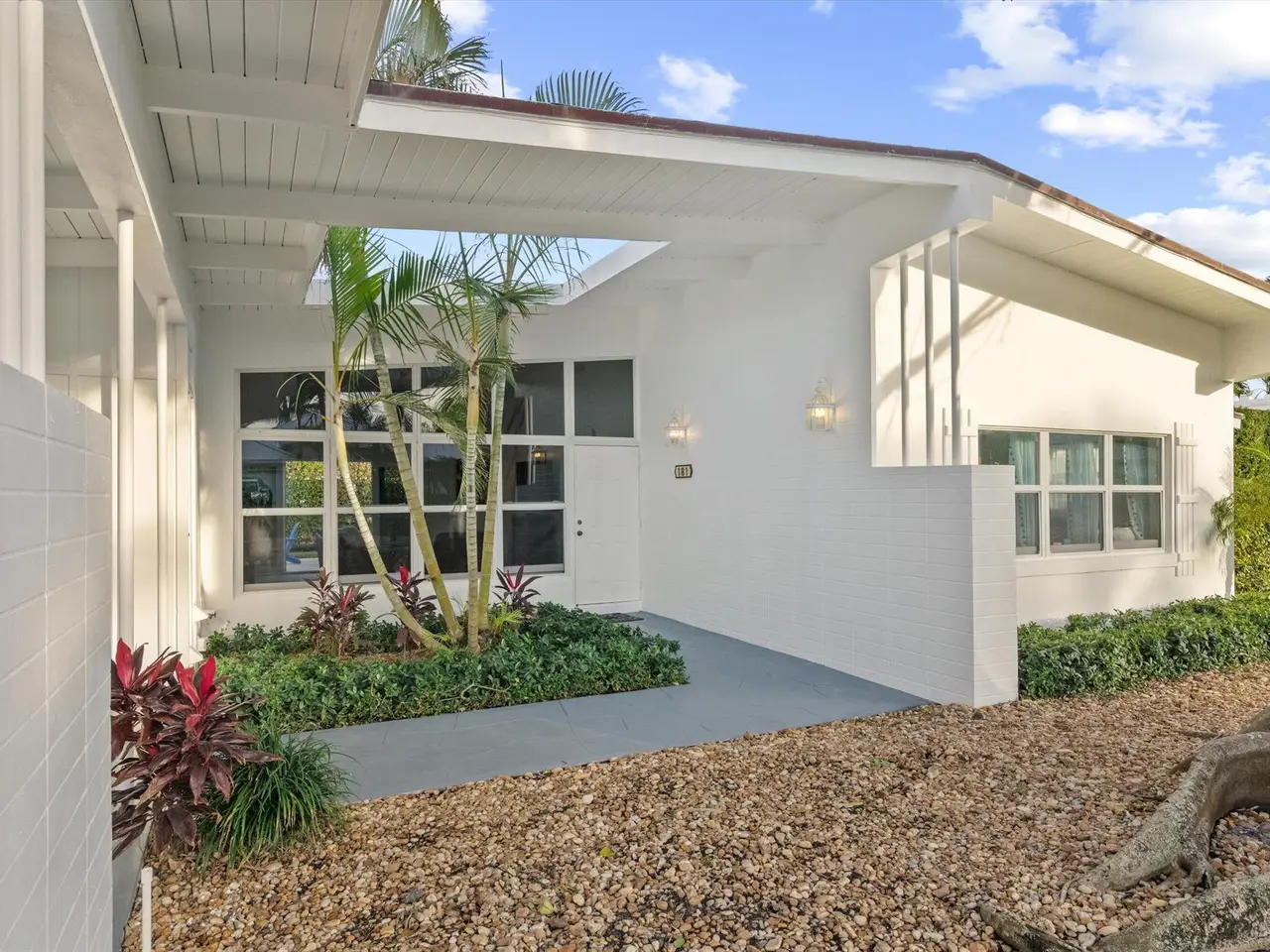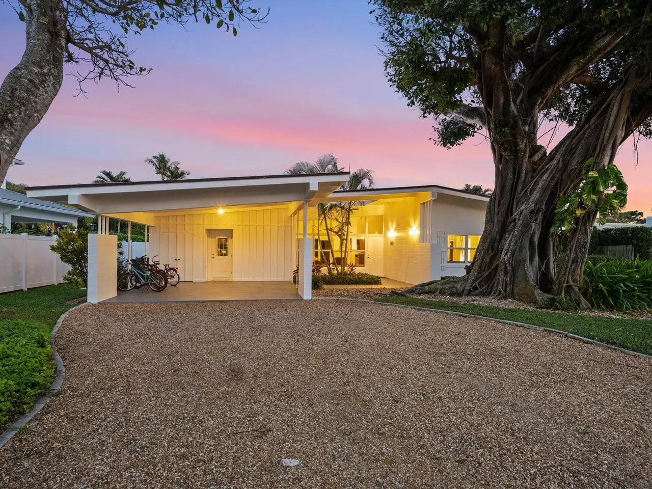 Just steps from the private, secured beaches of Jupiter Inlet Colony, this one-level Mid-Century coastal retreat sits on a prime interior lot, offering both charm and opportunity. Fully furnished and turnkey, this CBS-constructed home features 3 bedrooms, 2 baths, and an open floor plan where the kitchen seamlessly connects to the dining and living areas. With soaring volume ceilings, exposed beams, and all-impact windows and doors, the home is designed for both style and security. Outside, a lushly landscaped backyard oasis awaits, complete with a private pool enveloped by greenery. Offered at land value and sold as-is. This property presents a rare chance to build new or renovated in one of the most coveted beachside communities.