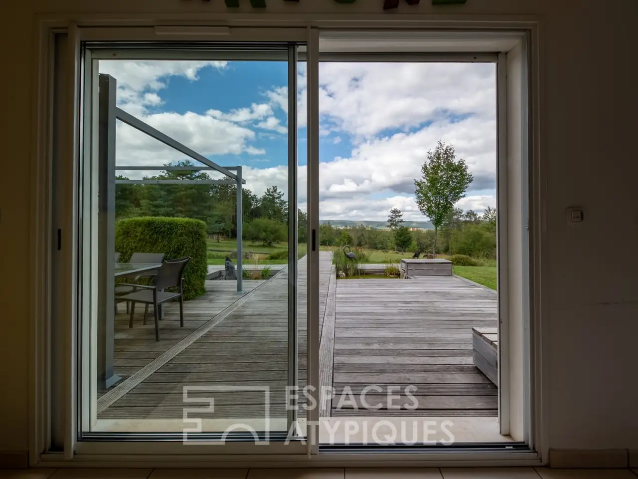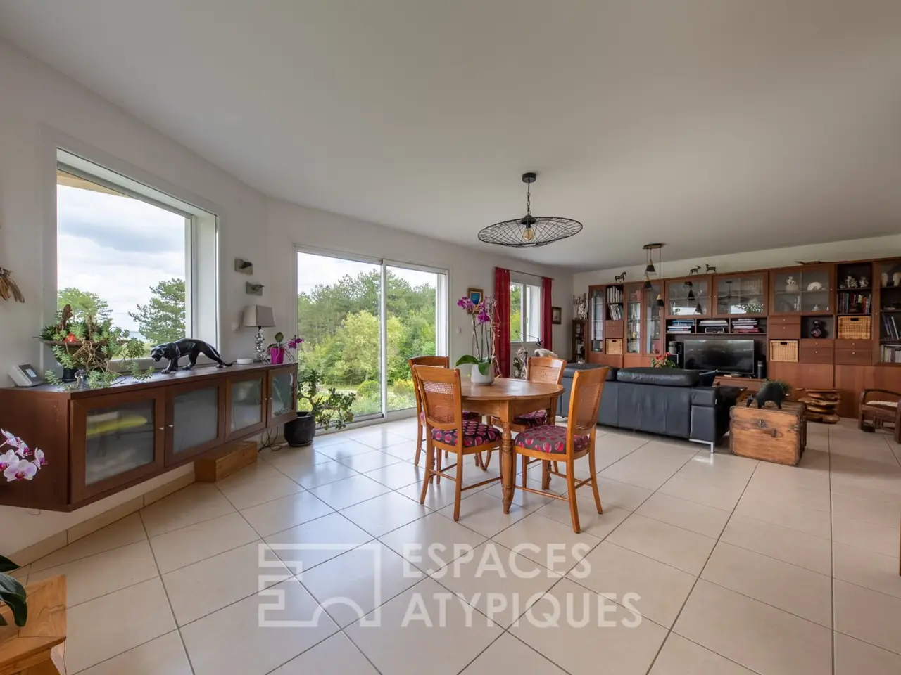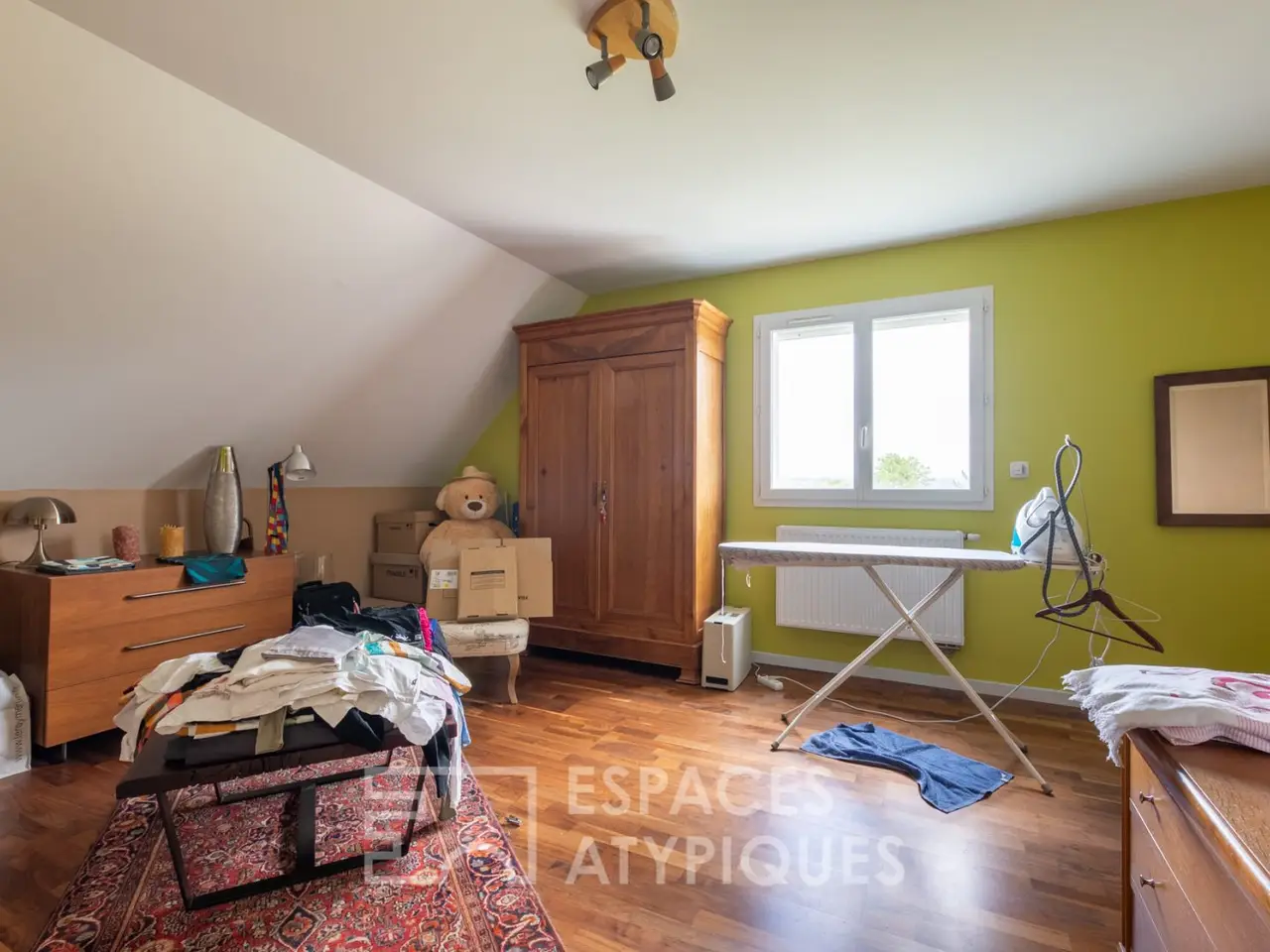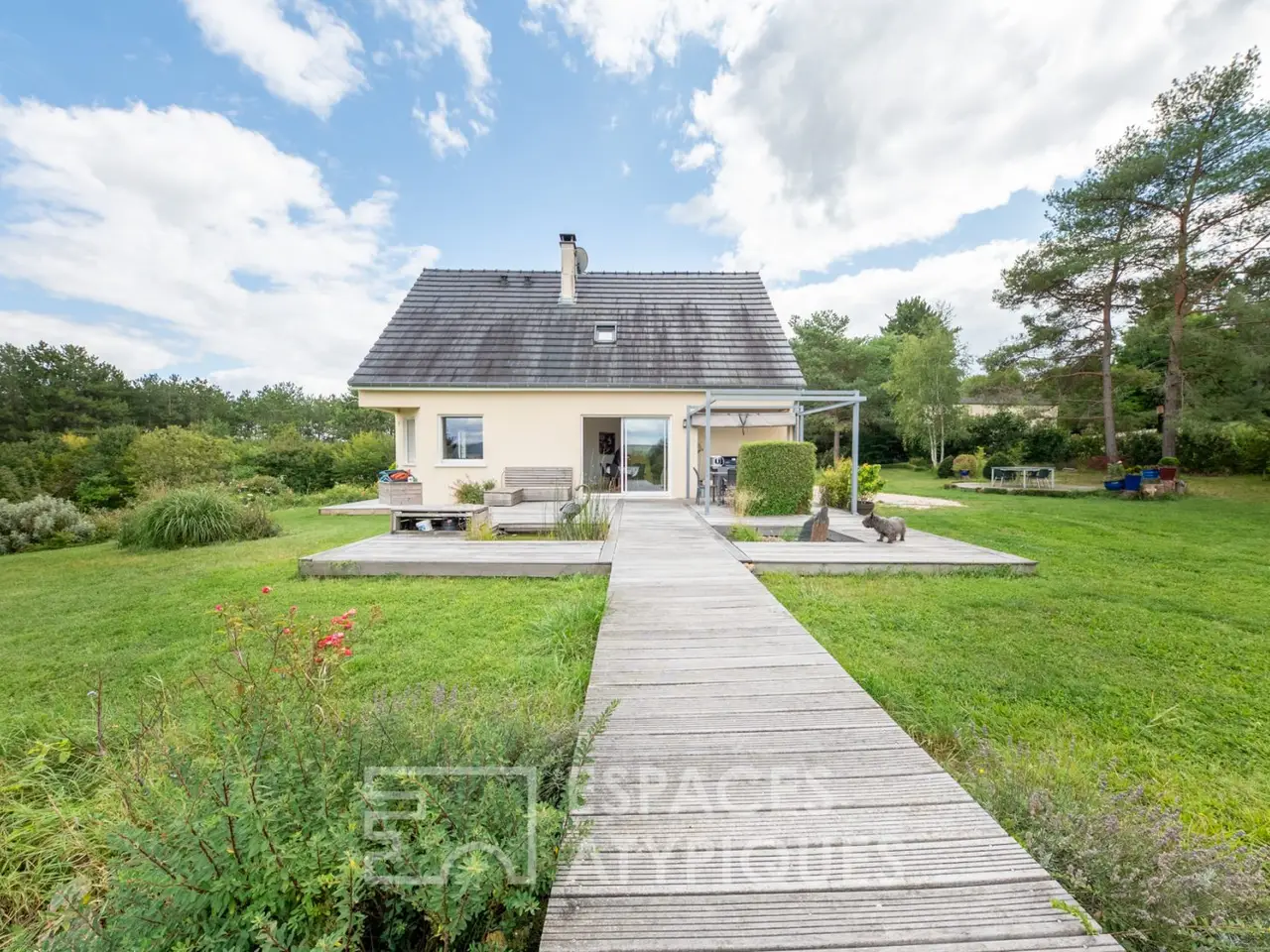 Located near Notre Dame de l'Étang, a well-known visited place in the heart of the Ouche Valley away from traffic with direct access to the forest, this 20,000 m2 property overlooks an incredible setting. The multiple varieties of trees in the park will allow you to enjoy each season. Quality equestrian infrastructures available will appeal to horse-riding enthusiasts. The 197 m2 house was built in 2005, well insulated and comfortable with its underfloor heating, its volumes and its beautiful light, where each room offers a different panorama. The living space developed on two levels is increased by a mezzanine and extended by a terrace overlooking nature. The sleeping areas consist of a master bedroom on the ground floor with dressing room, bathroom and an office, upstairs 4 bedrooms, one with shower room and another independent. All on a full basement with cellar, music room, laundry room and double garage. This property offers many possibilities (between guest houses, treehouses, participatory equestrian center, :) and 8000 m2 building. 3 minutes from the A38 to take the A6 and 12 minutes from Dijon train station. Shops in the village. Nathalie FENART (RSAC: 337560569): 06.42.82.87.16 Additional information * 7 rooms * 5 bedrooms * 1 bathroom * Outdoor space : 20000 SQM * Property tax : 2 443 €