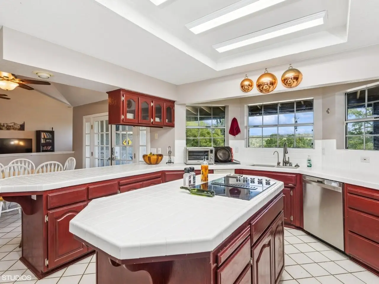 Stunning Country Estate! This elegant single-level home is situated on a sprawling 10-acre lot in the prestigious Sunridge Ranch community. The bright and open floor plan boasts 15 foot ceilings, with a charming brick and stucco exterior. The kitchen is equipped with a walk in pantry and the home also features two luxurious master suites that offer ultimate comfort and privacy. Enjoy breathtaking distant and local views from the property, surrounded by beautiful wooded and private acreage. Located conveniently across the street from the fire retention pond ensuring safety and peace of mind. Additional features include a mobile fire suppression system, 3 Tesla back-up batteries, and zoned for highly desirable Oak Ridge High School in EDH & Latrobe School District for elementary and middle school. Outdoor amenities include a personal campsite, a pool with a Cabo shelf and swim-up bar, a fenced agricultural area with fruit trees and vegetable beds, and a chicken coop. The expansive outdoor living space is perfect for entertaining guests. The property also boasts a full-height crawl space, a cedar-floored master walk-in closet, and luxury vinyl flooring in the family, dining, and living rooms. This estate truly offers the best of country living with modern amenities.