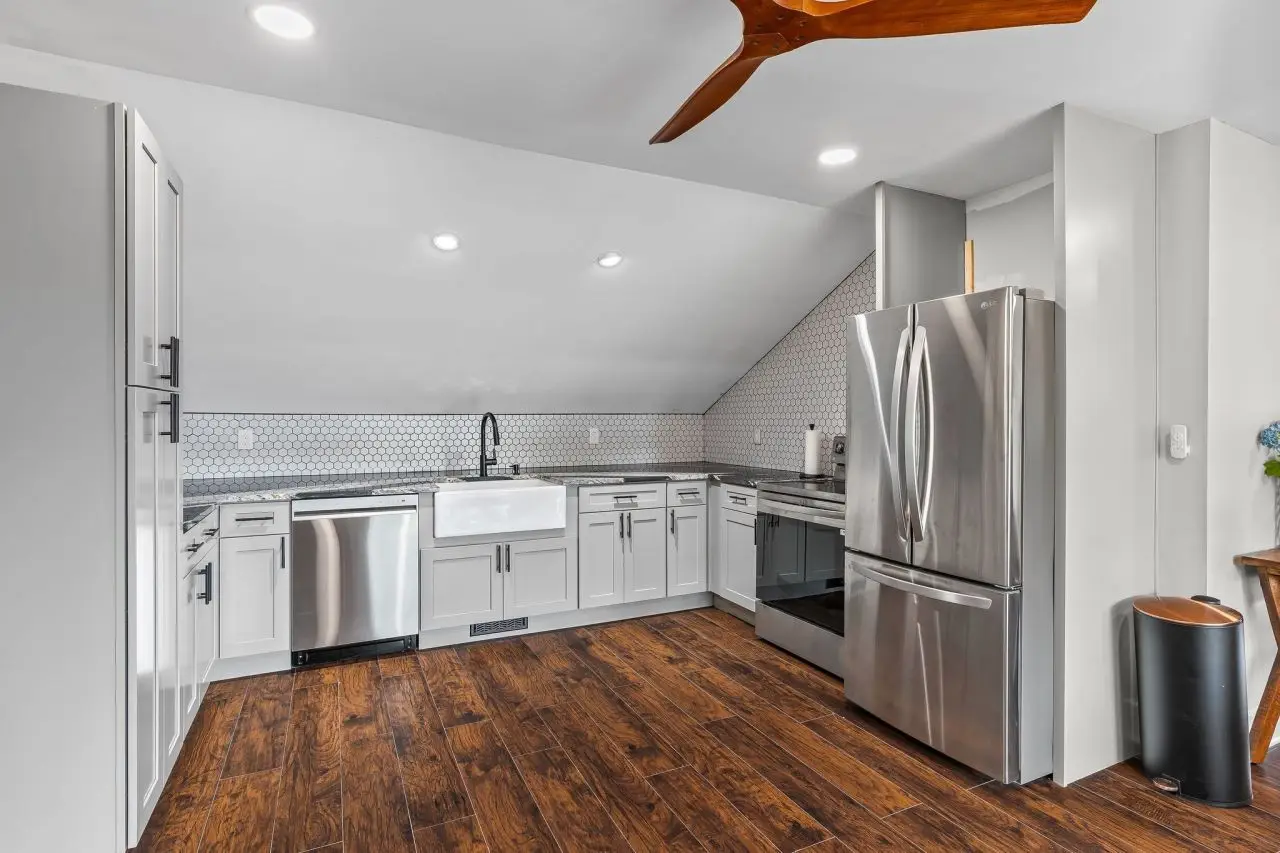 Motivated Seller l Lake Life Just Got Better Welcome to your dream lake retreat! This stunning, fully remodeled lakefront home is the perfect blend of luxury, comfort, and lifestyle. Nestled in a peaceful cove, enjoy breathtaking water views from the expansive wrap-around deck-ideal for morning coffee, evening sunsets, or entertaining under the stars. A private staircase leads you down to the scenic community boardwalk, which winds along the shoreline and connects you to two deeded boat slips w/ power-just bring your water toys!The showstopper? A massive detached 50' x 40', 8-car garage, fully insulated with central HVAC, perfect for storing boats, RVs, cars, or converting into the ultimate workshop or hobby space with 1/2 bath.. Above the garage sits a fabulous 2-bedroom apartment (approx. 1,400 sq ft) with its own full kitchen and bath-ideal for guests, extended family, or rental income.Inside the main home, every inch has been thoughtfully reimagined from the studs out. Gleaming hardwood and tile flooring throughout, rich trim work, and an exquisite owner's suite featuring a spa-like bathroom and a showstopping dressing room with a custom-designed closet.This is lake living at its finest-a rare opportunity to own a one-of-a-kind property that truly has it all.