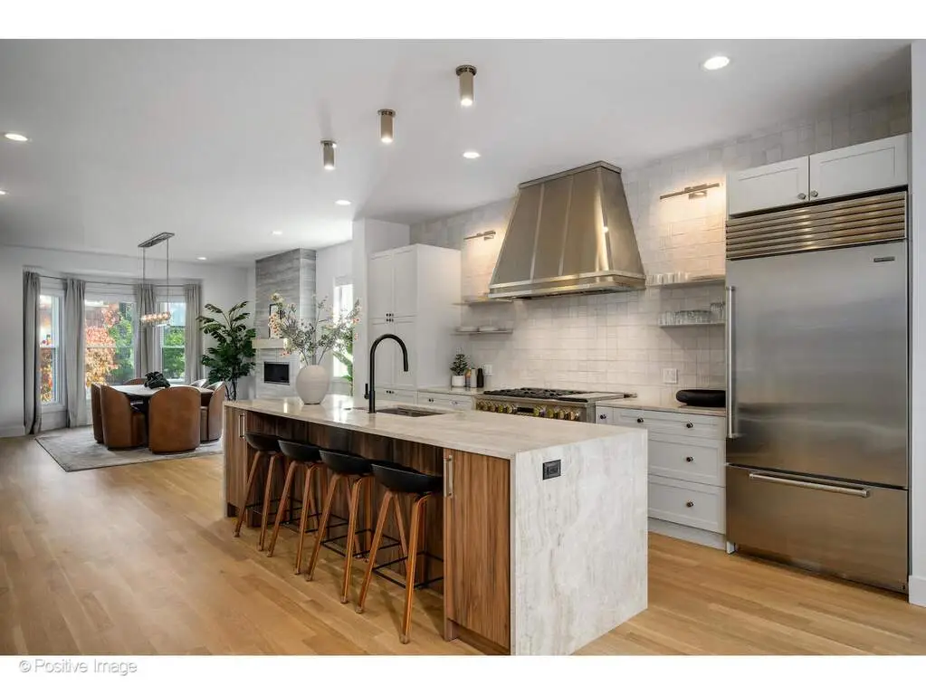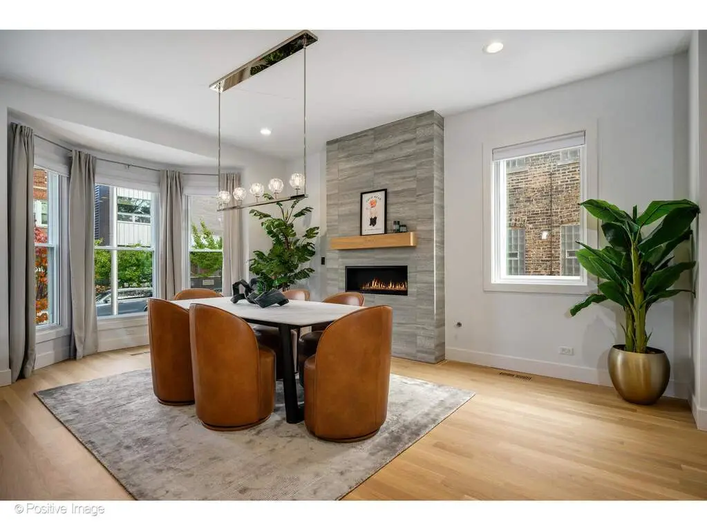 Effortlessly beautiful and elegantly designed, this Bucktown single-family home is truly a breath of fresh air. Ideally situated on a charming one-way street, this home enjoys all the conveniences of the eclectic adjacent neighborhood while savoring the serene surroundings of a tree-lined, residential street. Designed for comfort, the home features enhanced acoustic windows and an all-brick exterior that create a peaceful retreat from the city's energy. Highlights include a chef's kitchen with high-end appliances, rooftop deck with pergola, heated 2-car attached garage, fully finished lower level with 125" home theater and wet bar, two laundry areas on the upper bedroom level and lower level, abundant storage, and luxurious spa-like baths. Prepare to be wowed by the level of finishes and meticulous attention to detail throughout this incredible home. Blonde, white oak hardwood floors and motorized window shades can be found throughout the residence. Large windows facing three exposures, soaring ceilings, and an open floor plan allow an abundance of natural light to bathe and warm the living space. The dining room features a bay window overlooking the front yard, a gas fireplace, and a chandelier from Restoration Hardware. Conveniently located just off the dining room is a powder room with charcoal colored shiplap walls. The newly renovated kitchen features a custom-designed range hood with commercial-grade exhaust fan, Monogram double oven with 6-burner range and griddle, Sub-Zero refrigerator, and Bosch dishwasher and microwave. The countertops and oversized waterfall edge island with breakfast bar are made of honed Taj Mahal quartzite. A full wall of newly added storage cabinets with RH hardware creates extensive pantry space, while RH sconces and overhead lighting complete the sophisticated look. The kitchen seamlessly flows into the spacious, sun-drenched living room where you will find easy access to the attached, heated 2-car garage. Stairs from the living room lead to the composite roof deck with pergola, grill, plantings, and a water spigot. Three bedrooms are conveniently located on the second floor. The luxurious, light-filled primary suite has a graciously sized bedroom with large windows overlooking the roof deck, two walk-in closets plus an additional wall closet, and a spa-like ensuite bath with white herringbone wall tile, a double vanity with quartz counters, a soaking tub w/ convenient handheld, and an oversized walk-in shower with rain head, handheld, niche, and bench. The sprawling second bedroom could rival the size of any primary and features a bay window overlooking Montana Street, a chandelier, and a large, professionally organized closet. The sizable third bedroom enjoys a walk-in closet. A well-appointed, black and white, full bathroom with tub/shower stands in between the bedrooms and across the hall from a laundry room with oversized Samsung W/D. Downstairs, the fully finished lower level has heated flooring throughout and is an entertainer's dream with a rec room outfitted with a 125" movie screen and Sonos sound system. This recreational space features a full wet bar with wine fridge, quartz counters, and quartz backsplash. A substantially sized 4th bedroom (currently configured as a gym) has a spacious walk-in closet. An office nook provides the perfect place to work from home, and a full bath and a second laundry room with Samsung W/D complete the lower level. Restored exterior details include a turret and architectural shingled roof. Recent updates feature artificial turf in the front yard with a custom-designed, low-maintenance parkway featuring a cherry tree, river rock, and perennials. Ideally situated at the edge of Bucktown and close to Logan Square, the dining, shopping, and nightlife options are endless. Easy access to 90/94 and CTA trains and buses make it a breeze to get anywhere in the city quickly. Welcome home!
