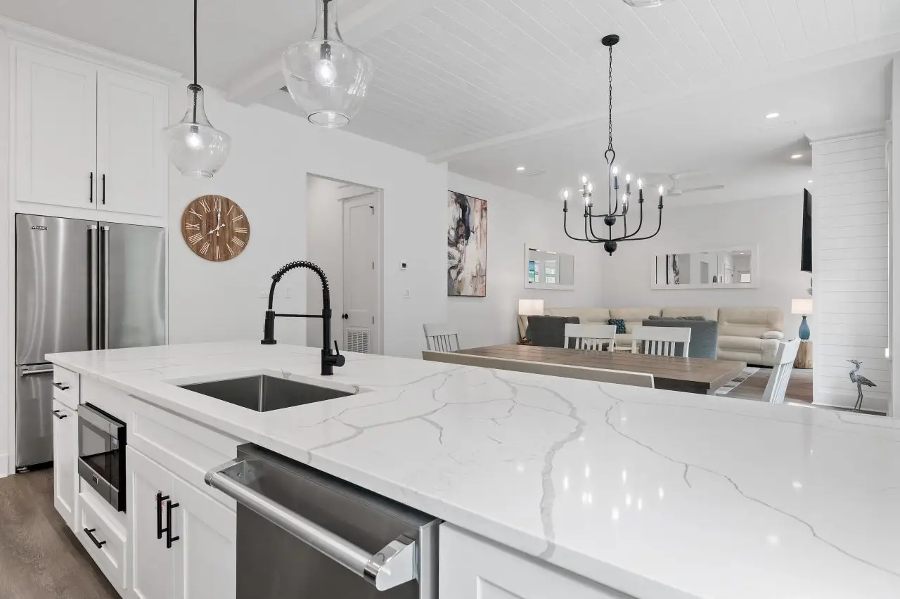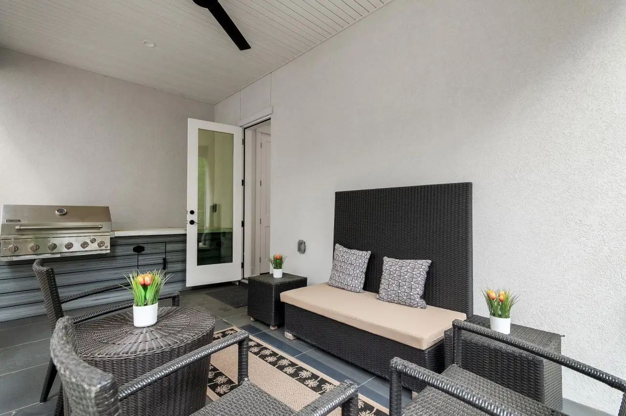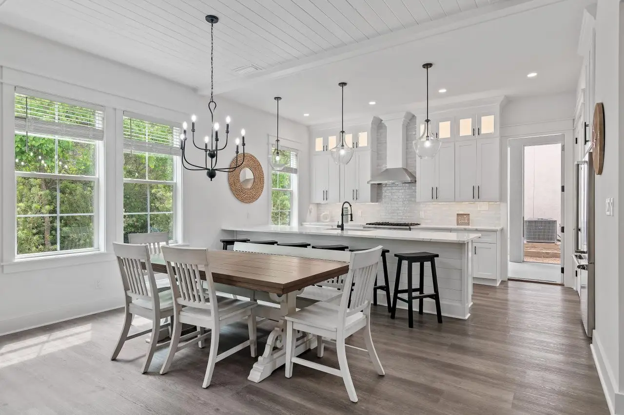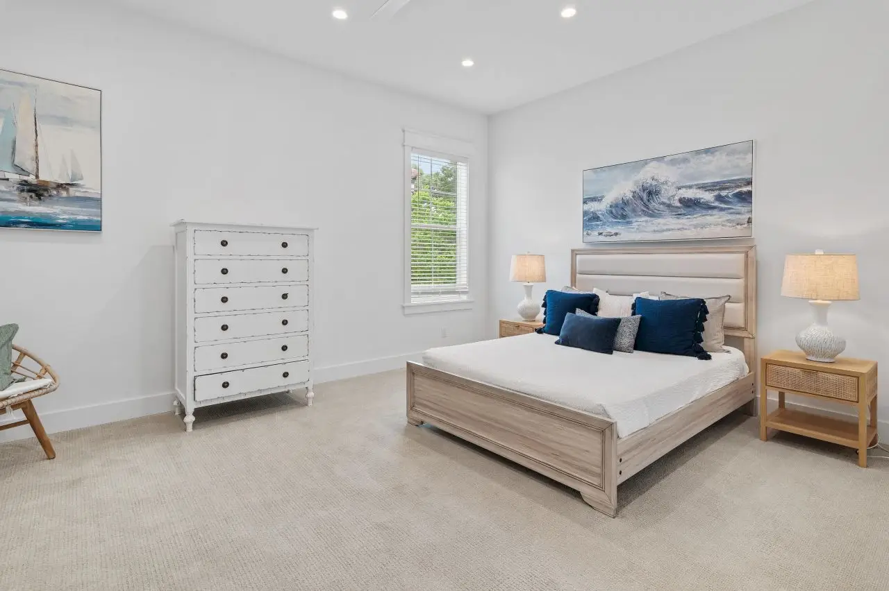 Step into modern coastal elegance in this thoughtfully crafted residence, located in the exclusive gated community of Tops'l Beach and Racquet Resort. This newly constructed 4-bedroom, (plus bonus room), 4.5-bathroom home in Grand Villas, offers a harmonious blend of luxury and comfort across 3,454 square feet of thoughtfully designed living space. Enjoy the convenience of primary suites on both the first and second floors, each featuring spa-like bathrooms for ultimate relaxation. The open-concept kitchen is equipped with top-of-the-line stainless steel appliances, custom cabinetry, and a spacious island, making it perfect for entertaining guests. Step outside to a screened patio featuring a built-in grill, perfect for alfresco dining and enjoying the Florida breeze. A home theater that doubles as an additional bedroom and twin bunks in the upstairs sitting area provide ample space for family and guests. The upstairs sitting area also includes a wet bar. Dual laundry rooms on each floor add to the home's convenience. Situated within the exclusive Grand Villas at Tops'l Beach Club, residents have access to a private community pool, as well as, state-of-the-art fitness center, tennis courts, additional swimming pools, and deeded beach access. Tops'l offers a laid-back coastal vibe with proximity to beautiful beaches and a variety of recreational amenities. Experience the perfect blend of luxury, comfort, and convenience in this exceptional beach retreat. Whether you're seeking a primary residence, vacation home, or investment property, 33 Palm Ridge Road offers an unparalleled coastal living experience.