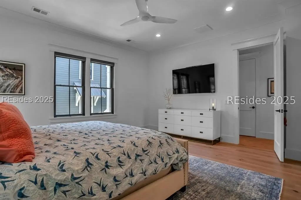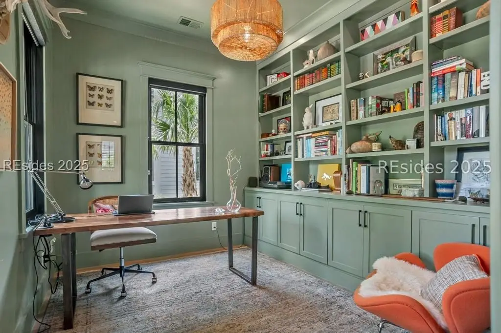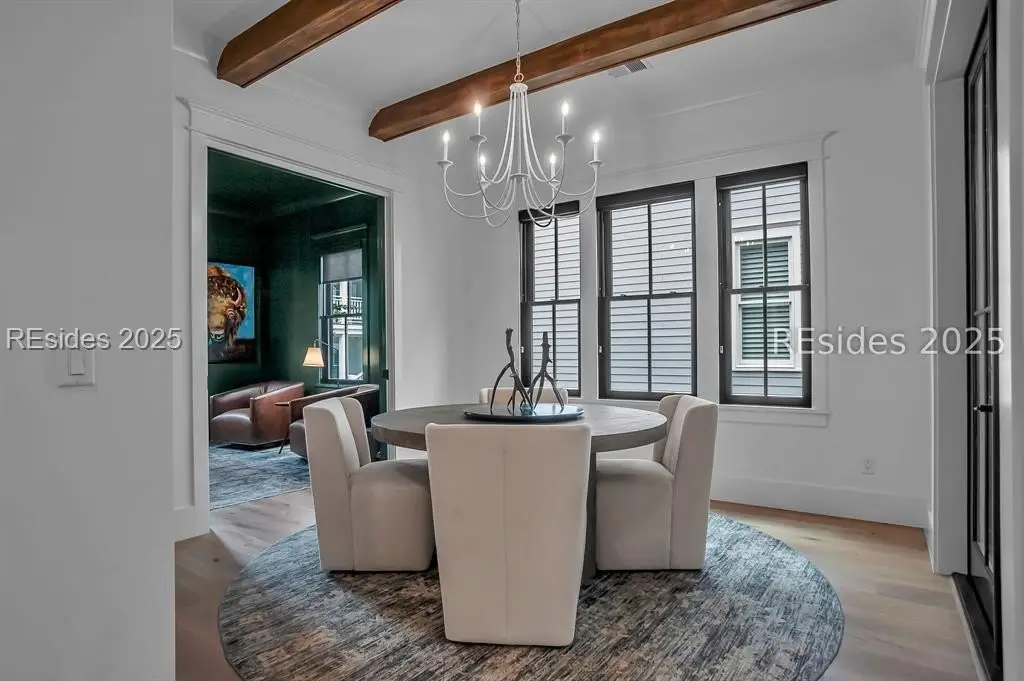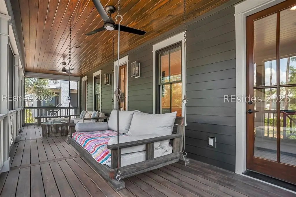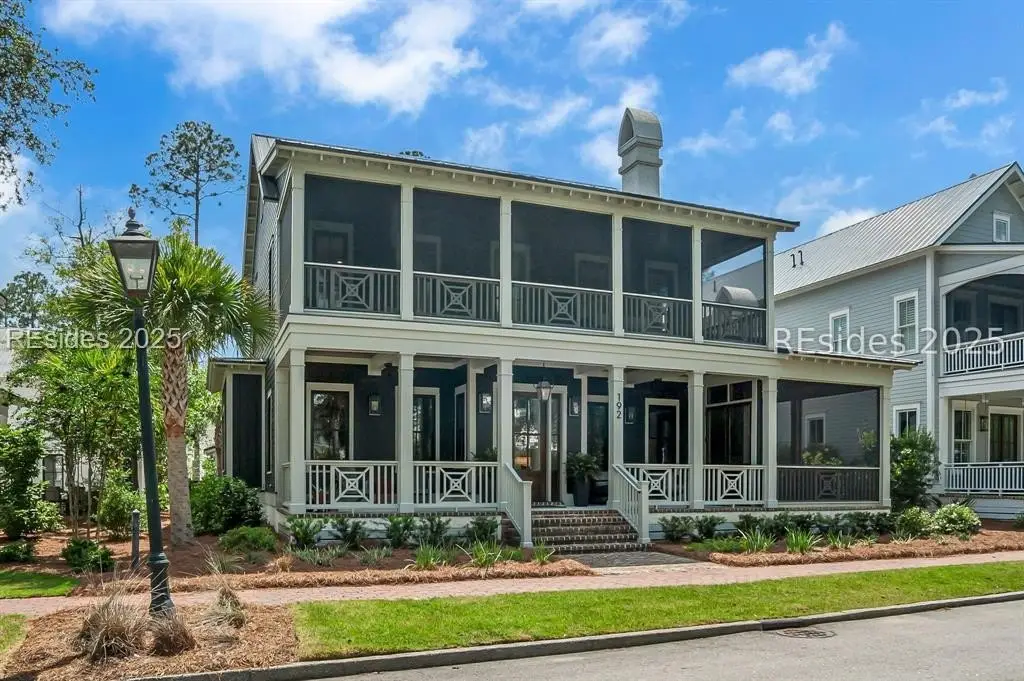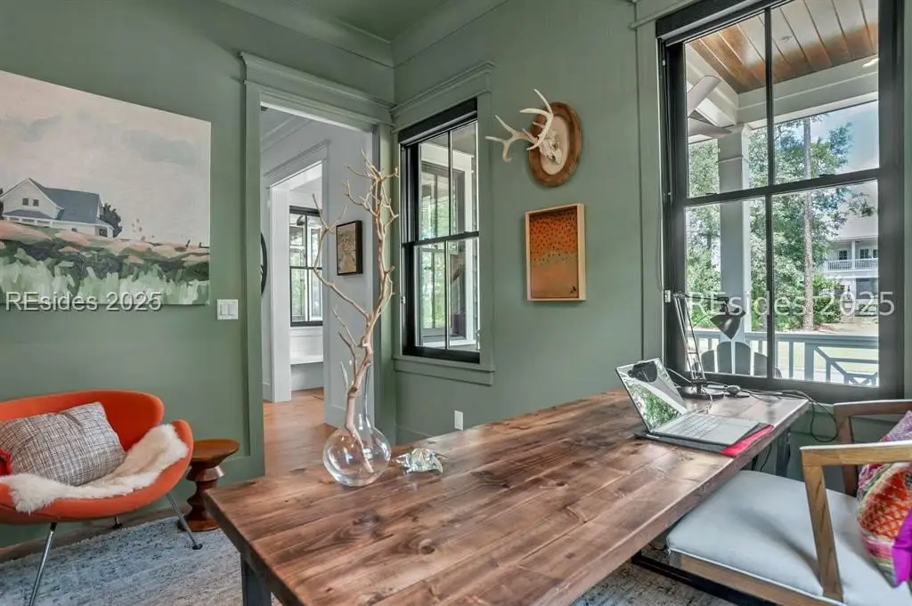 With expansive views of the park from multiple porches, 192 Hunting Lodge is a modern, coastal home built for easy first floor living with a chef's kitchen, living space, dining room, separate library, private bourbon room, screened and open porches and sprawling primary suite. Upstairs, the second floor allows guests their own private escape with 2 ensuites, spacious flex/media room and screened porch overlooking the park. An above-garage guest suite and 2 car garage round out this ideal Lowcountry home that is steps away from the member-only pool, fitness center, playground, dog park and inland waterway and trails.