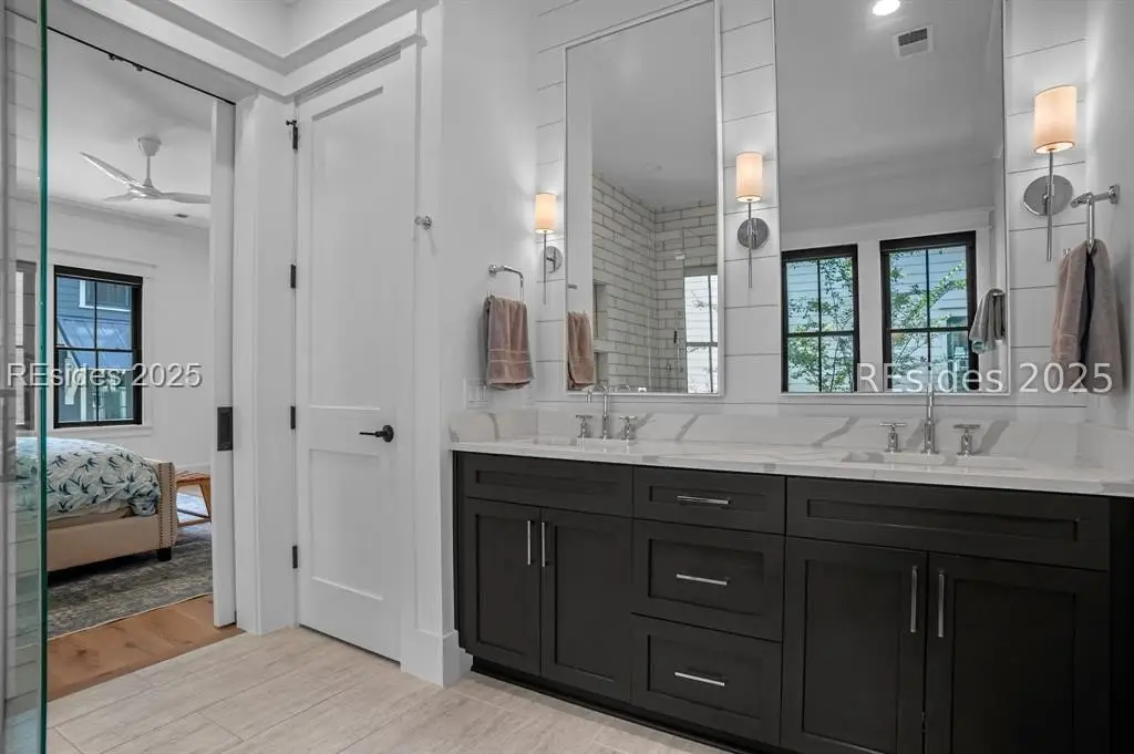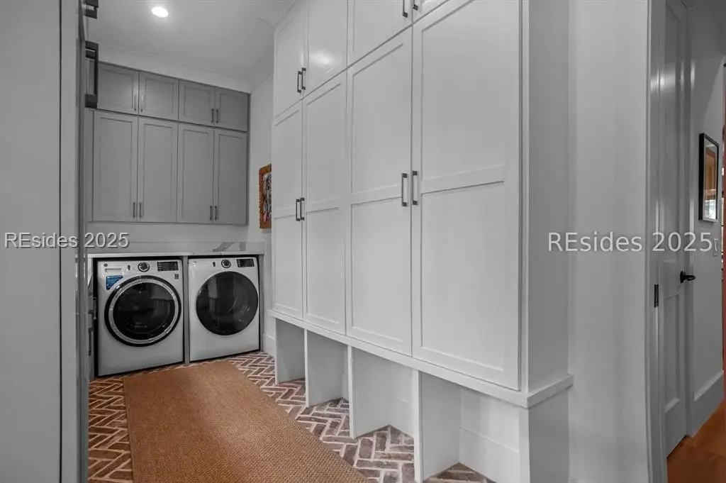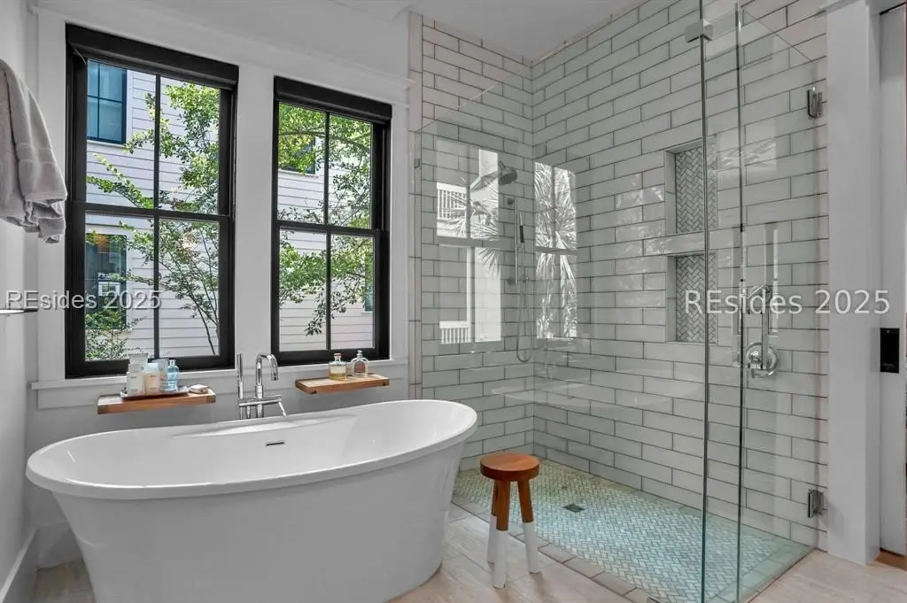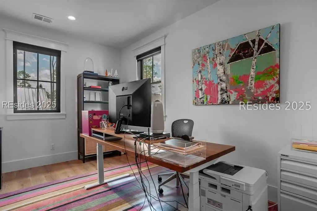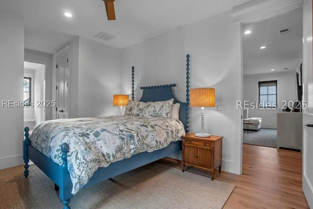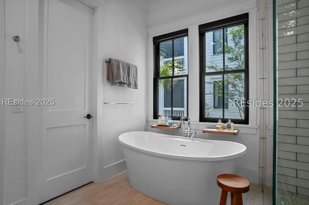 With expansive views of the park from multiple porches, 192 Hunting Lodge is a modern, coastal home built for easy first floor living with a chef's kitchen, living space, dining room, separate library, private bourbon room, screened and open porches and sprawling primary suite. Upstairs, the second floor allows guests their own private escape with 2 ensuites, spacious flex/media room and screened porch overlooking the park. An above-garage guest suite and 2 car garage round out this ideal Lowcountry home that is steps away from the member-only pool, fitness center, playground, dog park and inland waterway and trails.