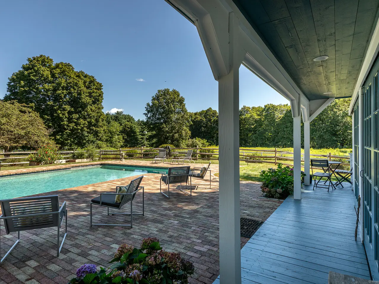 Step into History with Modern Comfort Experience the undeniable charm of this circa 1685 residence-one of the oldest continuously inhabited homes in the county. Thoughtfully restored and beautifully updated, this remarkable property blends centuries of character with today's modern conveniences. Inside, the open floor plan creates a warm and inviting flow, with three cozy sitting rooms surrounding the impressive central hearth. The chef's kitchen features a large center island, breakfast bar, and sweeping views of the expansive lawn-perfect for both everyday living and entertaining. Original details abound, including hand-hewn beams, wide king's board flooring, and the historic cooking fireplace that anchors the heart of the home. Recent upgrades include a new HVAC system with humidification and numerous other enhancements (see attachments for the full list). A new mahogany deck overlooks the level backyard, leading toward a picturesque bridge, sparkling pool, and inviting cabana. Two barns sit near the parking area-one offering garage space and the other ready for your imagination: ideal for a future guest house, studio, or recreation room, this barn has new propane heat, water and electric service. This extraordinary home offers the rare opportunity to own a piece of history-beautifully updated for modern living.