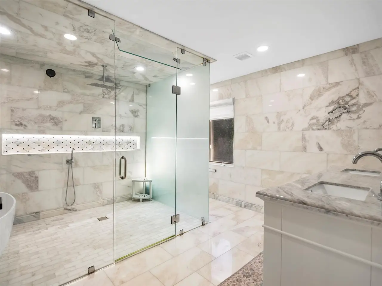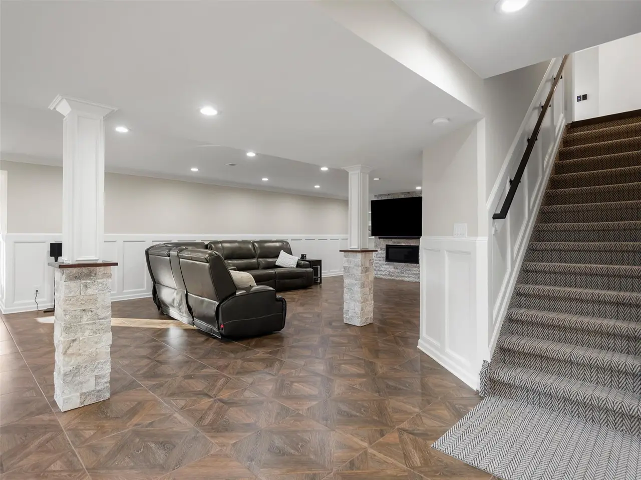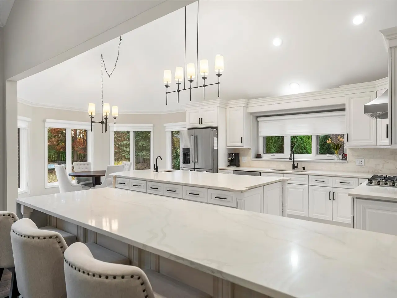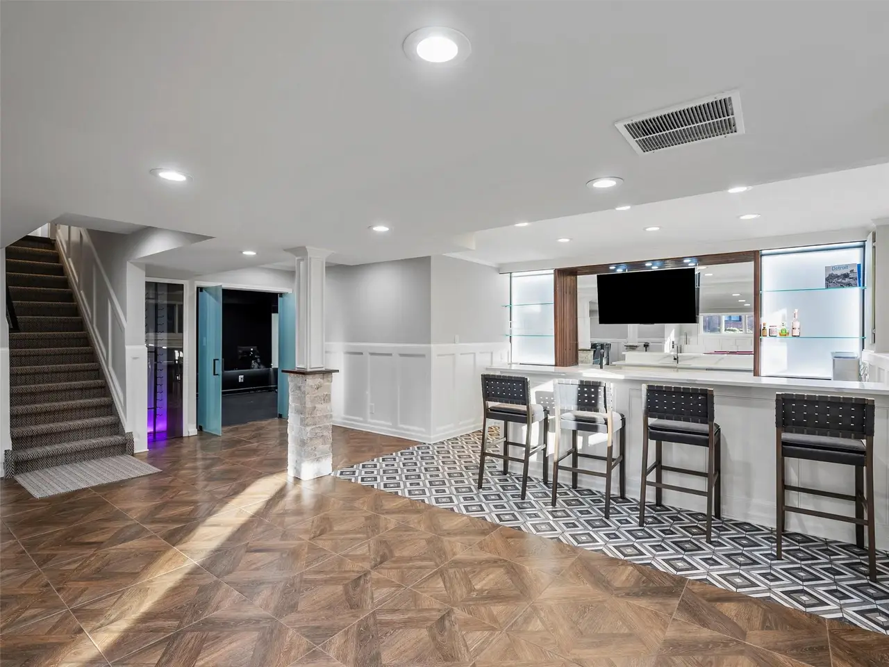 Meticulously renovated in 2024, this stunning split-level residence at 56173 Parkview Dr. offers 4 bedrooms, 3 full baths, and a convenient half bath with the master suite on the main floor. The entire main level showcases beautiful wood floors, complemented by all-new mechanicals for modern efficiency. The gourmet kitchen, back hallway, and laundry room feature radiant heated floors, while the spa-like master bath boasts marble finishes and heated flooring. The fully finished lower level impresses with a custom bar and marble-clad bathroom featuring a steam shower. Step outside to a resort-style oasis: a massive 70,000+ gallon inground pool with integrated spa and a dedicated pool house. Move-in ready, your private sanctuary awaits!