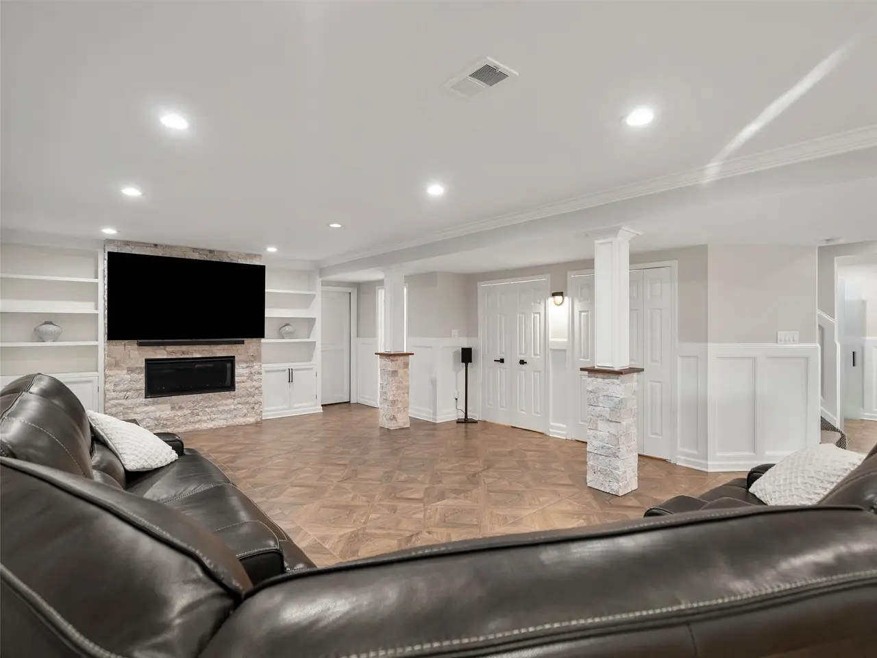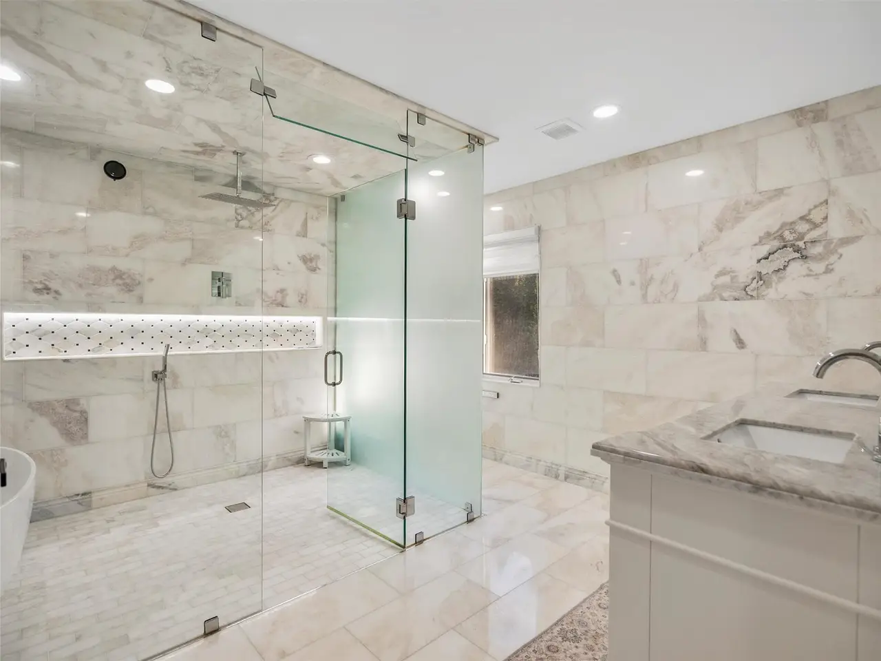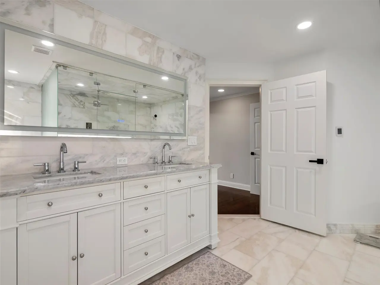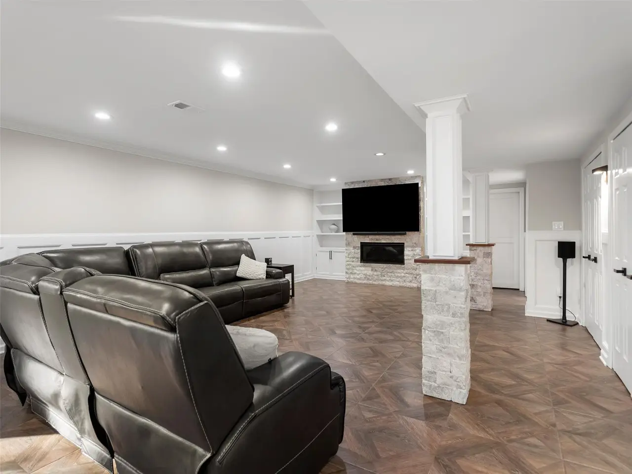 Meticulously renovated in 2024, this stunning split-level residence at 56173 Parkview Dr. offers 4 bedrooms, 3 full baths, and a convenient half bath with the master suite on the main floor. The entire main level showcases beautiful wood floors, complemented by all-new mechanicals for modern efficiency. The gourmet kitchen, back hallway, and laundry room feature radiant heated floors, while the spa-like master bath boasts marble finishes and heated flooring. The fully finished lower level impresses with a custom bar and marble-clad bathroom featuring a steam shower. Step outside to a resort-style oasis: a massive 70,000+ gallon inground pool with integrated spa and a dedicated pool house. Move-in ready, your private sanctuary awaits!
