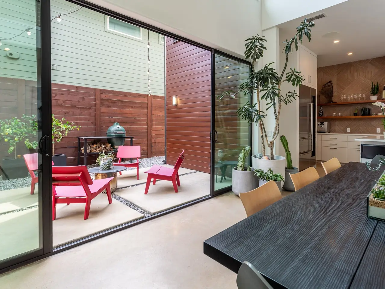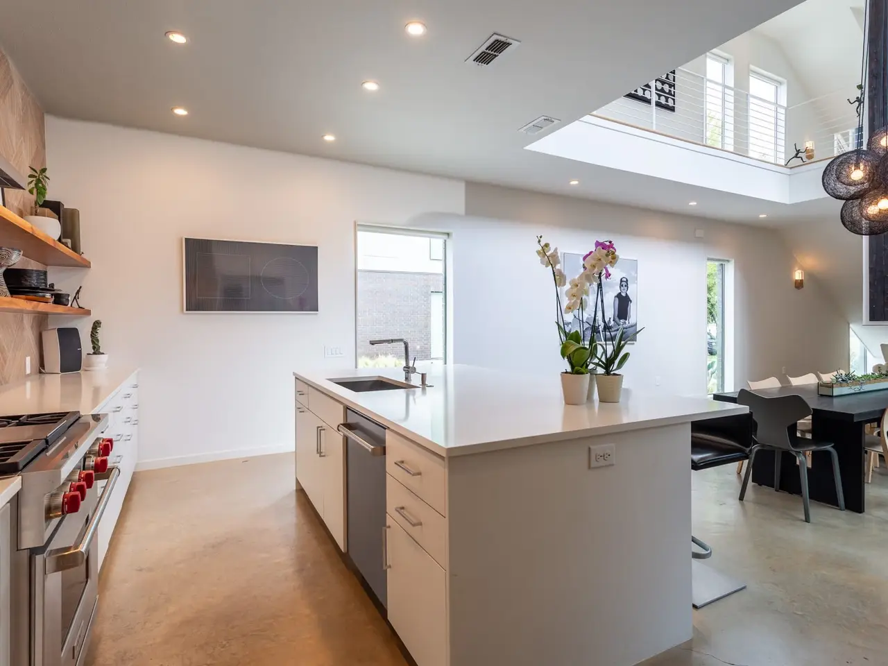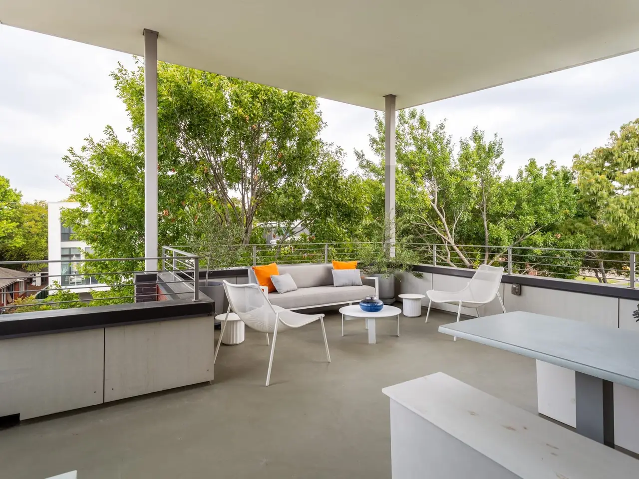 Sophisticated, low-maintenance living in the heart of Knox-Henderson, with effortless walkability to Dallas best dining, shopping, and nightlife. This 2017 modern contemporary offers 3 bedrooms, 3 full baths, 2 half baths, a study, 2 living areas, multiple balconies, and a private, enclosed patio-yardperfect for indoor-outdoor entertaining. Soaring ceilings, oversized windows, and luxe finishes set the tone throughout. No HOA. The chefs kitchen was elevated in 2019 with custom cabinetry that integrates a Sub-Zero refrigerator and dedicated wine storage, plus a Wolf range and Asko dishwasher. In 2021, the island was enlarged with a slab-quartz overhang for casual seatingnow the natural hub of the home. The whole-home sound system (living room, kitchen, 3rd-floor lounge, and roof deck) keeps the vibe seamless on every level. Upstairs, the third-floor lounge is party-ready with custom bar cabinetry and a Sub-Zero beverage center and steps from the upstairs covered balcony that brings the outdoors in. Bedrooms are generously scaled, and ensuite spa-style baths pair modern lines with durable, timeless finishes. The master retreat features a sitting area, generous walk-in closet and a bathroom to transport you to serenity. Hardwood and concrete flooring, a floating modern Bio-ethanol fireplace, and thoughtful construction upgrades complete the curated aesthetic. Outside, the lot is designed for beauty and ease. Professional drainage improvements included tie-ins to street; catch basins and foundation drip zone to protect the property, while the yard has evolved to quality turf and a landscape refresh with stone edging stained fene and low-water xeriscaping a smart, stylish backdrop for everyday living and weekend gatherings. Leave the car at homethis address puts you moments from the Knox-Henderson corridors restaurants, boutiques, and nightlife while offering a quiet, private retreat when you return.