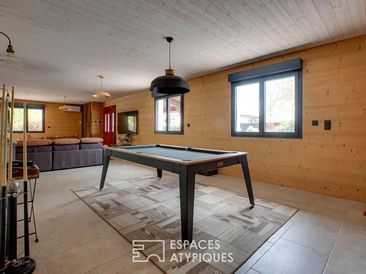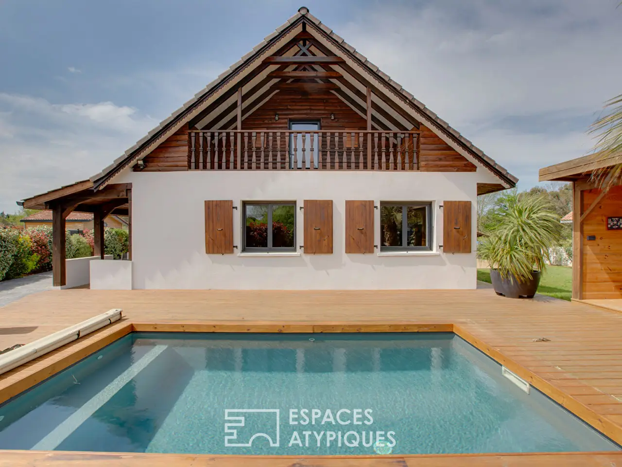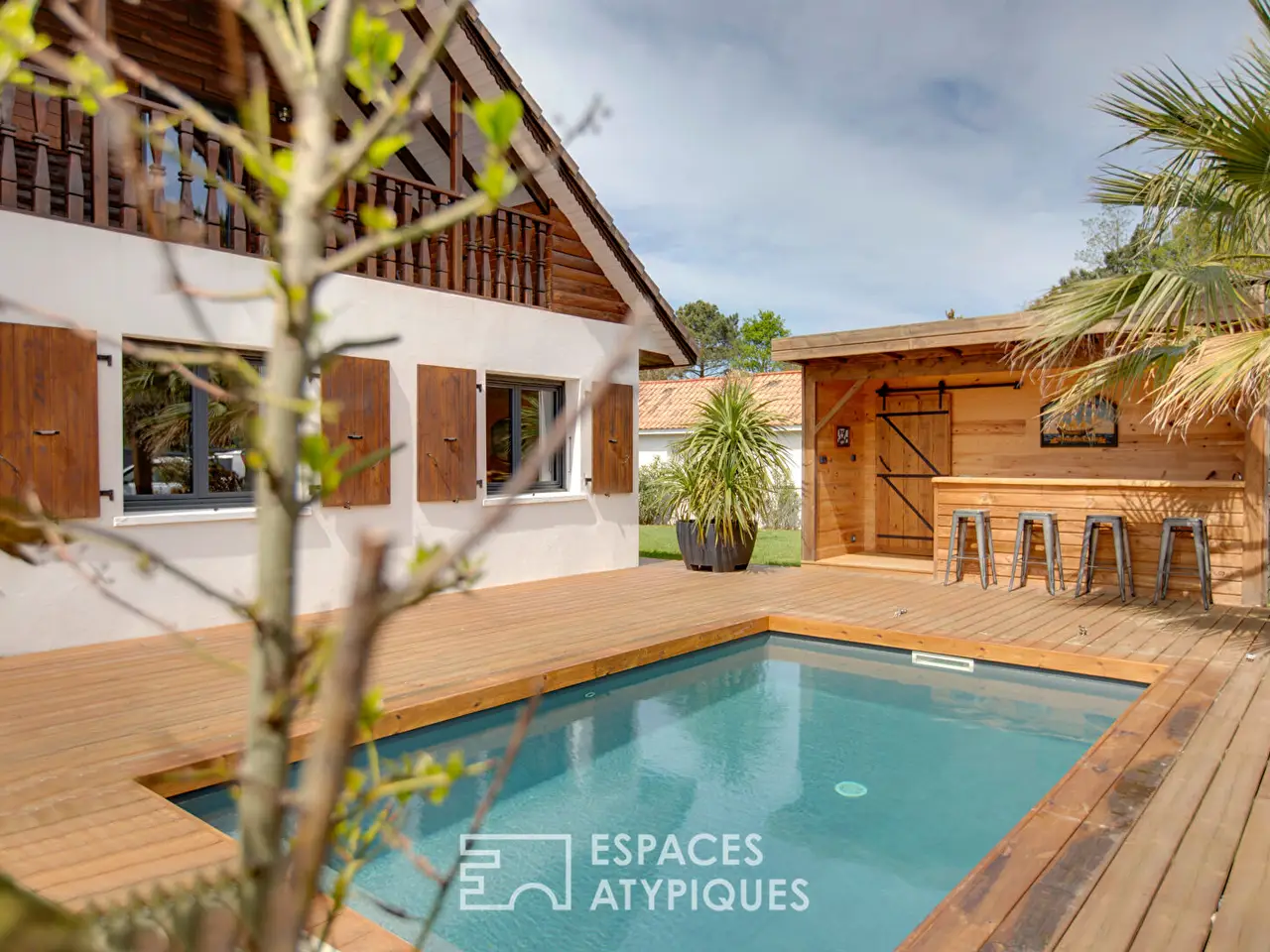 In the heart of Benesse-Maremne, in a peaceful setting, this characterful house offers 196 sqm of living space combining comfort and spaciousness. Built on a carefully landscaped plot, the interiors are designed around noble materials and quality finishes. The bright living room, with its warm decor, reveals a beautiful perspective on the exterior. Continuing on from it, the kitchen, a true living space, is equipped with custom-made solid oak furniture, combining aesthetics and functionality. Each space is designed with fluidity and harmony. For sleeping accommodations, a first suite is offered on the ground floor and benefits from a dressing room and its bathroom. The upper floor is dedicated to comfort with a second master suite and a bedroom with a separate shower room. The whole is decorated with care and finesse. Outside, a beautiful wooden terrace extends the living space towards the garden, hosting a swimming pool carefully integrated into its environment, as well as an elegant pool house. All this is set in a green setting, where privacy and calm are the key words. Conducive to relaxation and conviviality, the property is in perfect harmony with the natural spirit of the Landes. This property seduces with its unique character, mixing chalet spirit and contemporary lines, in a subtle balance between charm and functionality. An atypical place to live, designed to accommodate unique moments of life. It is located just a few minutes from the highway and 10 minutes from the popular beaches of Capbreton, Hossegor and Labenne. REF. 10295EALD Additional information * 6 rooms * 3 bedrooms * Outdoor space : 898 SQM * Property tax : 878 € Energy Performance Certificate Primary energy consumption b : 93 kWh/m2.year High performance housing