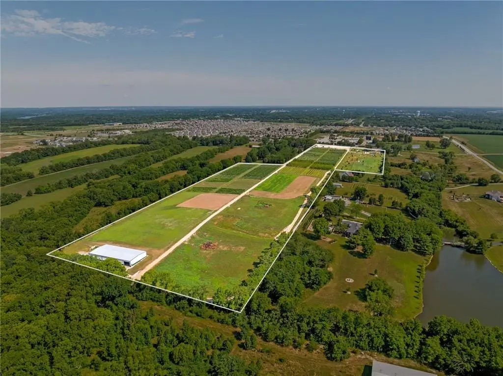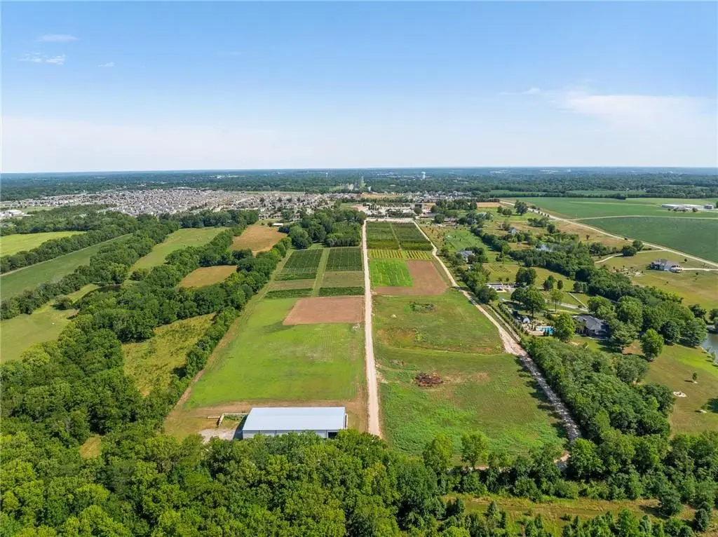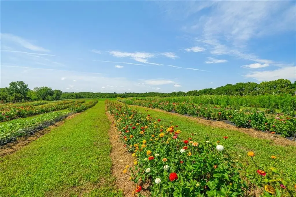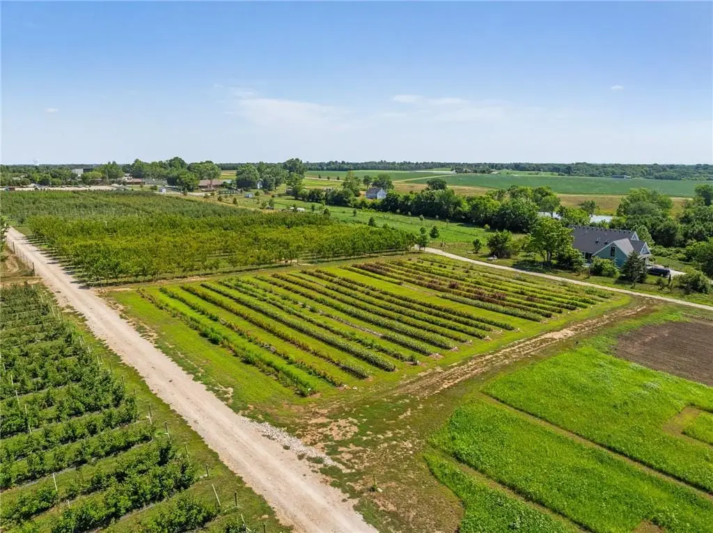 Incredible Opportunity to Own a Thriving Regenerative Farm Just 30 Minutes from Downtown Kansas City! Nestled on nearly 40 acres, this unique agri-business offers the perfect blend of lifestyle and income potential. The property features a brick, three-bedroom ranch home, an established orchard, berry patch, wildflower field, new metal storage building, multiple livestock pens, and 8-foot perimeter fencing with a gated entrance for privacy and security. A true destination, the farm has hosted a variety of community events, including concerts, apple picking, U-pick berry days, a summer solstice festival, educational tours, workshops, private parties, and more. Families love the kids play area complete with a playground and trampoline. Located in Blue Springs with coveted Lees Summit schools, this property offers the rare chance to live and work in one place while enjoying a top-tier school district. The farm has also benefited from a synergistic relationship with a well-known nursery business directly across the street. Offered as three parcels sold together, this is a rare, one-of-a-kind opportunity with limitless potential - whether you continue the current operations or reimagine the property for your own vision.