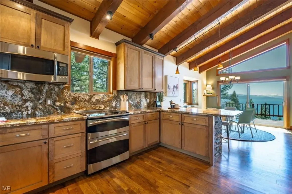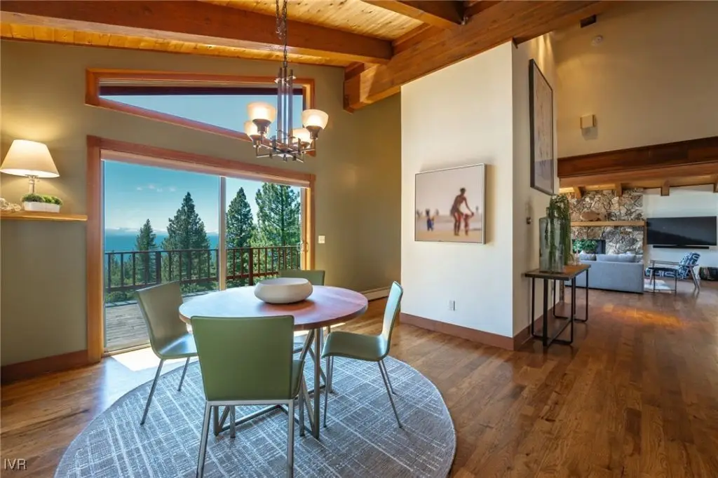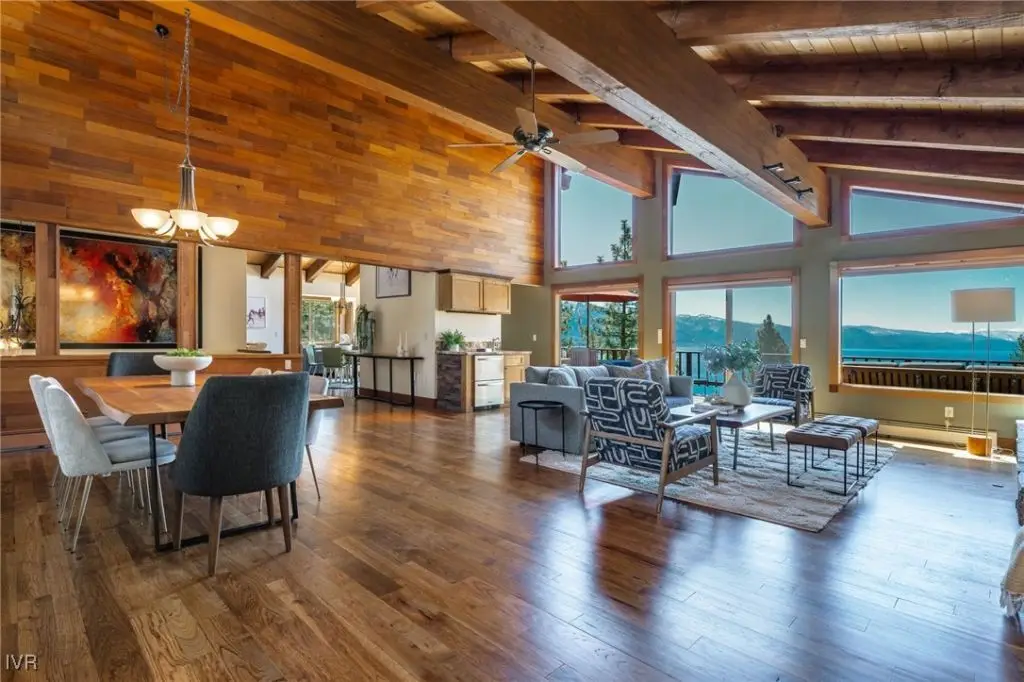 Located in the coveted Ponderosa neighborhood of Incline Village, this stunning 5-bedroom, 3,760-square-foot retreat offers panoramic views of Lake Tahoe from nearly every room. Set on nearly half an acre, the property offers a peaceful, private setting surrounded by natural beauty. Inside, vaulted wood-beamed ceilings soar above an open-concept living and dining area, where expansive windows flood the space with natural light and frame the forested lake views. The home offers separate formal and informal living spaces, letting kids enjoy their own space while adults relax nearby. Additional features include radiant heating, a two-car garage, and ample storage for all your Tahoe gear. With close proximity to Incline's 3 private beaches, rec center, and Diamond Peak ski resort, this home is more than just a place to live - it's a place to create memories, celebrate every season, and fully embrace the Tahoe lifestyle.