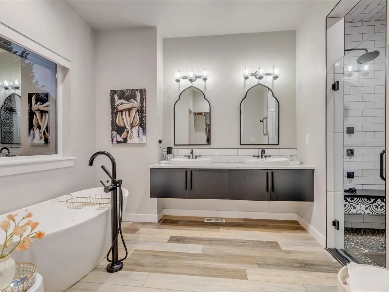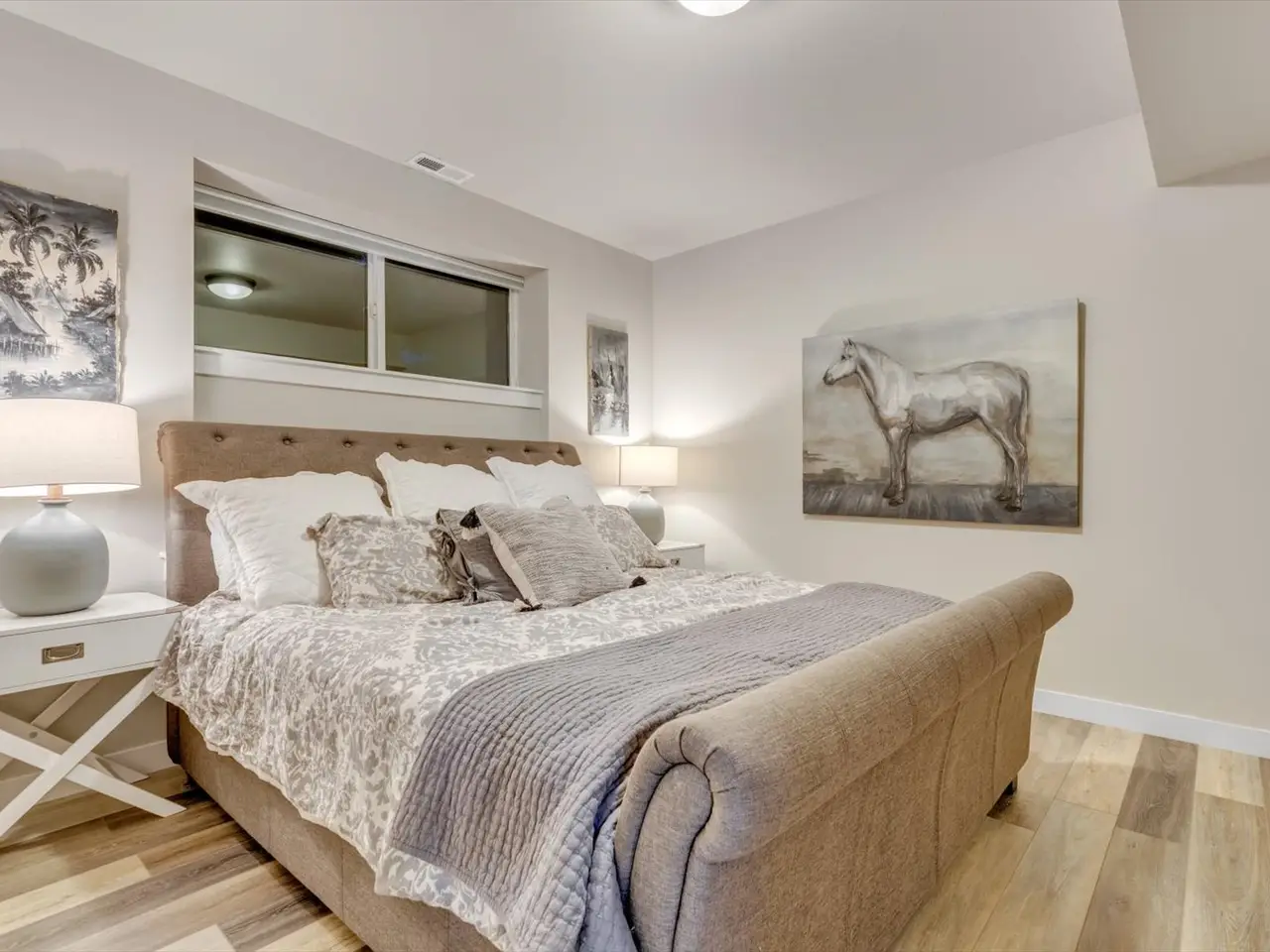 Welcome to Frederick, where stunning mountain views and a full ADU make this home truly one of a kind! Perfect for multigenerational living or extra income, this residence offers six bedrooms plus a thoughtfully designed accessory dwelling unit for unmatched flexibility and value. The private ADU includes its own bedroom, bathroom, kitchen, great room, and laundry machines, ideal for extended family, guests, or potential rental income. Inside, style and attention to detail shine throughout. The gourmet kitchen is a chef's dream with high-end appliances, a prep sink, custom cabinetry, and a spacious island that opens seamlessly into the great room-perfect for entertaining or cozy evenings by the fireplace. The main-floor owner's suite boasts a spa-like ensuite with soaking tub, expansive walk-in shower, and designer finishes. Two additional bedrooms, a full bath, powder room, and a large laundry room with sink and built-ins complete the main level. Downstairs, a striking custom metal handrail leads to a large rec room with a wet bar and a second owner's retreat! This level also features ample storage, a second laundry room, two more bedrooms or flex areas, and another full bath. Outside, enjoy a private hot tub area, fire pit, and plenty of space to play. Located near downtown Frederick with easy access to I-25, shopping, dining, and DIA, this exceptional property blends convenience, luxury, and breathtaking views with the rare versatility of a fully equipped ADU! Come check it out today.