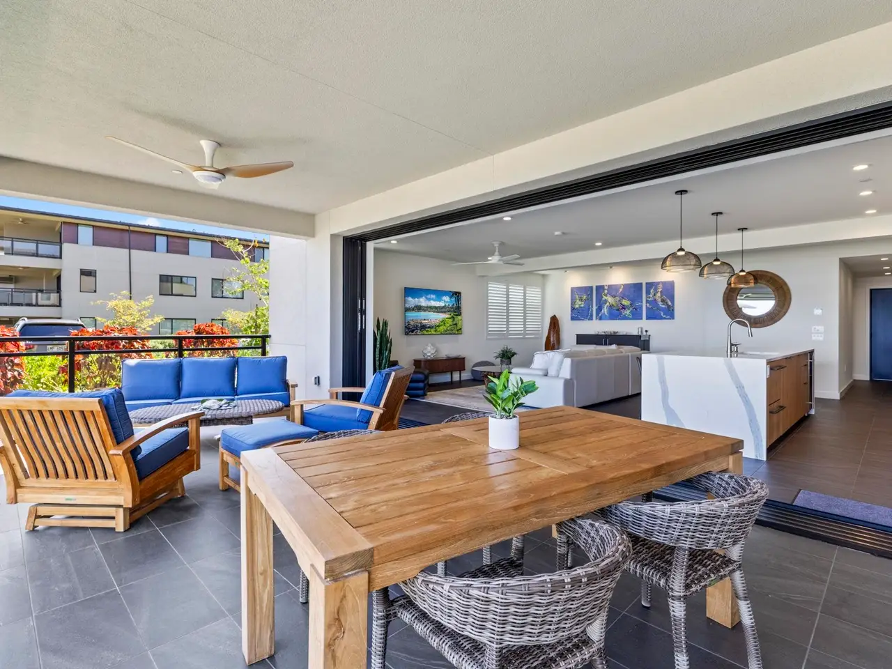 Luxury Living in Wailea’s Newest Development! Where Elegance Meets Island Living. Step into unparalleled luxury with Wailea’s world class beaches and amenities as your world. This is the exclusive 2 bedroom 2 bath residence you’ve been waiting for, offering breathtaking ocean and outer island views, sophisticated design with an open concept floor plan, and seamless indoor-outdoor living. The amazing gourmet kitchen features Bosch Benchmark appliances, Kohler fixtures, and then there are the wonderfully appointed, quality baths with Toto toilets throughout for refined comfort. Handsome designer tile flooring throughout stretches over the spacious quality of this inviting home, extending to your huge covered lanai, where you’ll find an outdoor prep area with built in Coyote gas grill plus exterior electric sunscreen. Once the gorgeous sliding glass doors disappear into the wall, you immediately notice how spacious the flow between your beautiful indoor living areas and the roomy lanai outside feels. The generous bedroom sizes ensure comfort and privacy, with plenty of storage within the home, plus an unbelievably huge extra storage downstairs for all of your lifestyle, recreation, and necessities to be tucked away, yet at your fingertips. Your reserved garage parking features electric car charging capabilities and this incredible home also has an additional reserved and assigned parking space on the ground level, with more spaces for guest parking. The resort style amenities of La’i Loa are sure to pamper, with a magnificent infinity edge pool and exceptionally large spa area, saunas, steam rooms, and ample lounge spaces with built in Coyote gas grills in the gathering areas, and the beauty of professional landscaping spotlighting the majesty of native Hawaiian vegetation. Walk to the resorts or The Shops at Wailea, enjoy the Wailea Beachwalk, and find out why people say there’s no better place to live than Wailea. Experience the essence of modern Hawaiian luxury. This is so much more than a home — it’s a lifestyle. Don’t hesitate. This is the Maui life you want!