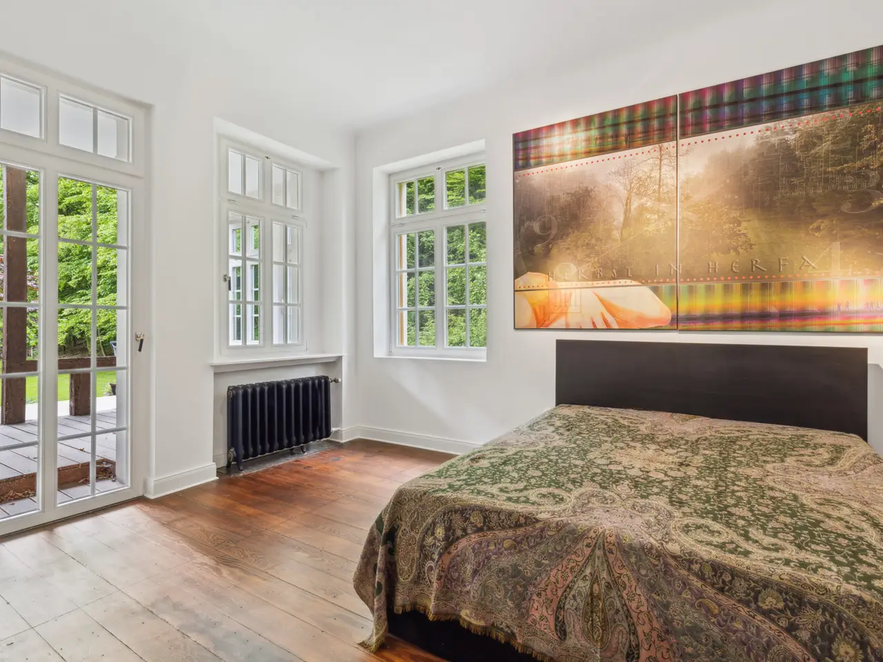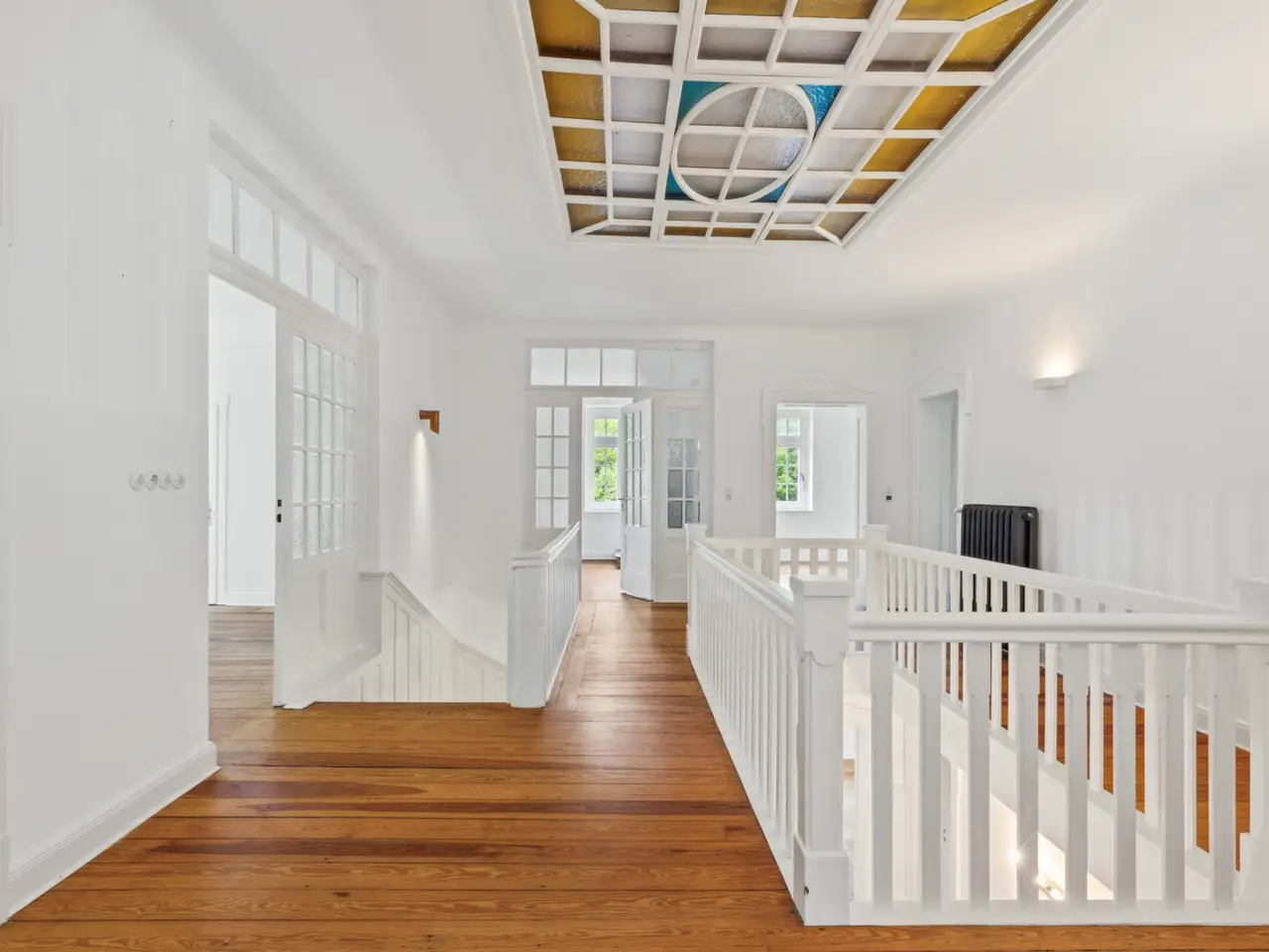 This exclusive listed villa from 1911 impresses with a generous living space of approx. 450 m² and a spacious plot of approx. 13,200 m². The villa has been completely renovated since 2009 and was last equipped with a solar system and four storage batteries in 2024. There are a total of 11 rooms, including 7 spacious bedrooms and 5 luxuriously appointed bathrooms. High-quality central heating provides pleasant warmth throughout the villa and the window replacement in 2023 ensures excellent energy efficiency. In the entrance area, a beautiful fireplace provides a "warm welcome" as you enter your dream home. High-quality materials have been used in all areas of the property, ensuring an exclusive finish of the highest standard. The main house impresses with its high ceilings, large window fronts and the warm character of the wooden floors consisting of parquet and floorboards. The generous proportions symbolize a well thought-out and open room concept. The villa is ideal for a large family or as a prestigious residence for discerning buyers. It could also be occupied by two parties, as two staircases connect the individual floors and the living spaces could therefore be divided. The central point of the house is the kitchen and dining area. Here you can organize communal cooking evenings on approx. 100 m² and enjoy fresh meals in the adjoining dining area. The open kitchen with kitchen island and stainless steel surfaces has direct access to the sheltered terrace. Further bedrooms and children's rooms are located on the upper floor. Adjoining bathrooms and dressing rooms provide the necessary comfort. A staircase connects the upper floor with the converted attic. A well-considered room division has created further guest rooms with a guest bathroom, as well as storage or work rooms and a large home cinema. Further storage and utility rooms can be found in the basement, spread over the entire floor area of the house. Thanks to the extensive energy modernization measures and the installation of the solar system, the villa is not only environmentally friendly, but also economically efficient in terms of maintenance costs. The park-like plot impresses with its very well-kept garden area and a wooded section. In addition to the main villa, the property offers a coach house, which is most recently used as a double garage. A greenhouse with adjoining vegetable garden makes every gardener's heart beat faster. Naturally, the water supply has also been considered here. Not only the garden, but also the possibility of keeping chickens are a further nature-oriented plus point of this unique property and ensure a remarkable quality of life. Interested parties who value a luxurious property that combines history with modern living comfort are cordially invited to get to know the advantages of this villa during a personal viewing. The combination of historical charm and state-of-the-art facilities makes this property a dream home for discerning buyers. Arrange a viewing appointment and be impressed by the many details and the generous room layout.