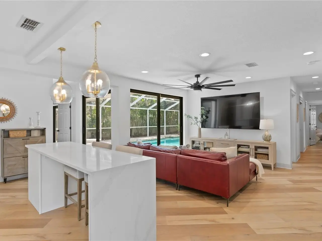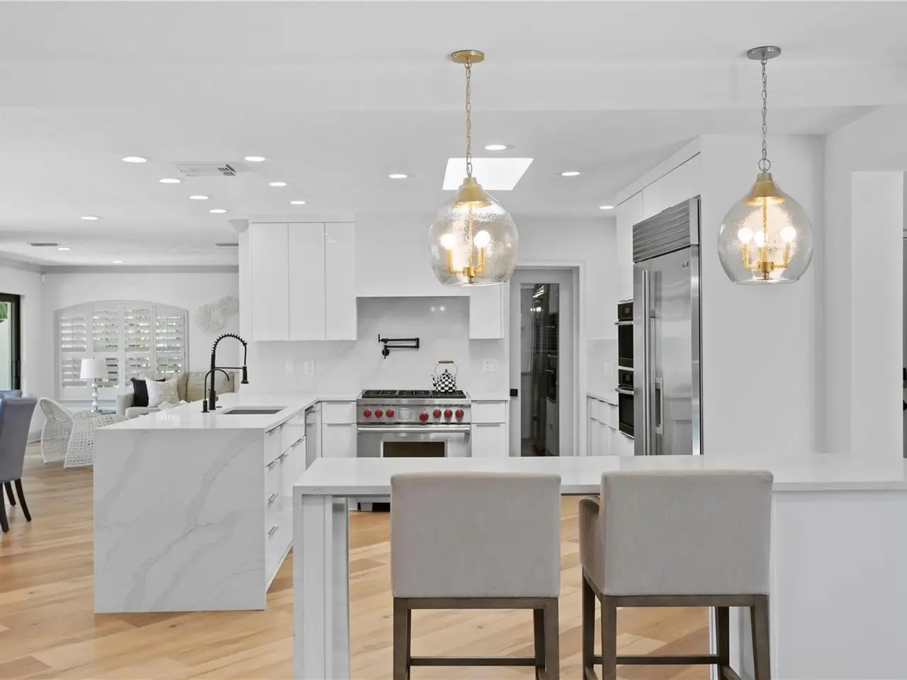 Under contract-accepting backup offers. Welcome to your dream oasis in the coveted BEACH PARK neighborhood of South Tampa! This prime spot puts you just minutes from Tampa International Airport and the vibrant downtown scene, featuring Amalie Arena, the Straz Center, and the Riverwalk. For sports enthusiasts, Raymond James Stadium, home of the Tampa Bay Buccaneers, is also nearby. Plus, the beautiful shores of Clearwater Beach are just a short drive away. This beautifully remodeled SINGLE-STORY pool residence features 5 bedrooms and 4 luxurious bathrooms. Constructed with durable block and elevated at 11 feet, it has experienced NO STORM DAMAGE and sits on an expansive QUARTER-ACRE LOT, ensuring unparalleled privacy. Step inside to elegant luxury flooring and an open living concept filled with natural light from expansive windows sliders and skylights. The inviting main living area boasts a gas fireplace, perfect for cozy gatherings. Culinary enthusiasts will love the chef’s kitchen, equipped with top-of-the-line SUBZERO, WOLF, and Miele appliances, including a six-burner gas range and a butler’s pantry with exquisite QUARTZ countertops. A versatile family room and an additional bedroom that can serve as an office offer added flexibility. The spacious principal suite features stunning courtyard views, vaulted ceilings, and a luxurious bathroom with a custom double vanity, soaking tub, and walk-in shower. The laundry room includes a dedicated dog bathing station for your furry friends.Step outside to the inviting POOL area, complete with a HEATER for year-round enjoyment, and an extensive outdoor space ideal for entertaining. Modern conveniences include SMART HOME FEATURES, a two-car garage EQUIPPED FOR ELECTRIC VEHICLES, and ample parking space. Experience the best of both worlds—serene suburban living and convenient access to the vibrant lifestyle Tampa has to offer!