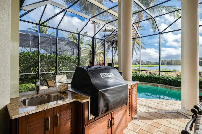 IMMEDIATE GOLF MEMBERSHIP AVAILABLE! Graceful Portico entrance to your front door welcomes you. Step into your beautifully detailed home with direct views to the golf course and long lake immediately ensuring you have reached your dream vision of SWFL living! This custom built McGarvey home is newly painted and features an open floor plan to maximize your entertaining possibilities, with the huge kitchen island anchoring the great room with a mini wet bar area for informal gatherings to the formal dining room, you will appreciate the beautiful oversized tiled flooring to the tray ceilings. You will enjoy culinary creations in the spacious kitchen, where the lovely basketweave backsplash sets off the granite countertops, GE Monogram appliances and wonderful under counter lighting. With sweeping views through the zero corner sliders to the screened lanai. Plenty of covered seating area and flanked by a fireplace, your outdoor living is spectacular. The outdoor kitchen and sparkling salt water pool, with new 2025 pool heater and integrated spa enhance your lifestyle. You will love beginning and completing your days in the luscious primary suite featuring 2 walk-in closets and the lovely primary bath offers a generous soaking tub, separate shower and double vanities/sinks and new 2025 AC unit. 2 guest bedrooms, en suite, are located in a split bedroom design to maximize privacy for all and the den is the ideal flex space, great as an office or fill with your work out equipment or yoga mat! This home includes a whole house 22KWH Kohler generator, impact resistant doors and windows, and electric hurricane screens. Gracious La Caille offers pool, lawn, pest maintenance and even includes exterior house painting! All located in amenity rich Quail West where you will find fantastic golf membership opportunities, tennis, pickleball, play area, community gathering at the gorgeous clubhouse, restaurant, bar, full state of the art fitness, relaxing full-service spa and so much more. Excellent location, easy access to I-75, fun on 5th, award winning sandy gulf beaches, ARTS, shopping and all that SWFL has to offer.