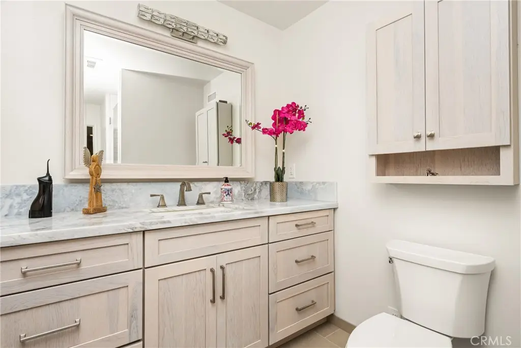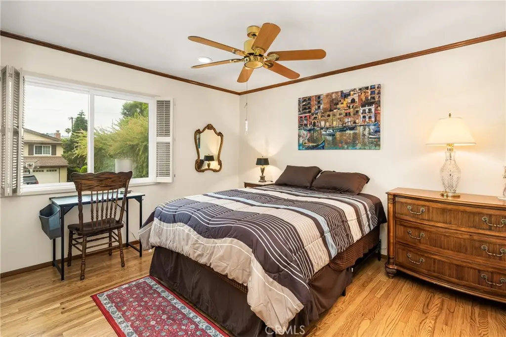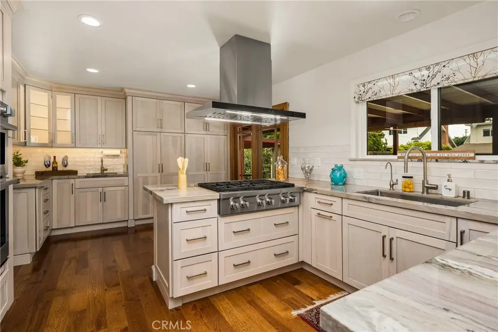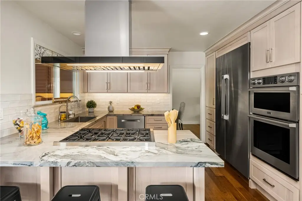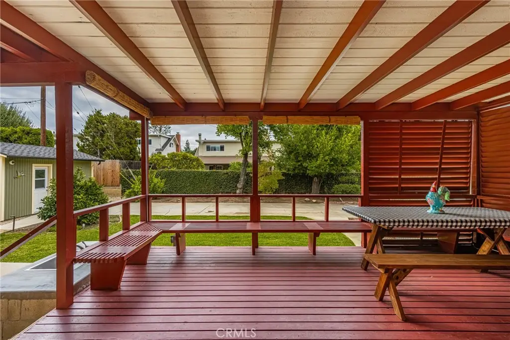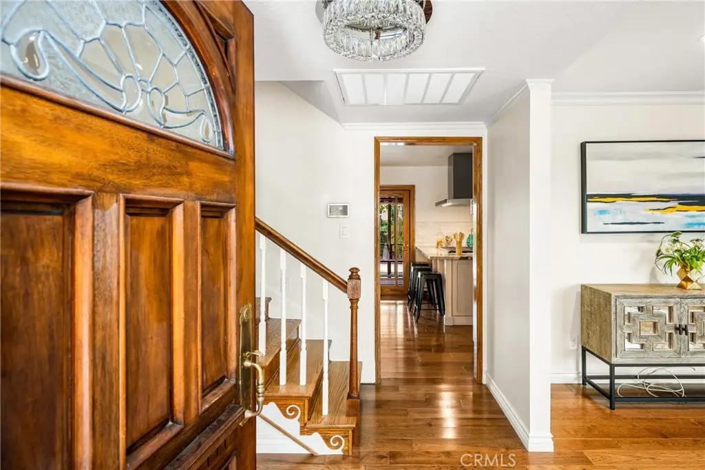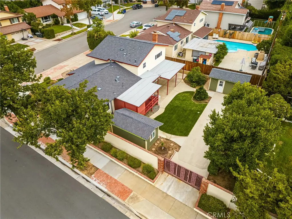 Welcome to this beautifully upgraded 4-bedroom, 3-bathroom home offering 2,121 sq ft of thoughtfully designed living space. With a downstairs bedroom and full bath, this layout is perfect for guests or multigenerational living. At the heart of the home is the Designer Chef's Kitchen, featuring premium appliances: Sub-Zero Dacor refrigerator, Dacor double oven with warming drawer, Wolf 6-burner cooktop, Bosch dishwasher, and Dacor convection microwave. Enjoy the gorgeous Quartzite countertops, vegetable prep sink, and custom pull-out shelving make this a dream kitchen for any culinary enthusiast. All bathrooms have been tastefully updated with elegant Kraft Maid birch wood cabinetry, adding warmth and sophistication throughout the home. The home boasts 3/4-inch Hickory wood floors, recessed lighting and ceiling fans perfect for those warm summer days. Outside, entertain in style under the custom - built covered patio, perfect for alfresco dining. The expansive backyard is a private oasis featuring mature Hass avocado, orange, lime, and kumquat trees, plus a convenient slab sink for barbequing. On opposite sides of the yard, you'll find two custom built 8x16 sheds complete with insulation, drywall, windows, and 3-amp wiring offers exceptional additional space. Additional highlights include RV parking with remote controlled gate access, Noritz tankless water heater, reverse Osmosis water system, a Vertex security system, with multiple cameras for added coverage, newer ductwork, and a 3-year-old composition shingle roof with 50-year warranty. A rare find that blends luxury finishes, thoughtful upgrades, and versatile outdoor space - this home is truly the total package!