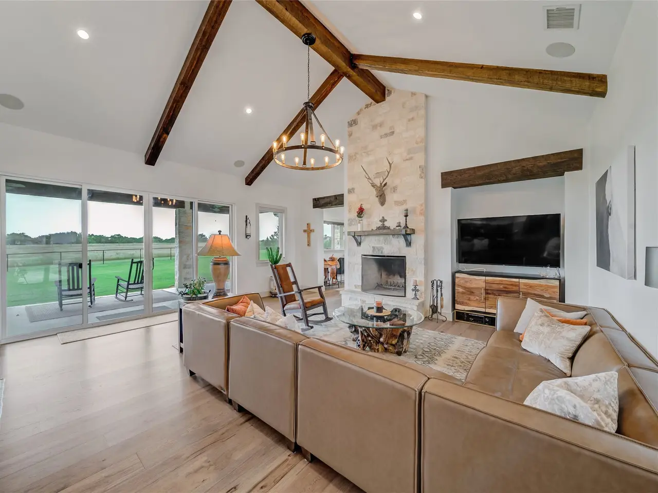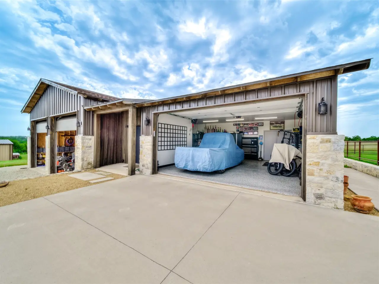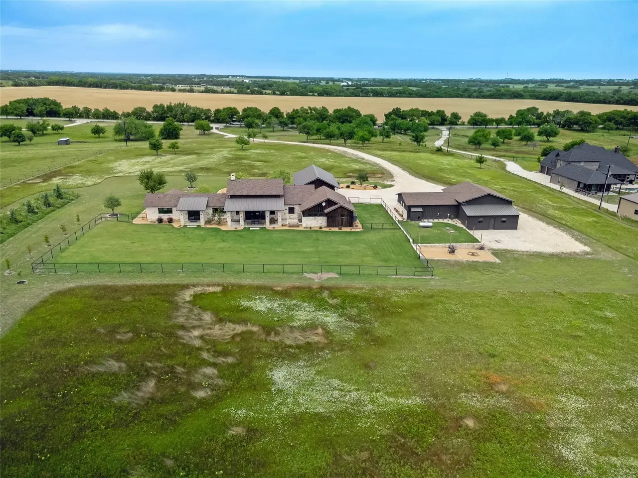 HILLTOP LUXURY WITH PANORAMIC COUNTRYSIDE VIEWS - Perched high above the road on 10 private fenced ag-exempt acres, minutes from Lake Ray Roberts. This gated custom 2,730 sq ft home was thoughtfully designed in 2020 by the owner-builder to capture sweeping panoramic views of the rolling countryside. Set back on a gentle hill, the property offers both seclusion and serenity in a setting reminiscent of the Texas Hill Country's natural beauty. Inside, the home features 3 spacious bedrooms, 2.5 baths, a dedicated study and a three-car oversized garage. The open-concept layout centers around a chef's dream kitchen complete with a large granite island, 5-burner range, dual ovens (gas and electric), a wine fridge, and a separate beverage fridge. With a blend of modern and hill-country style design, every detail of the home reflects style and functionality. Native, drought-tolerant landscaping surrounds the property, while outdoor living spaces, like the fire pit, invite you to relax and take in the sunsets. For the craftsman or hobbyist, the estate includes: A large shop with an epoxied floor - perfect for auto projects, woodworking, or your next creative pursuit. Additional space with 12 overhead doors for equipment and tractor storage. Space for an RV up to 35 feet. Built with energy efficiency in mind, the home features high-performance appliances, 6-inch walls, engineered hardwood floors, spray foam insulation and other energy-saving systems to keep utility costs low. Don't miss this rare opportunity to own a truly special hilltop retreat that blends luxury, practicality and endless views.