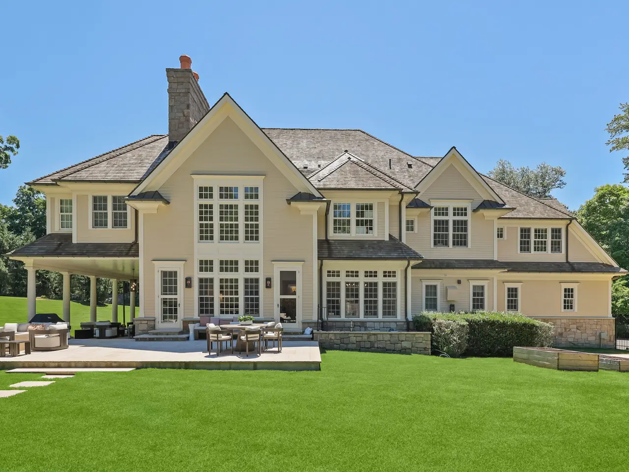 Bathed in natural light, this exquisitely designed stone and clapboard home embodies today's look & lifestyle. The stunning residence set on 2 lovely acres in a quiet neighborhood blends timeless architecture with modern elegance. Soaring ceilings and an airy layout connect the double-height foyer, elegant formal rooms and a chef's eat-in kitchen adjoining the vaulted family room. The serene primary suite offers a sitting room & spa-like bath, while six additional en-suite bedrooms w high ceil, a media room, and a three-car garage w room for lifts provide ample space. Outdoors a pool, spa, & covered terraces w fireplace & gas firepit invite effortless indoor-outdoor living. Every detail reflects thoughtful design, quality craftsmanship & a seamless connection to the surrounding landscape.