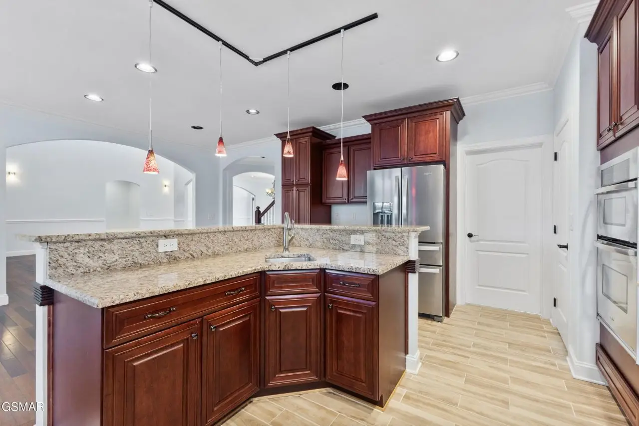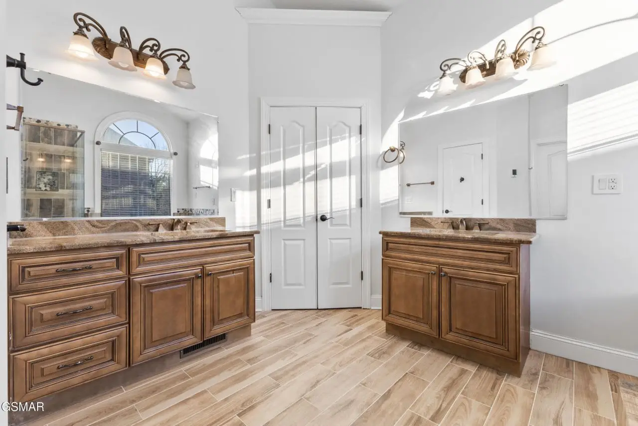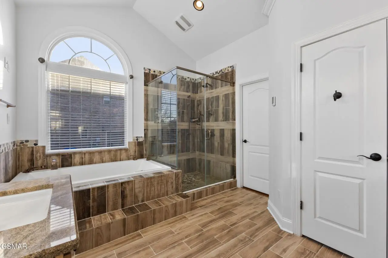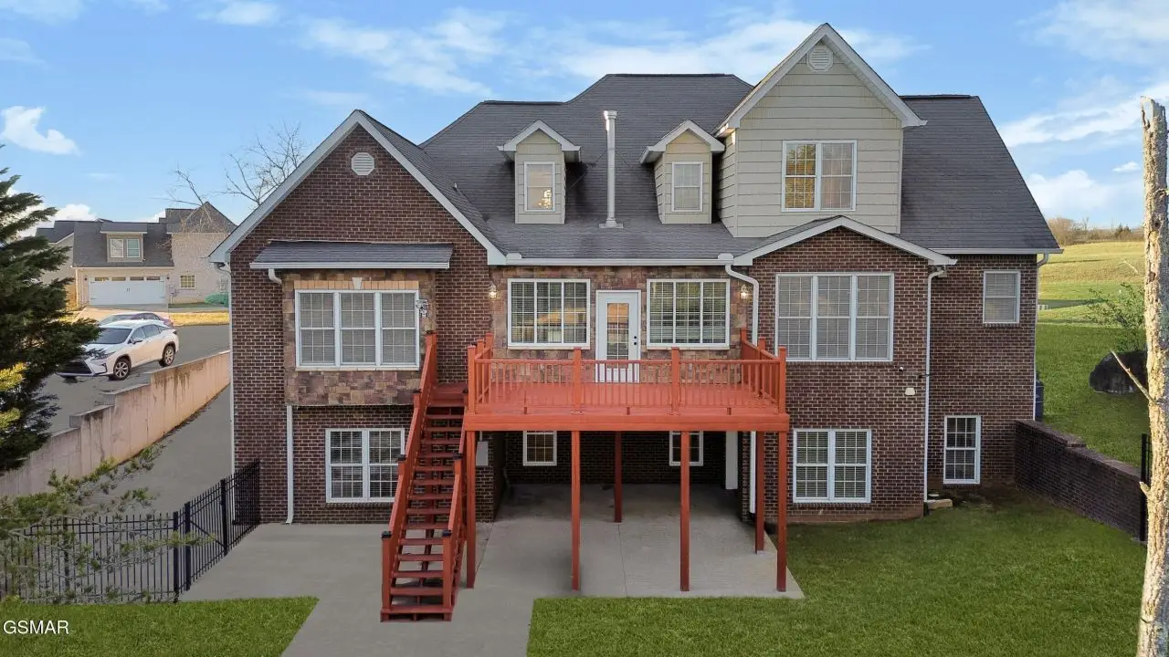 Welcome to this stunning 5-bedroom, 5-bathroom home located in the highly sought-after Cedar Ridge Subdivision. Situated just 45 minutes from downtown Knoxville, this property combines the charm of a peaceful neighborhood with the convenience of nearby amenities. Enjoy the beautiful disc golf and dog park located right across the street and the proximity to Merchants Greene, Morristown's newest hub for commercial and medical services, just five minutes away. This home is built to last, featuring thick poured concrete walls, craftsman-style trims, and exceptional attention to detail. The interior boasts soaring ceilings, including a dramatic 20'+ foyer and main room, over 10' ceilings in the master suite, and high ceilings throughout. The thoughtfully designed master bathroom includes a porcelain-tiled shower with heated flooring for ultimate comfort. There is an additional master suite upstairs. All bedrooms feature newly installed hardwood flooring, adding elegance and durability. The walk-out basement is a showstopper, offering abundant natural light, a theater room, a covered patio, a full bar, and even a panic room for added security. Recent updates completed by the prior owners include luxury vinyl plank (LVP) flooring in the basement, fresh paint throughout, new porcelain tiles, modern appliances, and more. Additional upgrades include granite countertops throughout, stainless steel Whirlpool appliances, manifold cut-off Pex plumbing system, 2-year-old gas water heater, and HVAC system. This home is truly move-in ready, offering a rare combination of luxury, functionality, and modern updates. Don't miss your chance to own this exceptional property. Call today to schedule your private showing!