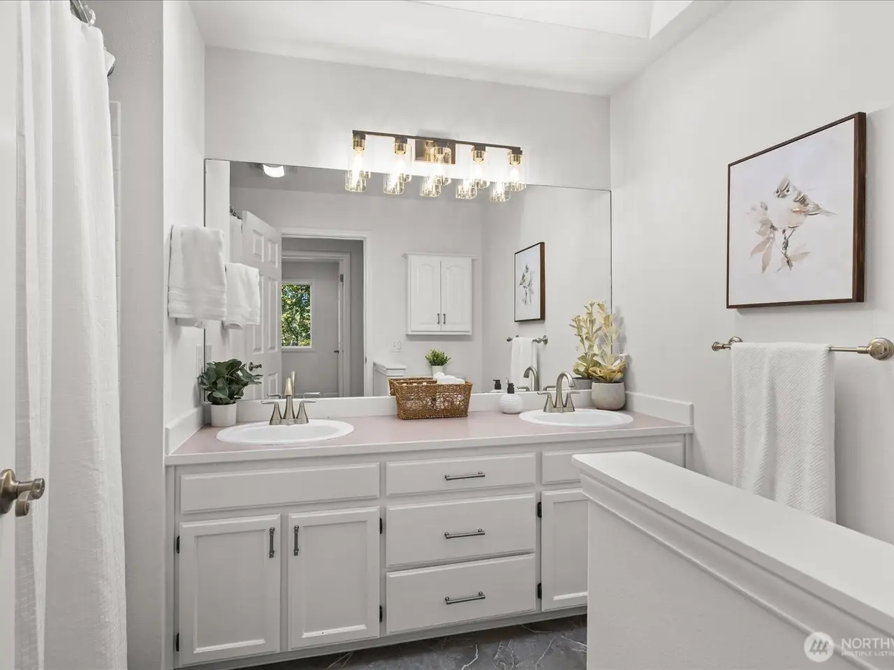 Two homes, one address, endless potential! Set on a spacious lot with mature landscaping, this Bothell property offers flexibility for multi-generational living, guests, or added income. The main home features a grand two-story entry, fresh interior paint including all trim & doors, updated fixtures, solid bamboo flooring & new Mohawk SmartStrand carpet, the good stuff! Bright formal spaces with vaulted ceilings & tall arched windows flow into a freshly updated kitchen overlooking the private backyard. The 1,600 sq ft two-story 2 bed/1.5 bath DADU has its own driveway w/ all living spaces on the first floor & wonderful bonus space upstairs. Mins to Mill Creek Town Center, parks & commuter routes completes this rare Bothell opportunity.