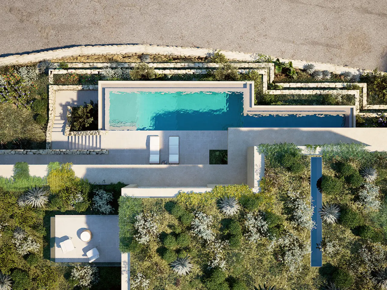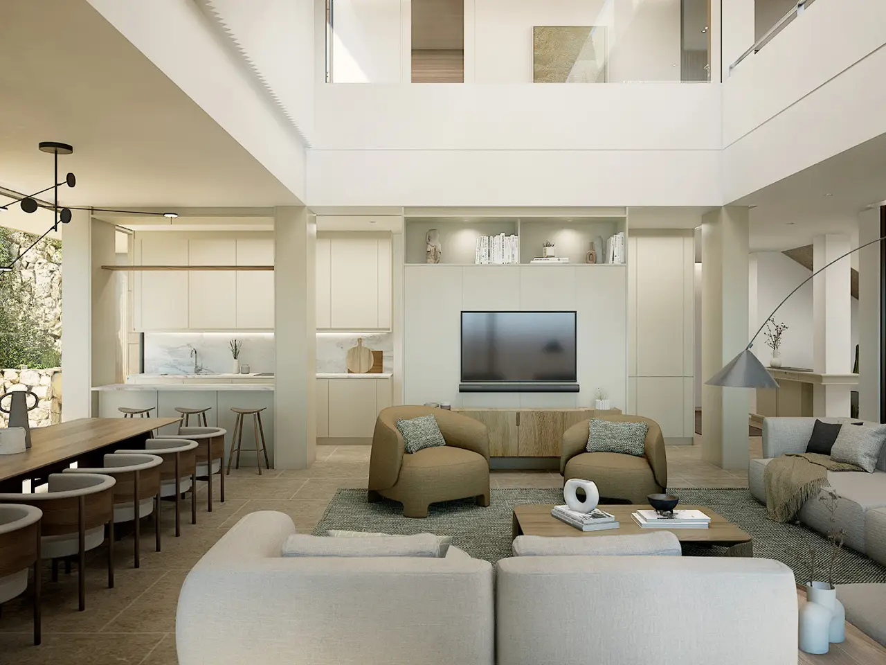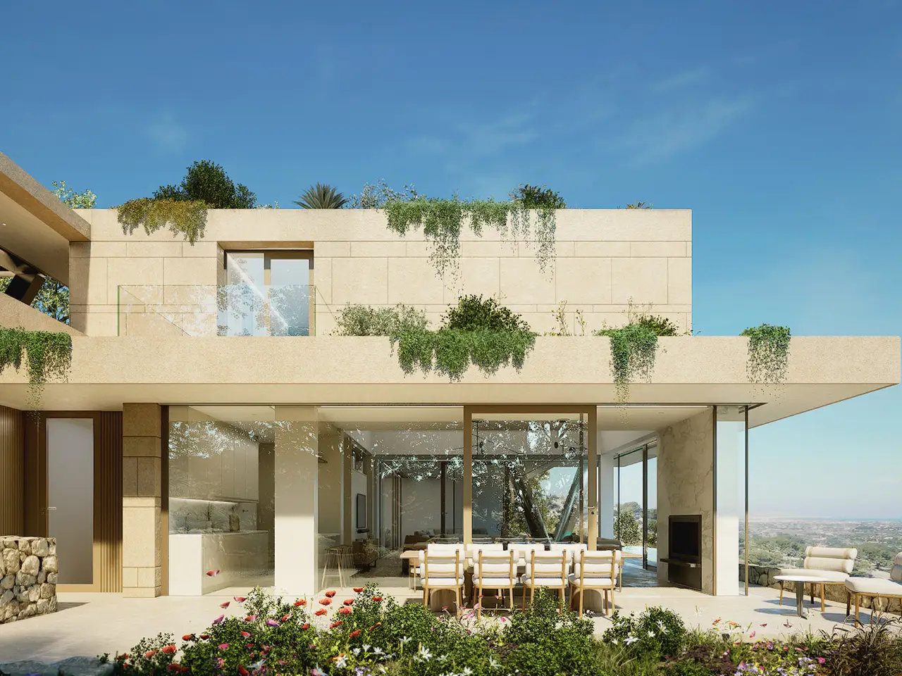 This exclusive future home was born from the idea and enthusiasm of a young and, at the same time, experienced team of Valencian architects. Their aim was to develop a special villa, both in its design, location, features and construction method, something different and new. The first thing was to choose and find its location, according to the project to be carried out, and a unique plot was selected, due to its orientation and location, in the prestigious La Sella Golf residential area, in the well-known town of Denia, near the Mediterranean Sea, in front of a well-known golf course, one of the best in the Valencian Community and in a privileged environment, with private security and a quiet and grateful neighborhood to live where they live. The plot, with a warm orientation in winter and cool in summer, will be treated in such a way as to achieve its greatest utility, always taking care of its virtues, its views and its natural surroundings. From this starting point, a house was designed whose construction method is unconventional and innovative at the same time, providing a security in terms of time and finishes that cannot be found in traditional construction. This design, meticulous in every detail, both aesthetic and functional, can even have some kind of adaptation to the lifestyle of its future inhabitant. We opted for a modern, yet warm villa, perfectly adapted and integrated into its surroundings and with interior dimensions of more than 300 square metres, perfect to be enjoyed as a first or second home for a large family that values comfort, tranquility, a private, relaxing and comfortable lifestyle. As could not be otherwise, thought was also given to how the outdoor area could also be enjoyed, creating a series of levels and private terraces in some rooms and communal terraces in others, crowned by a large infinity pool and from which you can enjoy the unique and exclusive views that are available in this location, a combination of the sea, the countryside and forest of Alicante and the golf course. Its orientation, luminosity, the wind received from the Mediterranean Sea and its open conception, make being in the house a pleasant experience at any time of the year. All this is the result of the work and enthusiasm of professionals who have put all their effort, wisdom and, above all, heart into a special project that will make life happier for those who are lucky enough to enjoy it.