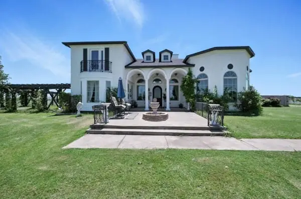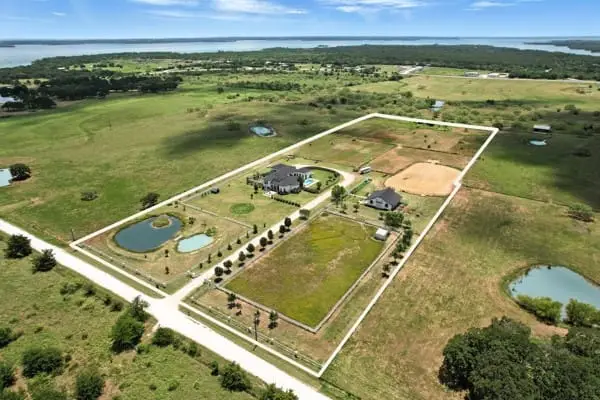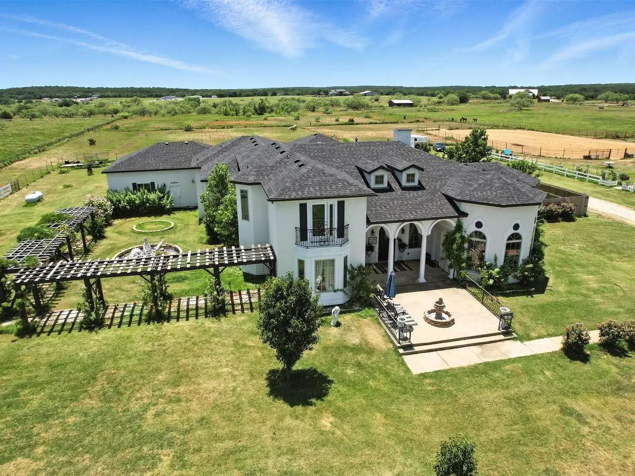 Stunning Mediterranean-style stucco home with 10 acres exudes timeless charm and modern comfort. 4 bedrooms possible 5th, 3.5 baths, 3,731 sq ft of thoughtfully designed living space. Home is perfect for those seeking luxury and tranquility. Open concept layout features elegant finishes, high ceilings, and abundant natural light. Spacious primary suite boasts a spa like bath, with separate walk in shower, his and hers vanity and a walk in closet to die for. 3 additional bedrooms provide comfort and spacious privacy. Large office room an perfect additional room for a 5th bedroom option, library room, formal dining or game room depending on your Preferences. Huge open gourmet kitchen with Island with all granite countertops through out and endless custom Cabinets for all your kitchen accessories and decor. This floor plan is the perfect inviting living spaces to make entertaining a delight. Experience paradise in horse country. Home is a Dan Sater Design. This gorgeous, architecturally significant home stands regally on 10 lovely acres. From the exquisite high-end interior details, to the expansive outdoor entertaining with out side Kitchen area with granite island with sink. This home makes an amazing lasting impression. Close to the lake and half an hour from major shopping, the owners enjoy both the country lifestyle and the conveniences of the city. Outdoors, a picturesque pergola adorned with grapevines sets the scene for alfresco dining. The sparkling swimming pool and spa with a nearby outdoor fireplace creates a resort-like retreat, complemented by a guest room with a full bathroom for visitors. Could be used as a Mother in law sweet. Equestrians and hobby farmers will appreciate the 5-stall 48 x60 barn with runs and the large open tack room to accommodate the display of your saddles, tack an live stock accessory needs. 200 x 100 outdoor arena, 6 Horse Ready pastures with cross fencing, offering exceptional facilities for livestock or recreation.