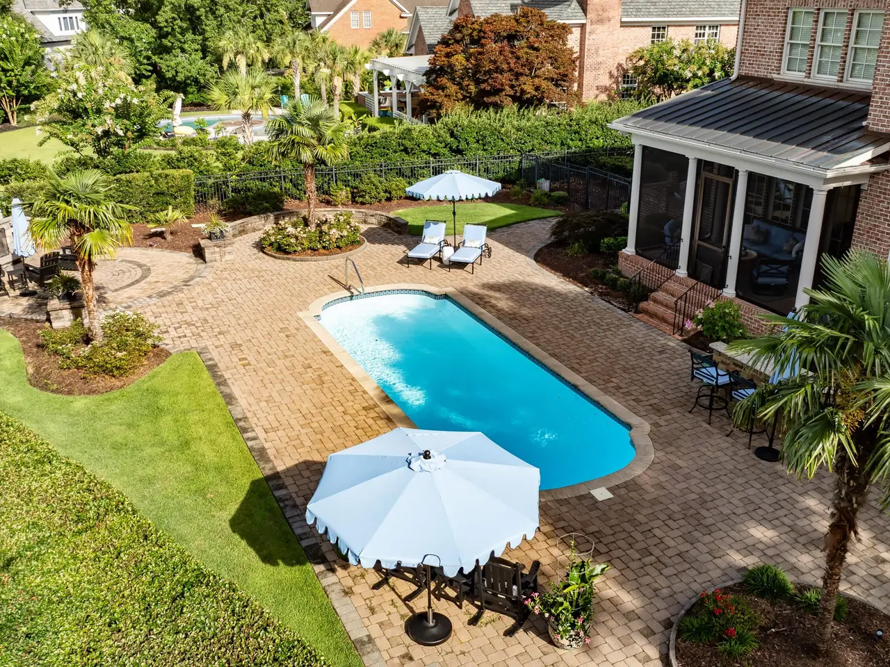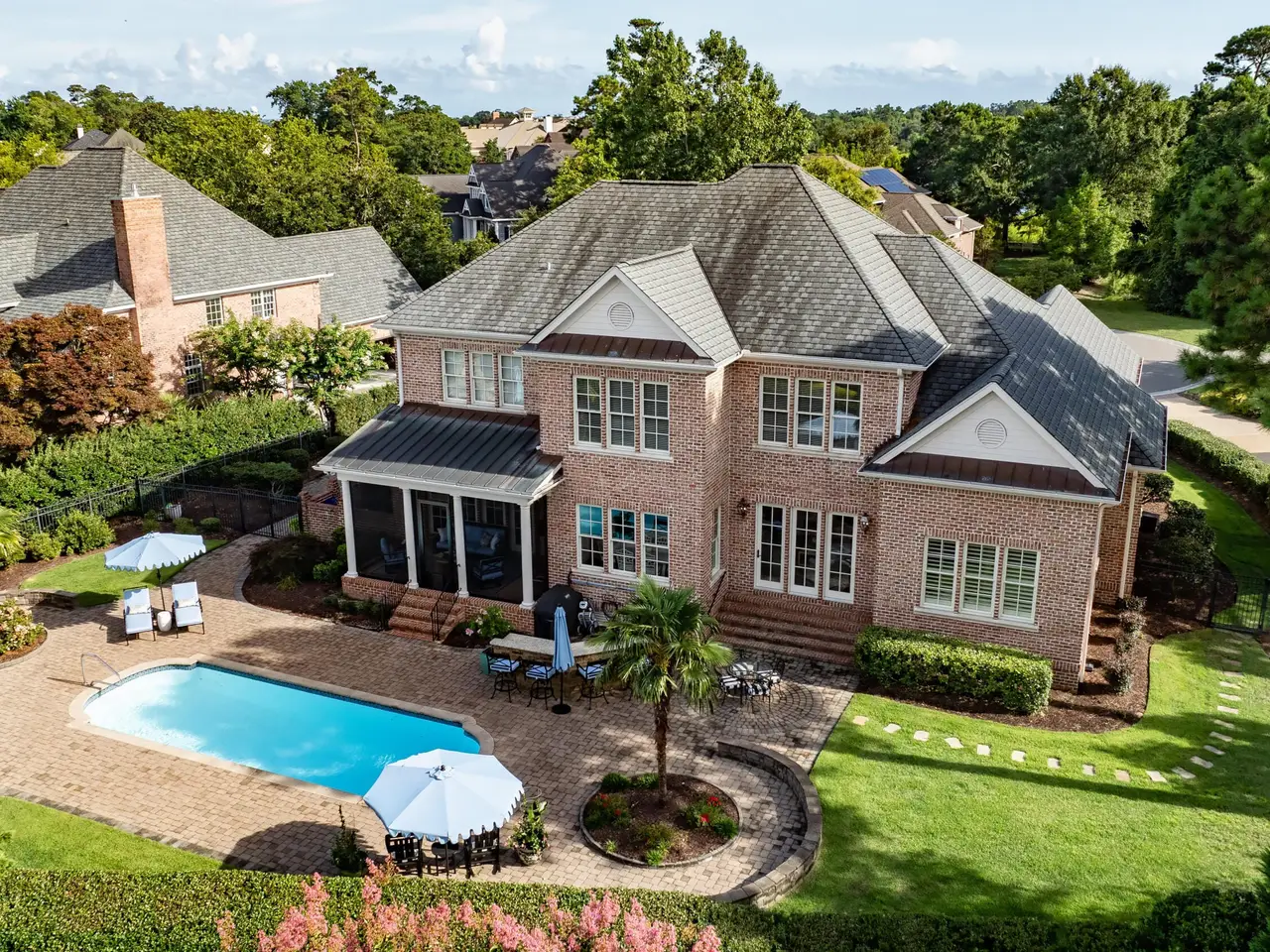 This custom built all brick Landfall home on a quiet cul-de-sac has just undergone a magnificent $500,000 complete remodel, including entirely new kitchen, new bathrooms, new upper and lower laundry rooms, and landscaping. Thoughtful design features are found throughout this home and are immediately appreciated at every turn. A covered front porch and graceful arched mahogany French doors create a memorable entrance to this comfortable home with a paneled study and formal dining room flanking a generous foyer with wrought iron railings. Hardwood floors, custom built-ins and detailed crown moldings are found throughout the first floor. The kitchen has been completely updated with all new cabinetry, Vikings stainless appliances, including a six burner gas cooktop, side-by-side refrigerator freezer, a huge quartz center Island for elegant entertaining all overlooking the family room with fireplace, a sunny breakfast nook, a screened porch and private backyard with pool and fire pit. The first floor master features hardwood flooring and a brand new bath with soaking tub and a frameless glass shower, and a large walk-in closet with custom built-ins. The second floor features front and rear stairs that provide access to four bedrooms, three bathrooms and an upstairs den. Additionally the second floor includes an upstairs laundry room and large floored walk-in attic. This home is literally move-in ready for the lucky owner who appreciates attention to detail. Enjoy this central Landfall location with easy access to the wooded conservation area walking trails and the mile long paved trail around scenic Landfall Lake.When only the best will do!