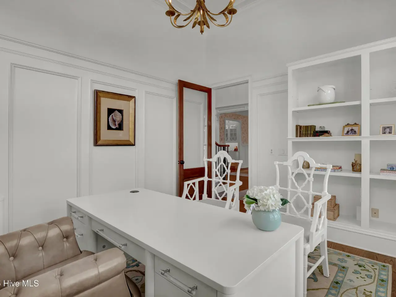• Hardwood floors, custom built-ins, detailed crown moldings throughout