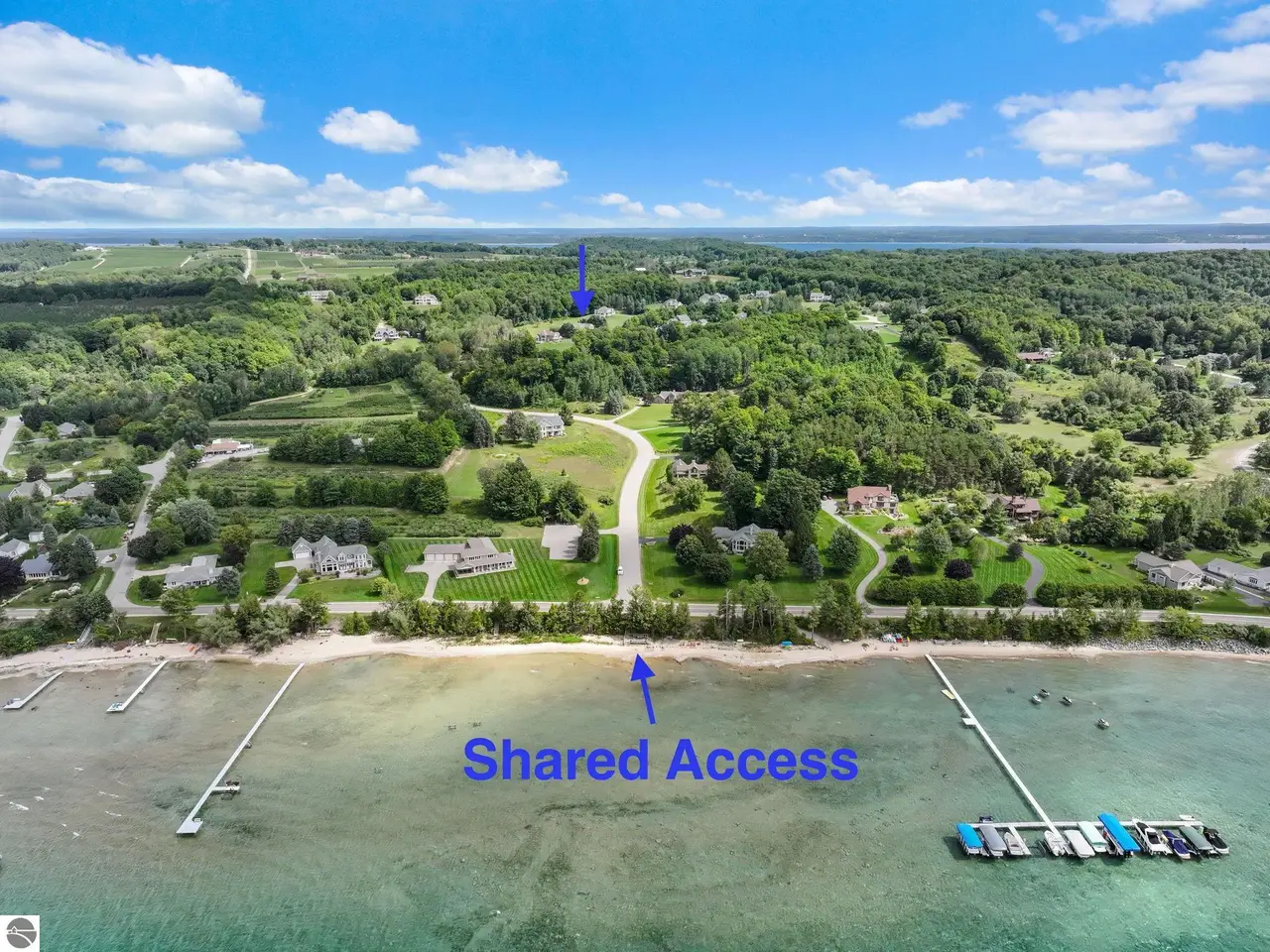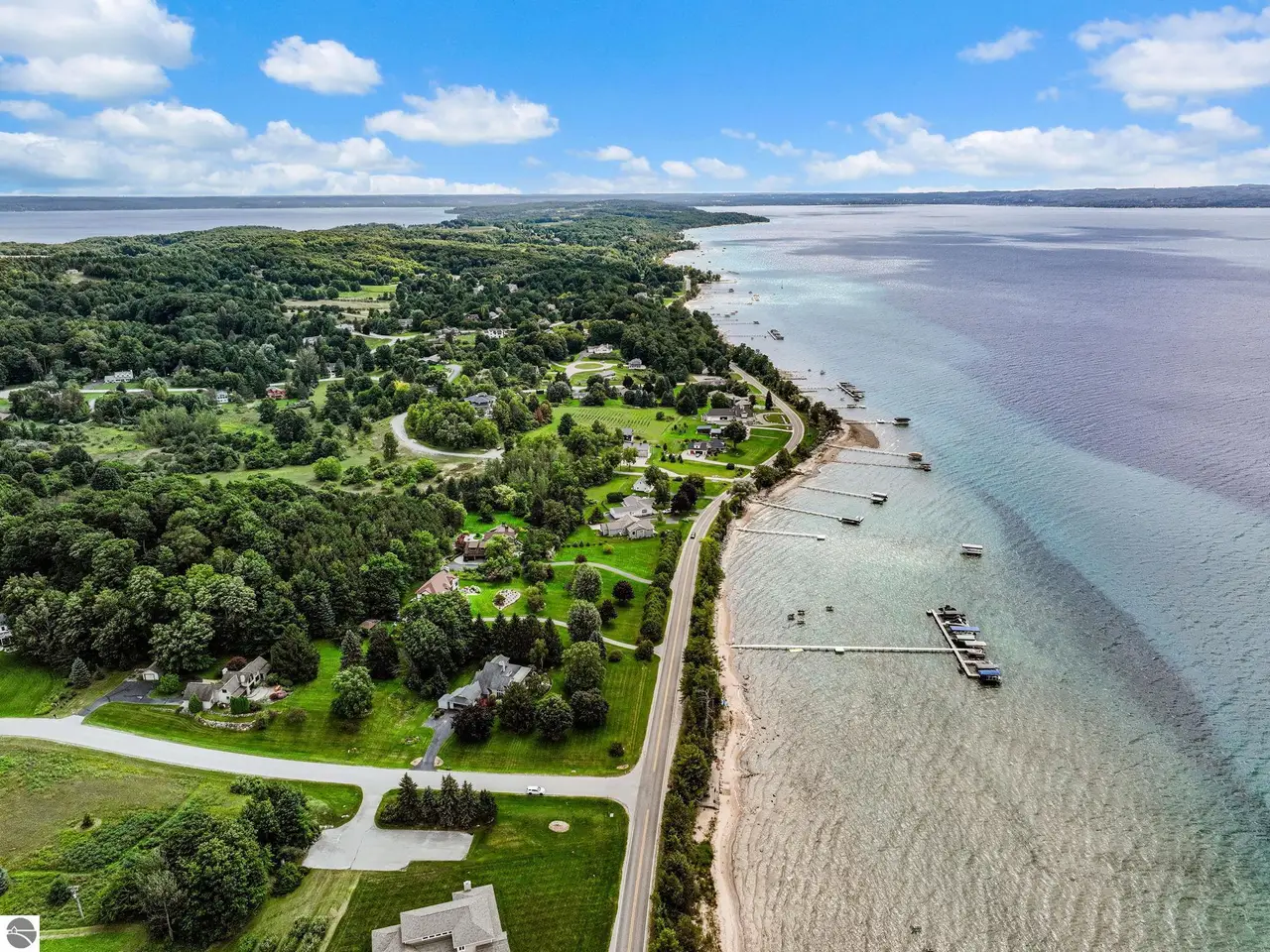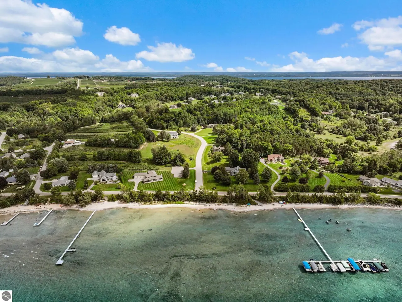 Welcome to life on Old Mission Peninsula! This builder's home sits on nearly 3 acres in the highly desirable Old Mission Estates subdivision, offering over 700 feet of shared, sandy West Bay frontage with docking privileges. The main floor flows effortlessly between everyday comfort and gracious entertaining, with oversized windows filling each space with natural light. The open kitchen overlooks a casual family room and dining nook that opens to a tiered composite deck shaded by a pergola and surrounded by manicured landscaping. For more formal gatherings, host dinner parties in the bright dining room or cocktails by the gas fireplace in the living room, complete with French doors leading to another expansive deck and rolling backyard views. The main-floor primary suite features a walk-in closet and spa-like bath with whirlpool tub and separate shower. An additional bedroom, den, laundry, and mudroom complete the easy-living main floor design. The lower level is designed for fun and flexibility with soaring ceilings, big windows, a second gas fireplace, full kitchen, craft/workshop space, and two private bedroom suites -- ideal for a mother-in-law setup, guest retreat, or growing family. This home comes loaded with extras, including a heated 4-car attached garage with drain, surround sound in most rooms, central vacuum system, and a Generac whole-home generator for peace of mind. Old Mission Estates also offers generous common areas, a welcoming neighborhood atmosphere, and access to the sparkling waters of West Bay. Bring your boat, your sand toys, and your love of Northern Michigan living -- this stunning home has it all. Come see it for yourself today!